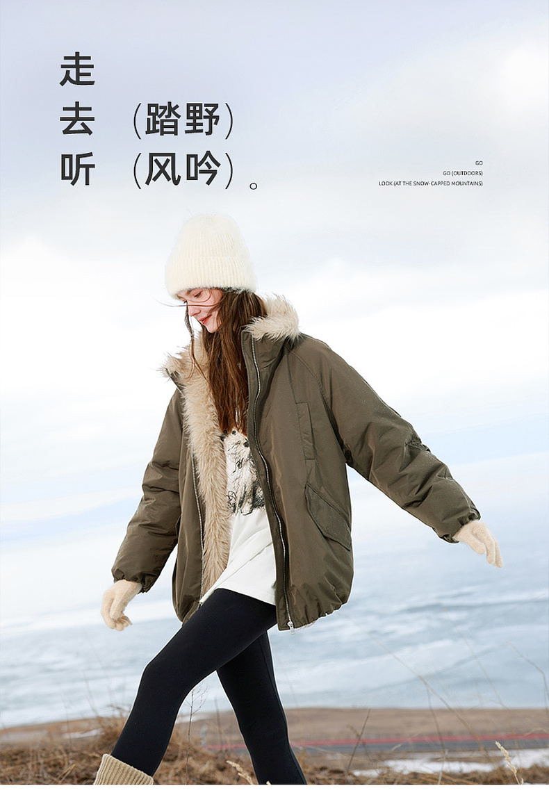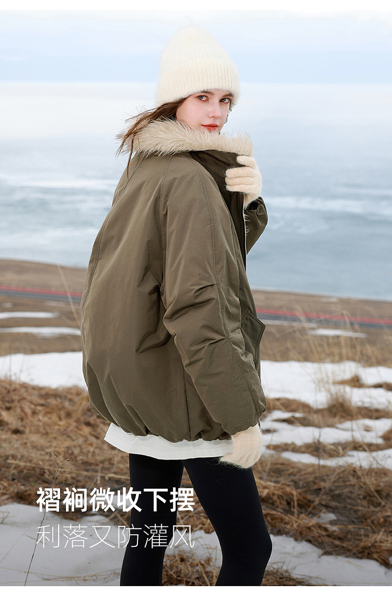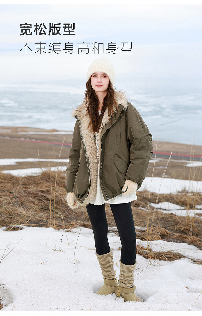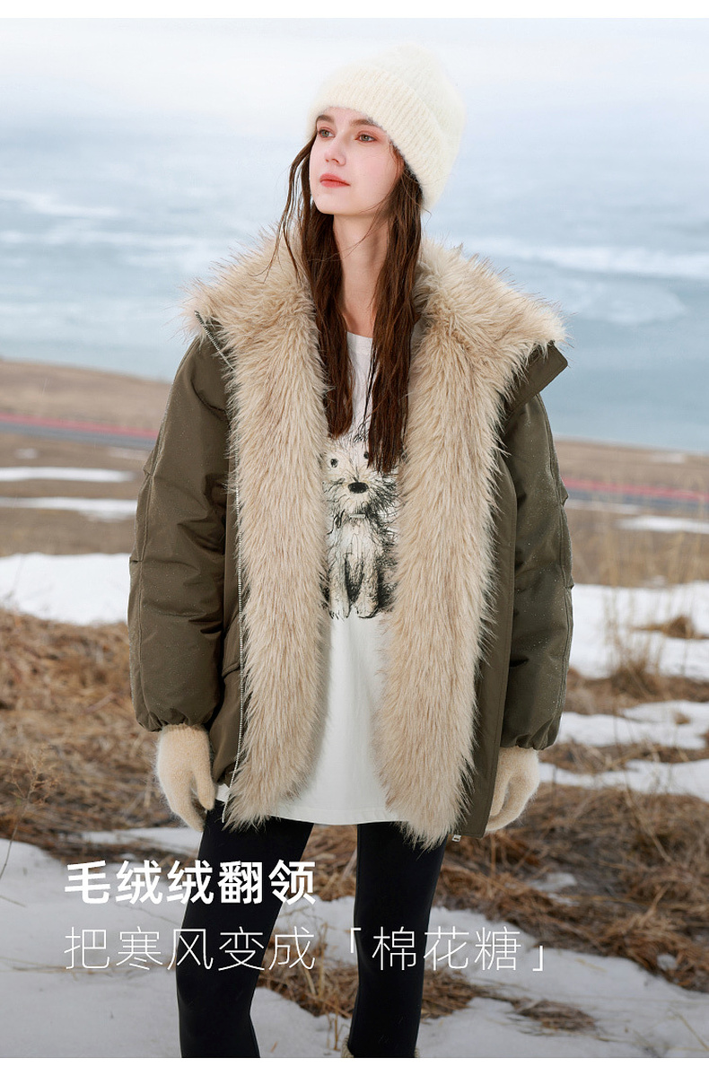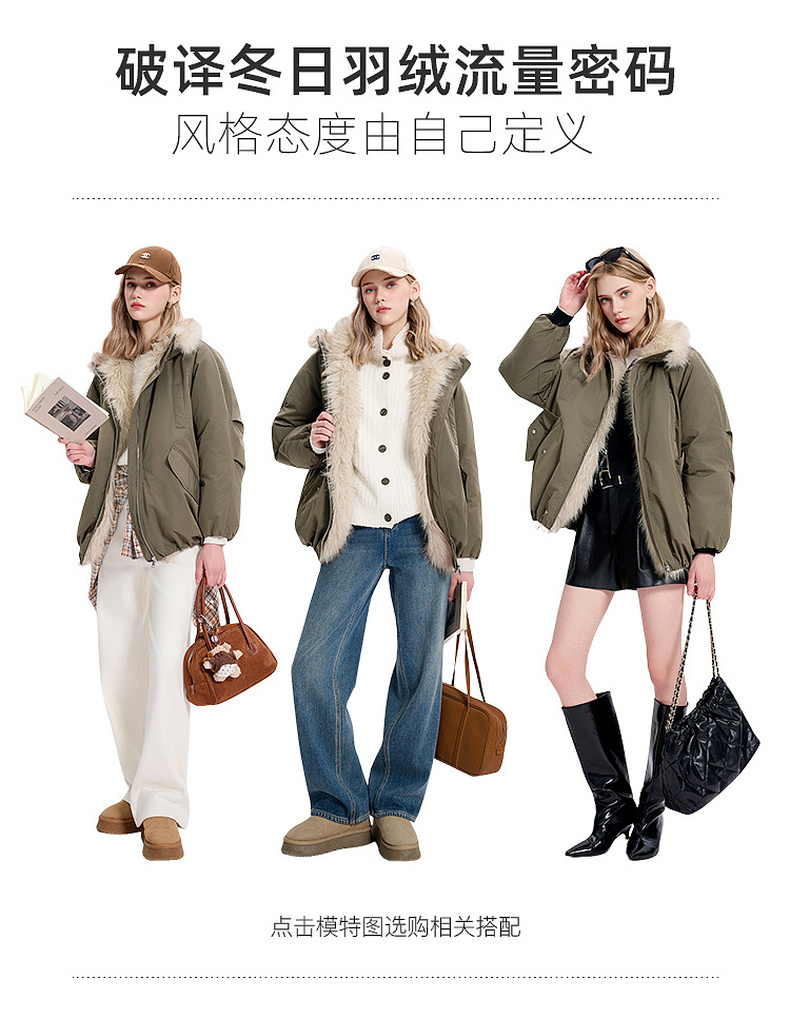 【90白鹅绒】三彩独醒2025冬季新款防水鹅绒服毛绒拼接羽绒服F