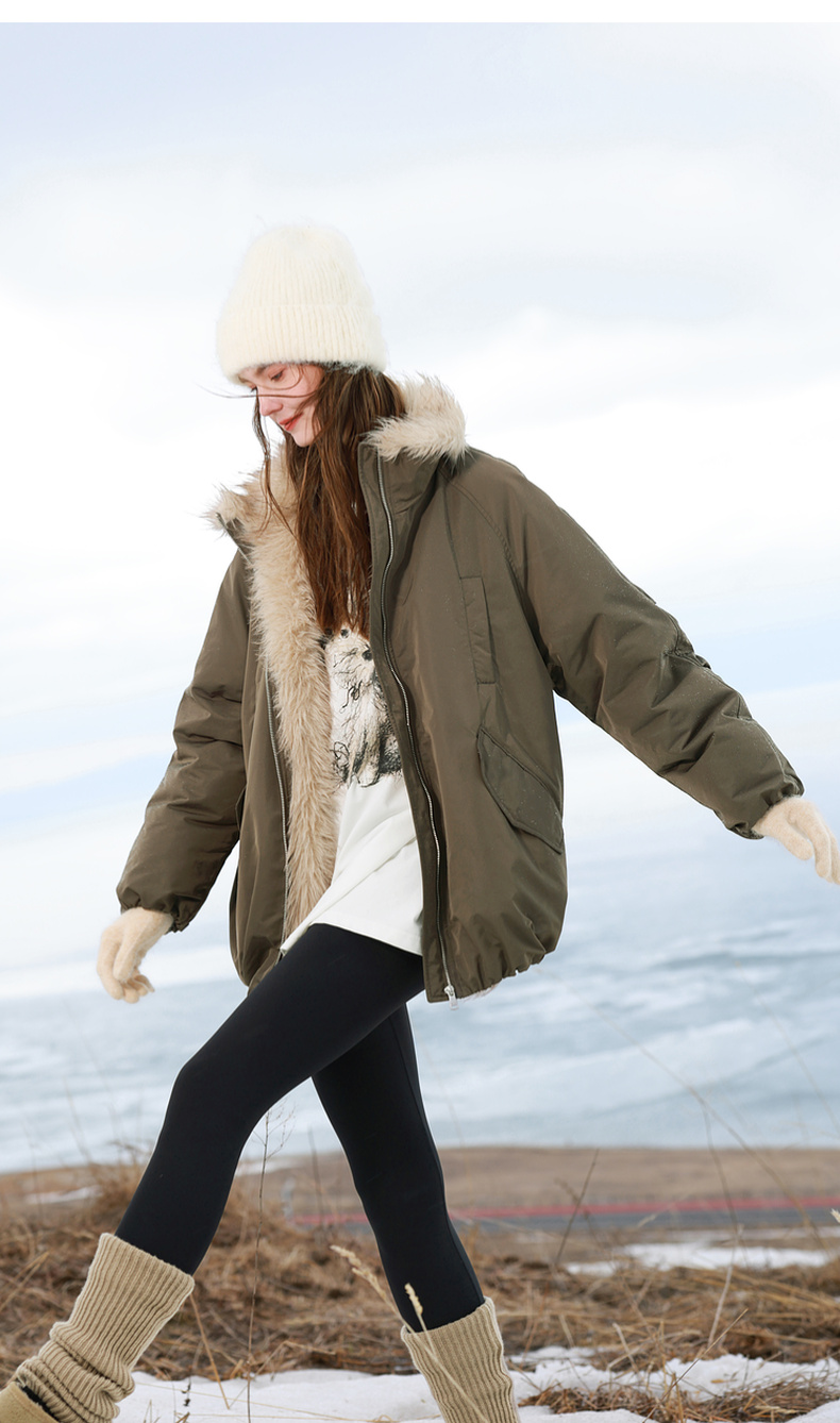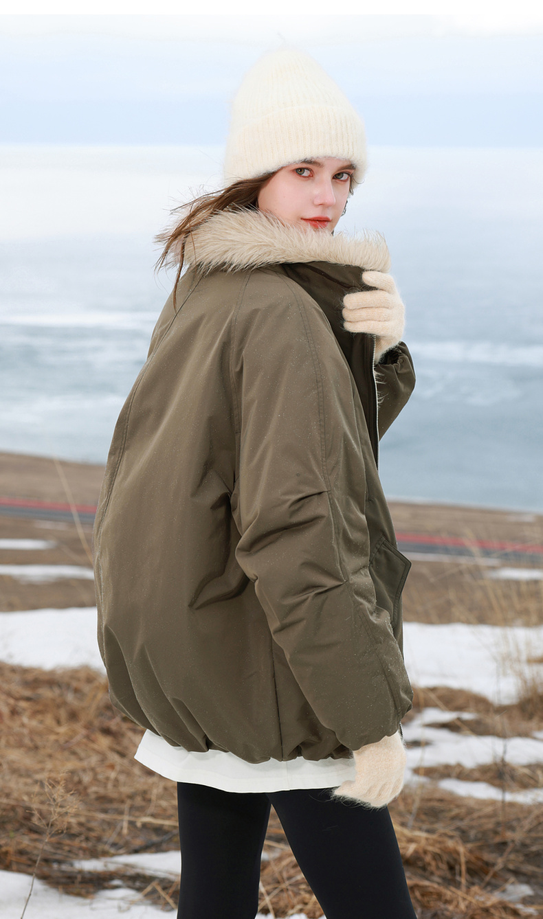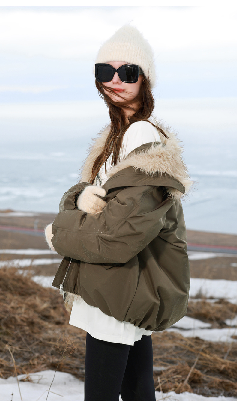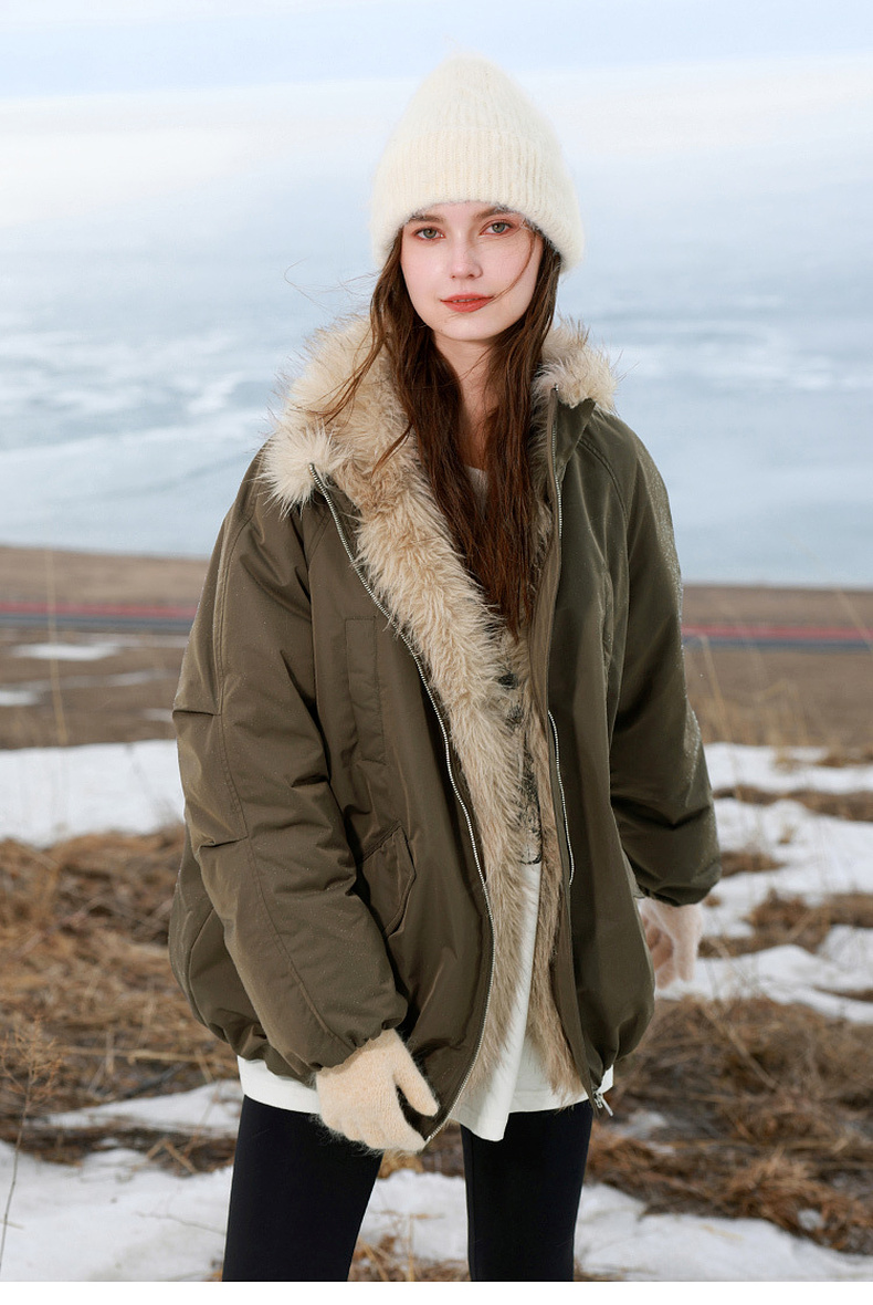 【90白鹅绒】三彩独醒2025冬季新款防水鹅绒服毛绒拼接羽绒服F