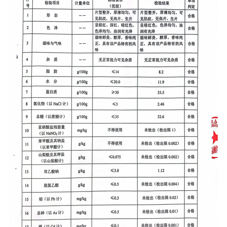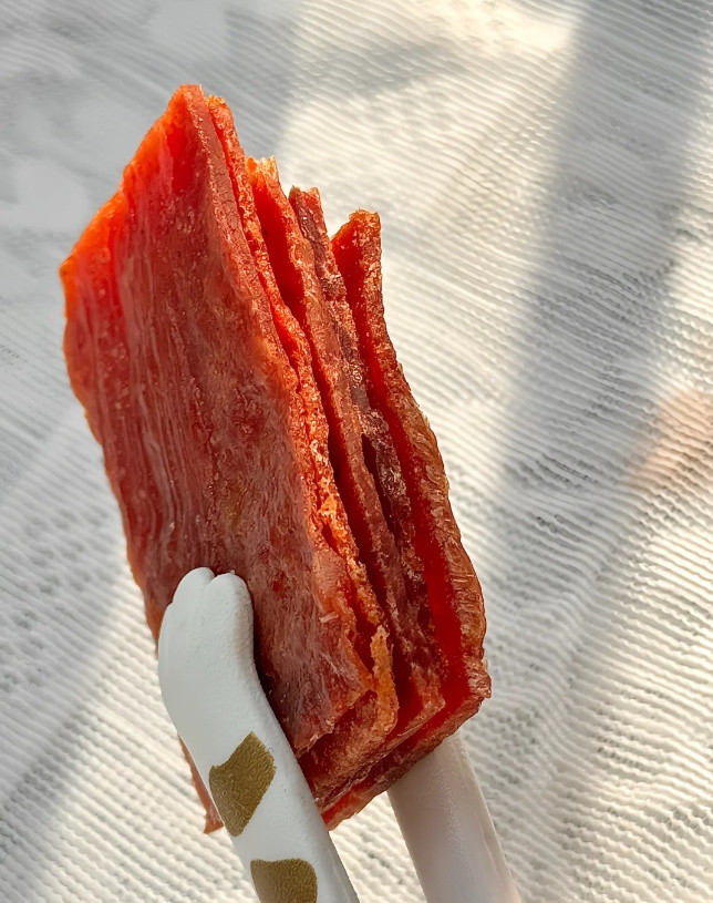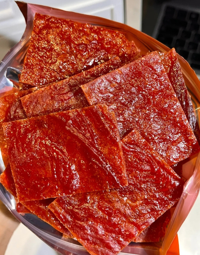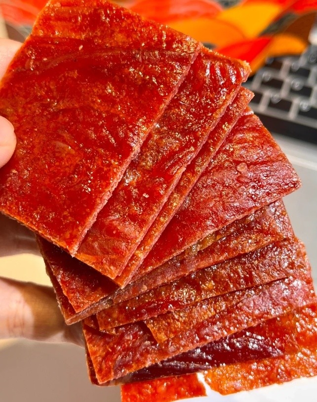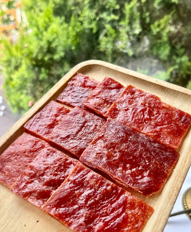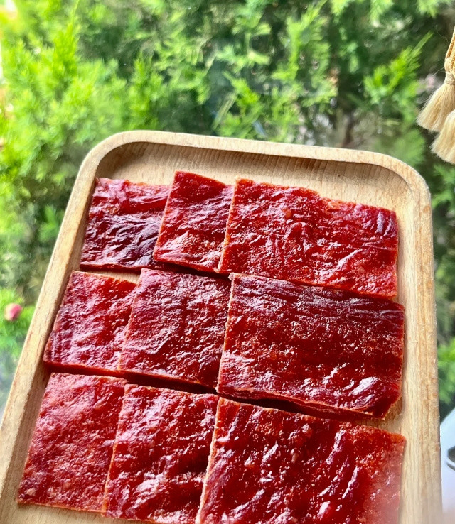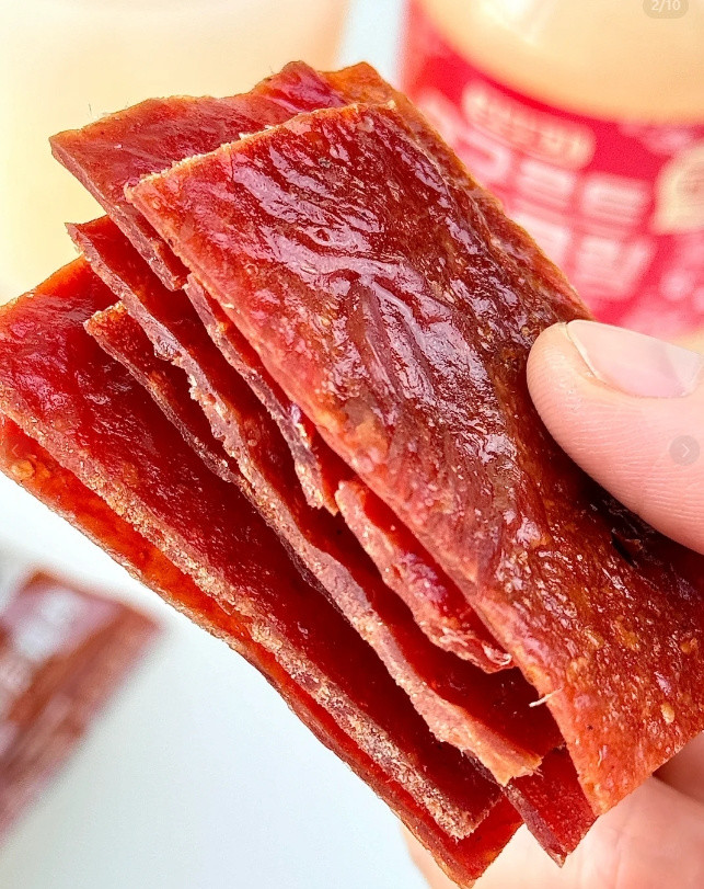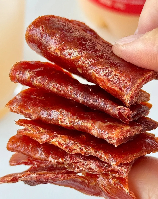 整片原切吃起来过瘾! 原汁原味的口感! 肉脯紧实纹理清晰! 咸鲜微甜好有嚼劲啊!! 吃起来一点不油腻!!