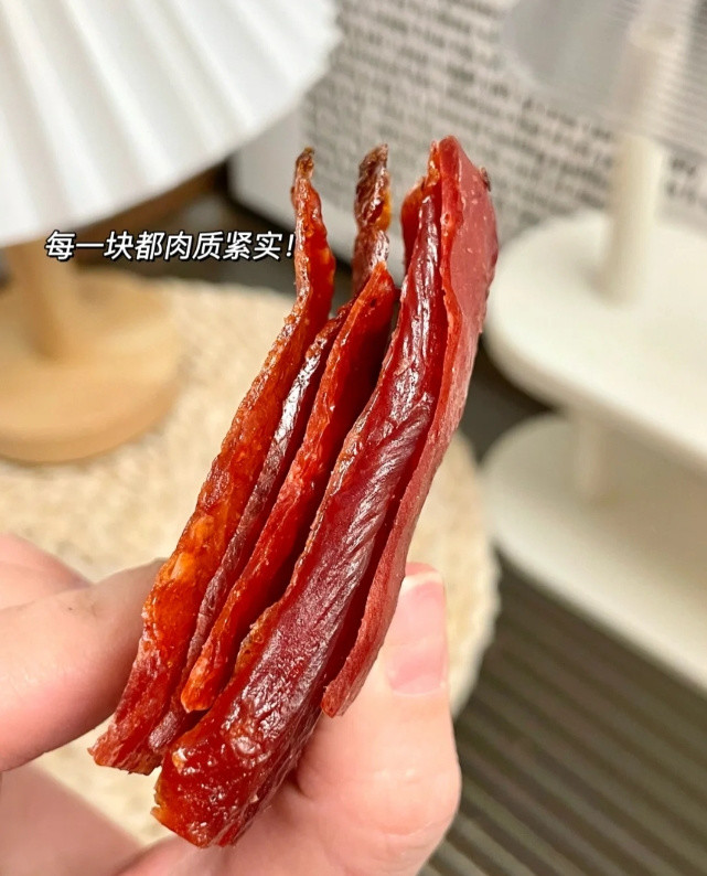 肉眼可见的猪肉纹理,香气很正又浓郁! 吃起来是整块猪肉的口感 并不是那种碎渣渣的感觉~ 看了配料表,整个一个哇塞!🙀 全纯肉的啊,一整个原切猪后腿精肉 怪不得这么好吃! 独立小包装,一包三片,够解馋又不怕胖