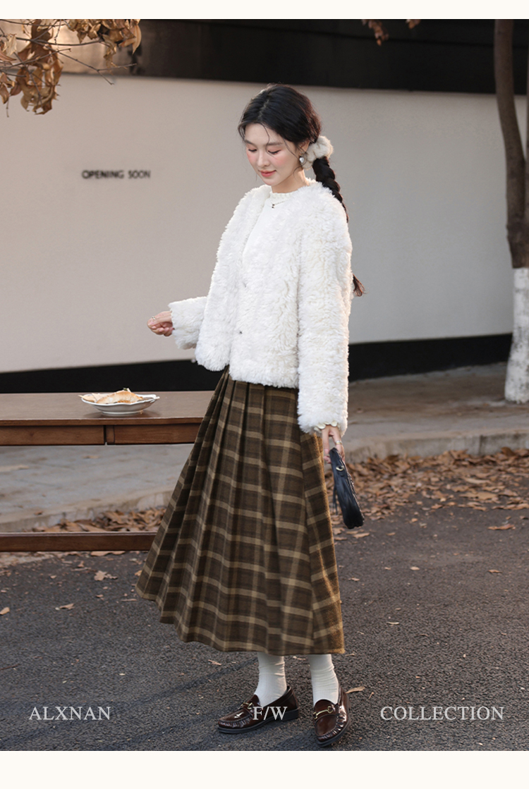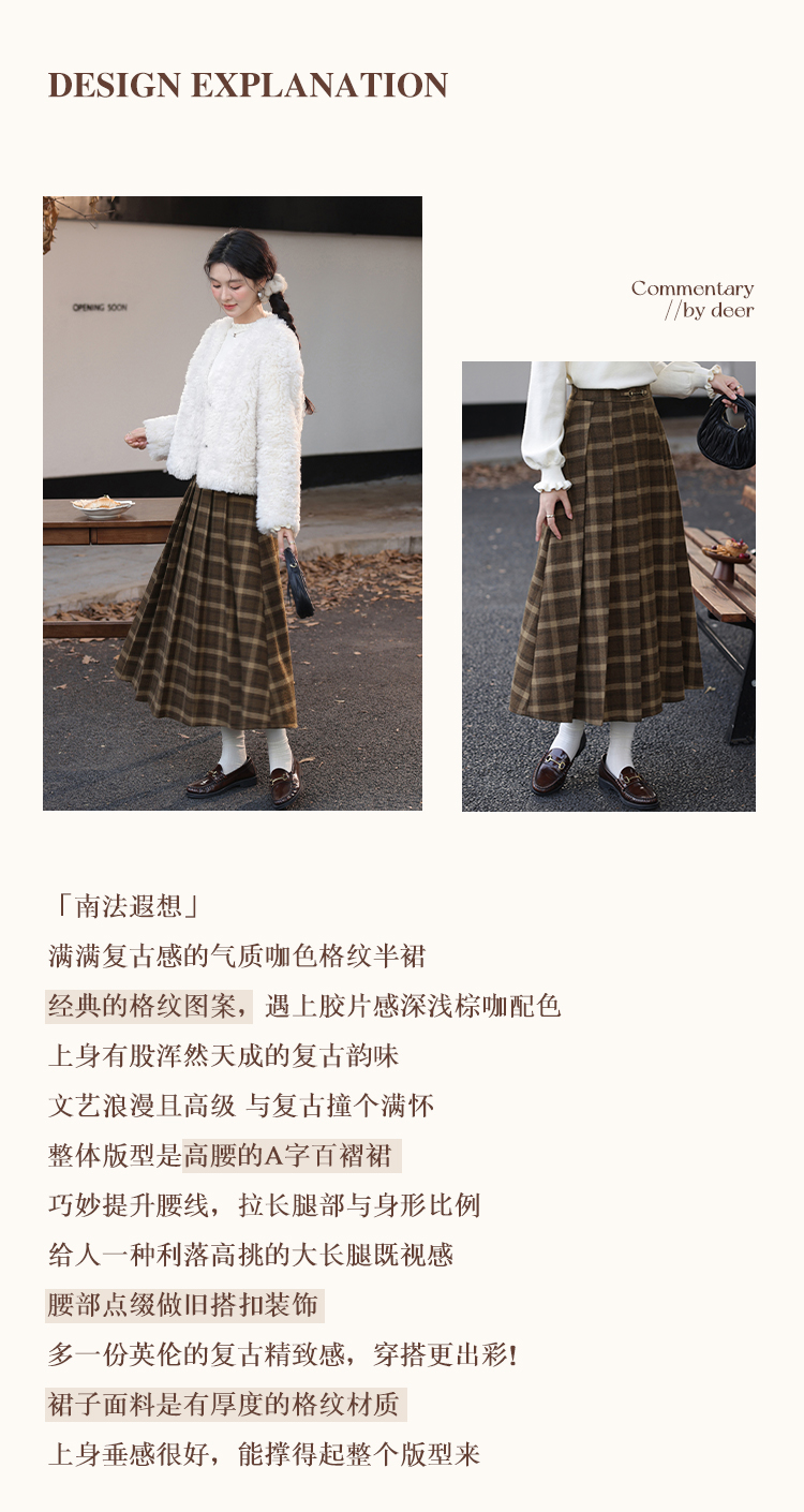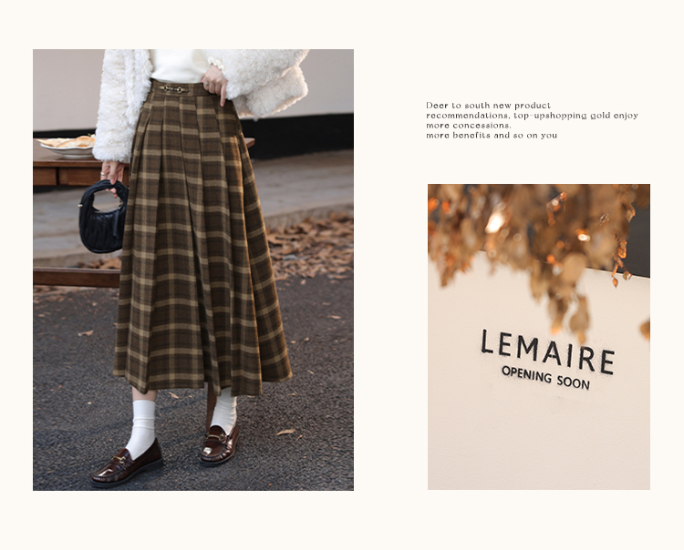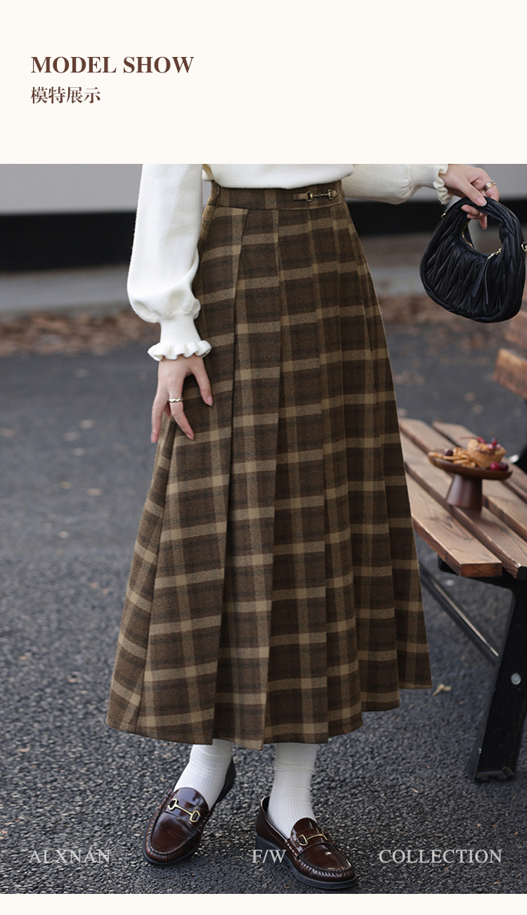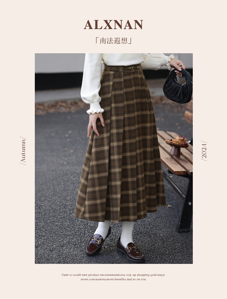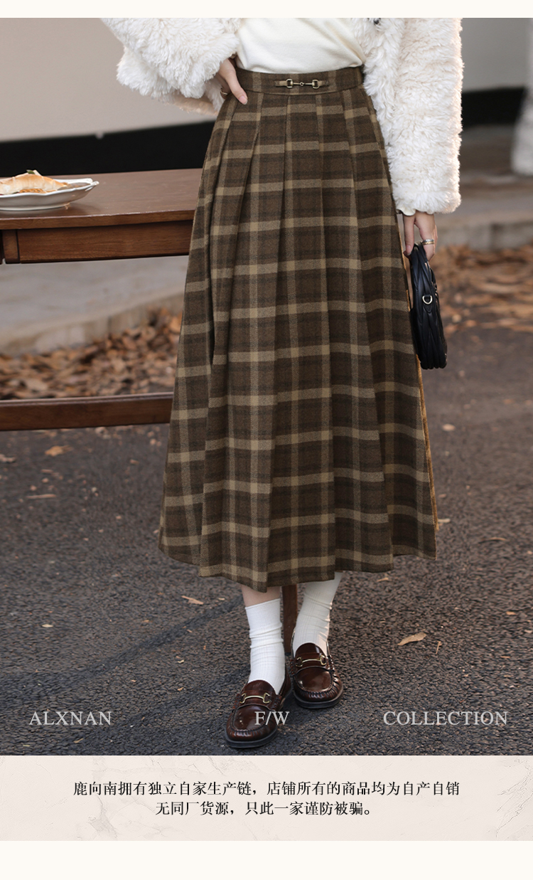 鹿向南「南法遐想」气质格纹半身裙女装冬季2024新款保暖显瘦裙子