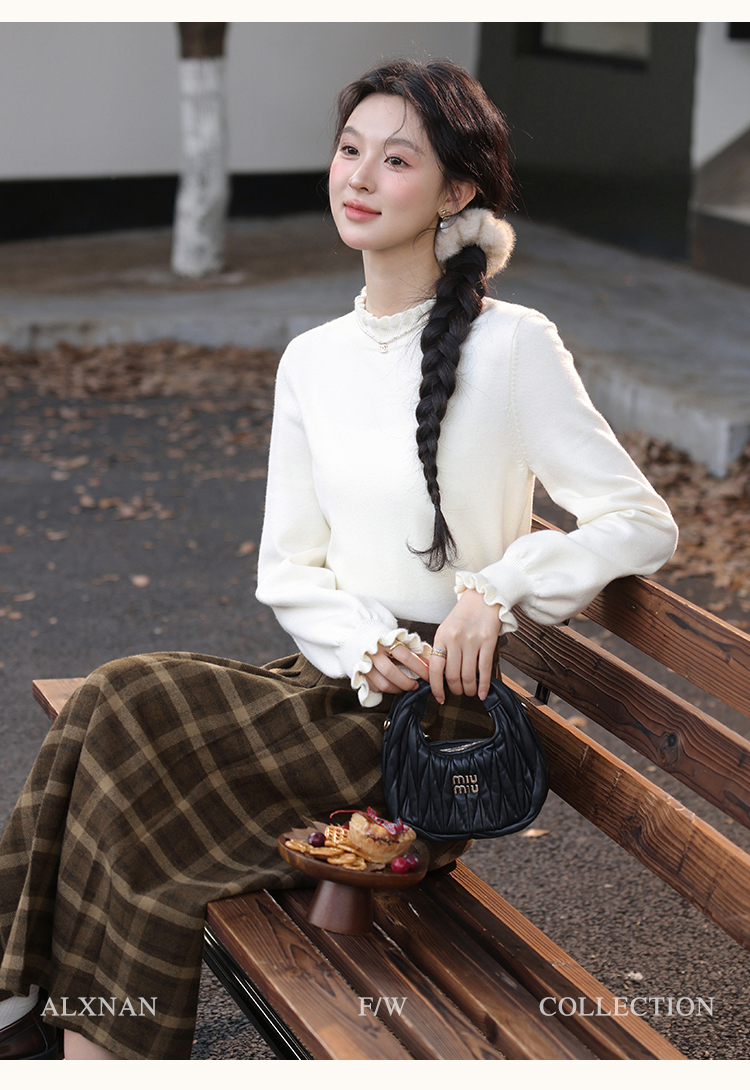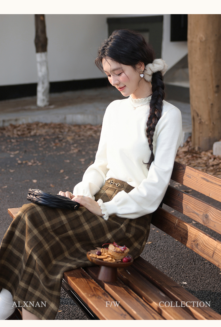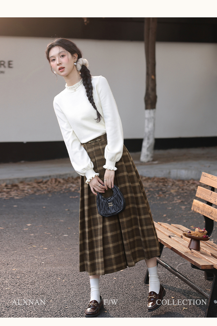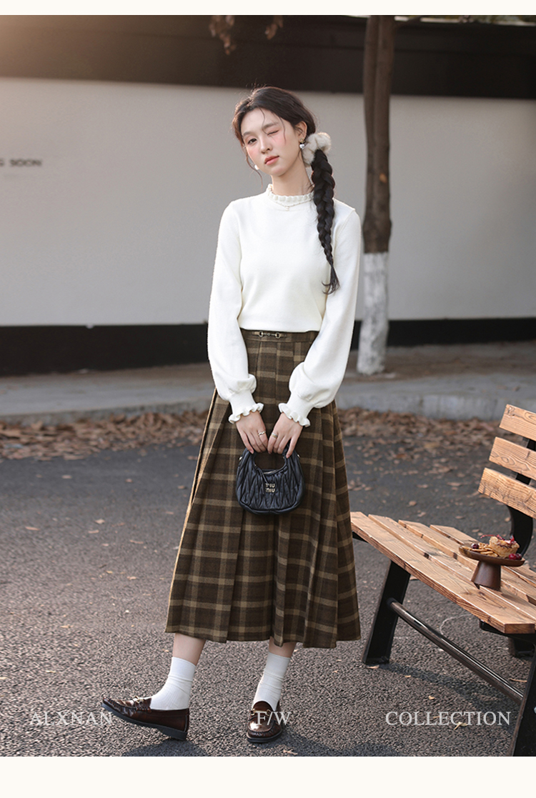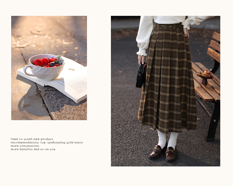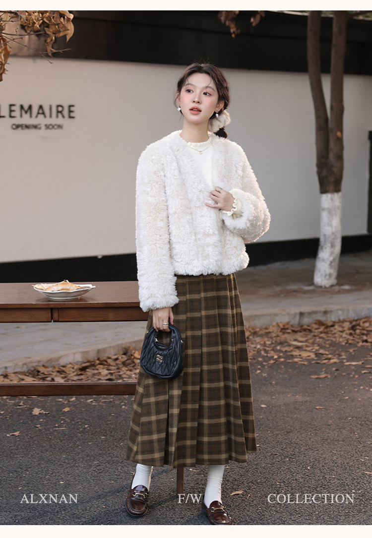鹿向南「南法遐想」气质格纹半身裙女装冬季2024新款保暖显瘦裙子