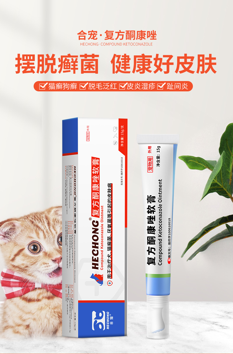 合宠复方酮康唑软膏猫藓专用药猫癣外用药狗癣皮肤病止痒真菌药膏