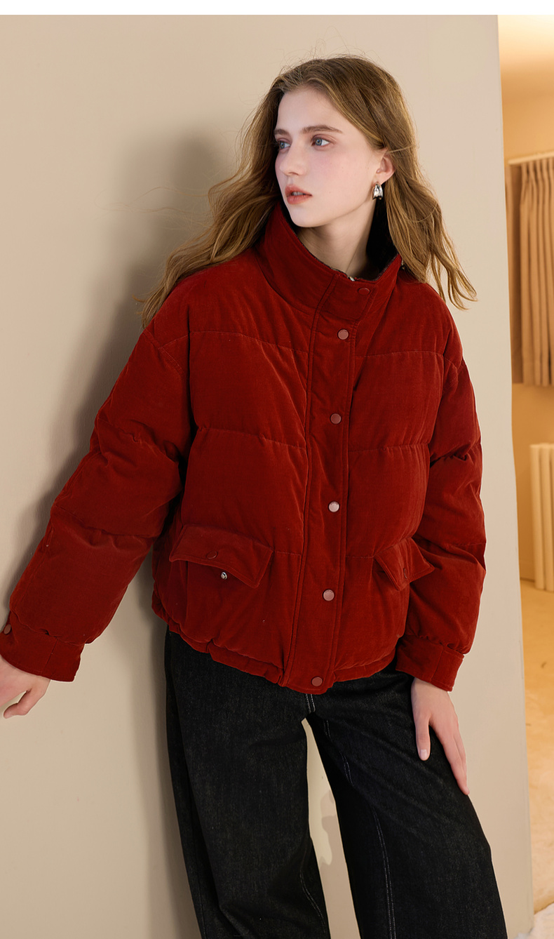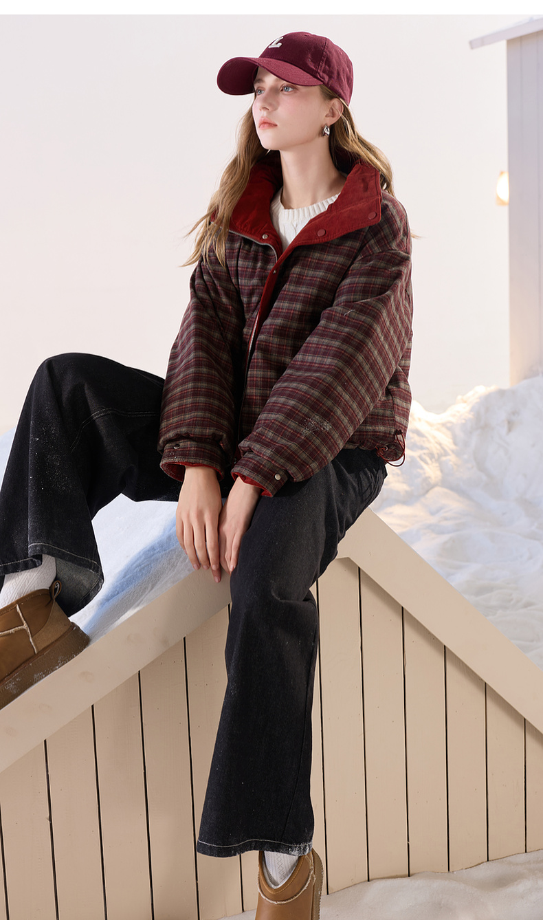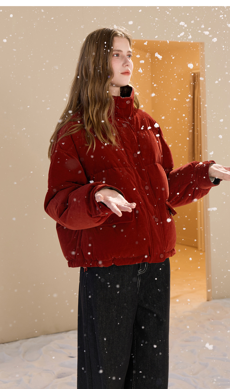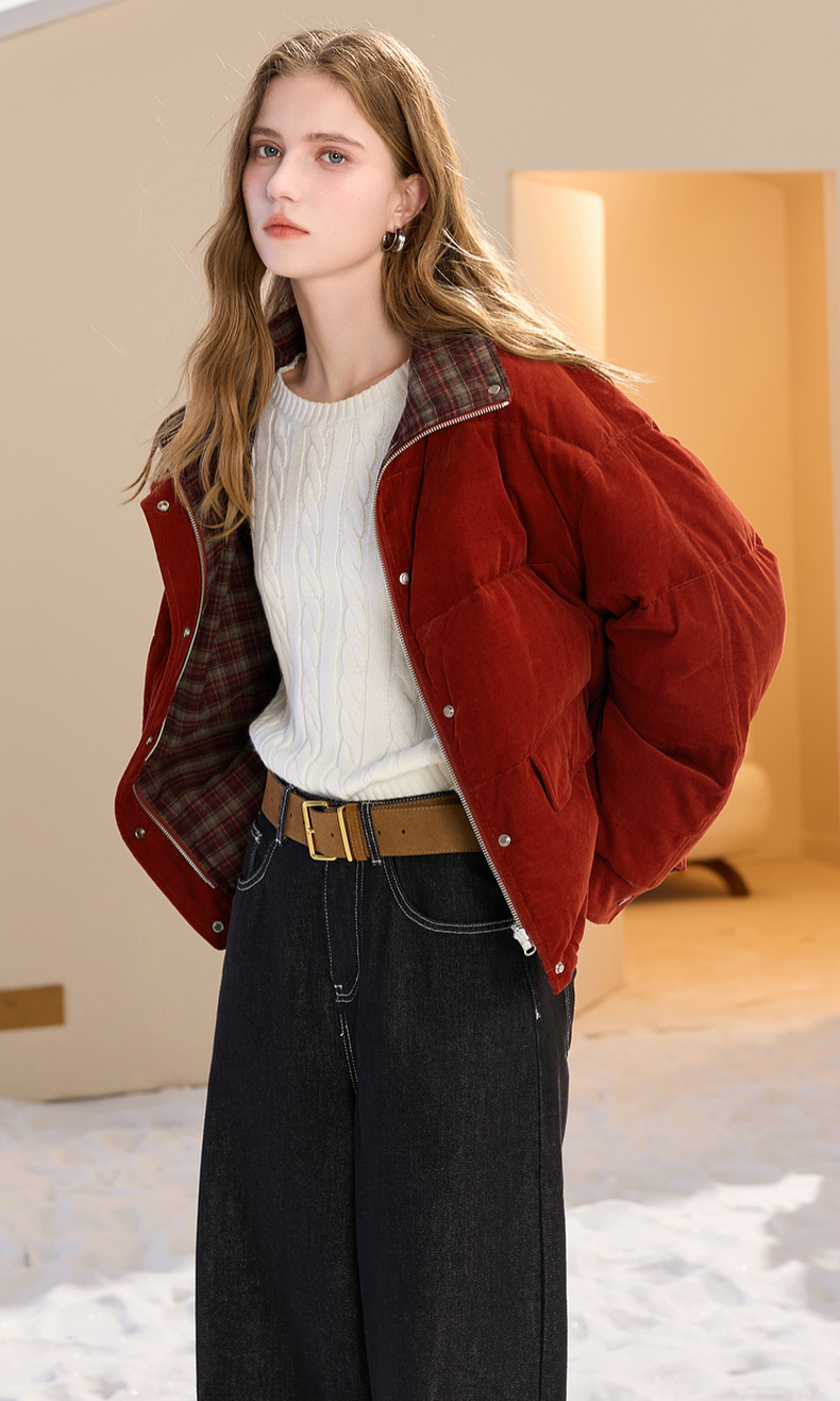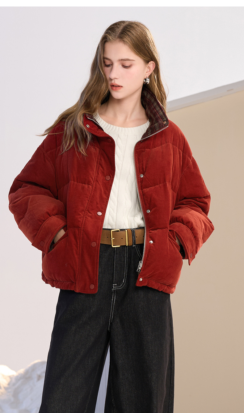 三彩2025冬季新款两面穿羽绒服90白鸭绒短款绗缝面包服M