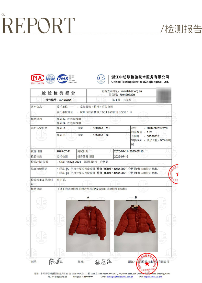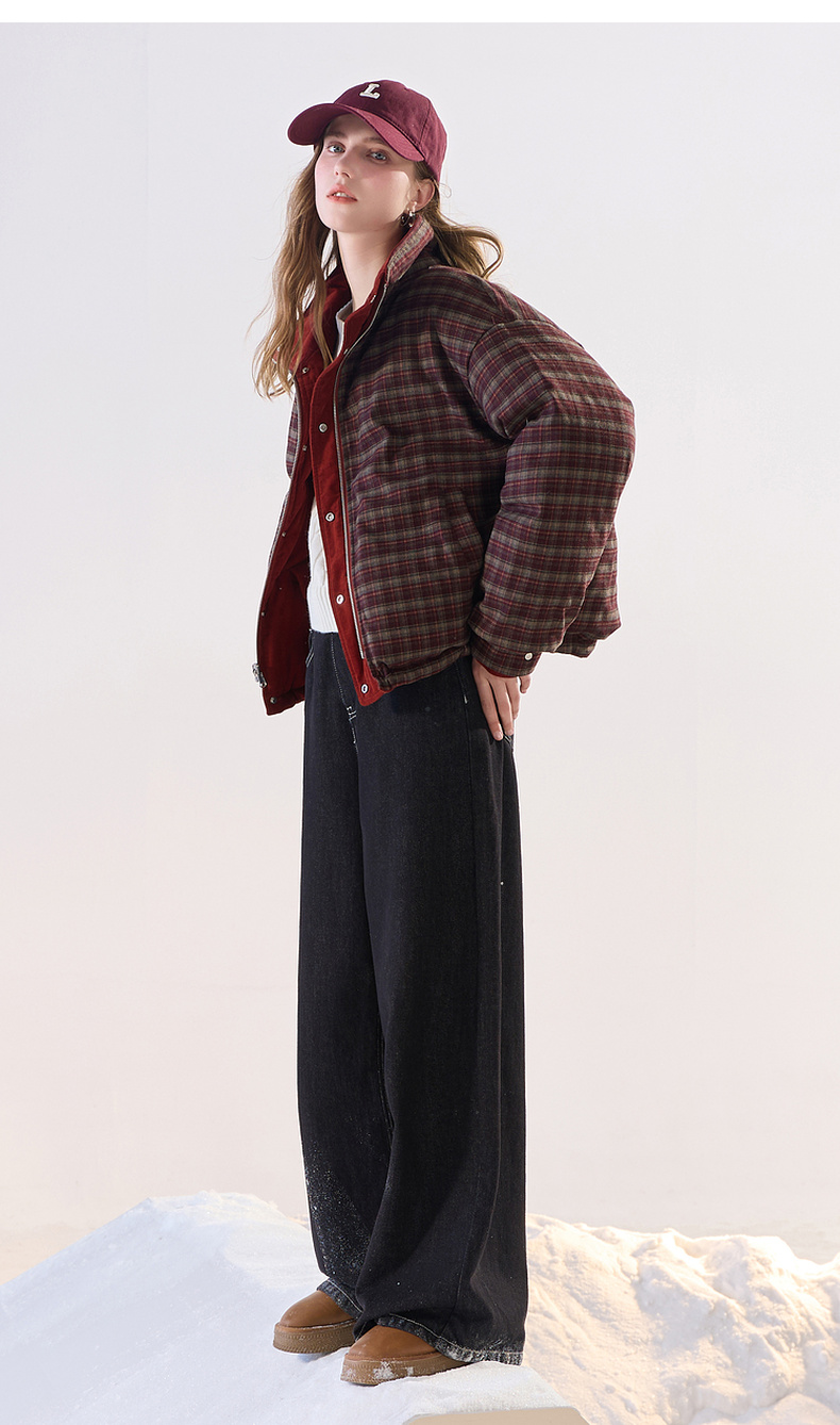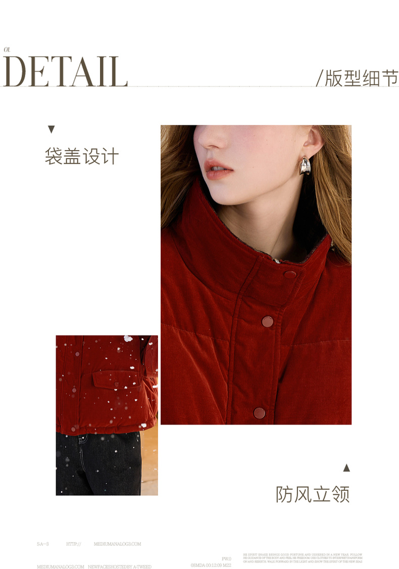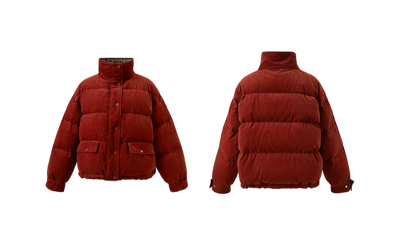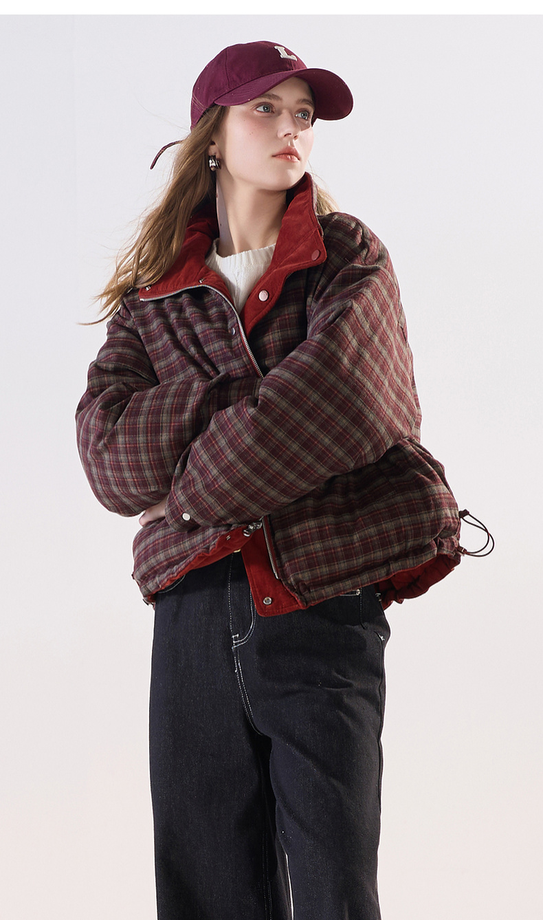 三彩2025冬季新款两面穿羽绒服90白鸭绒短款绗缝面包服M