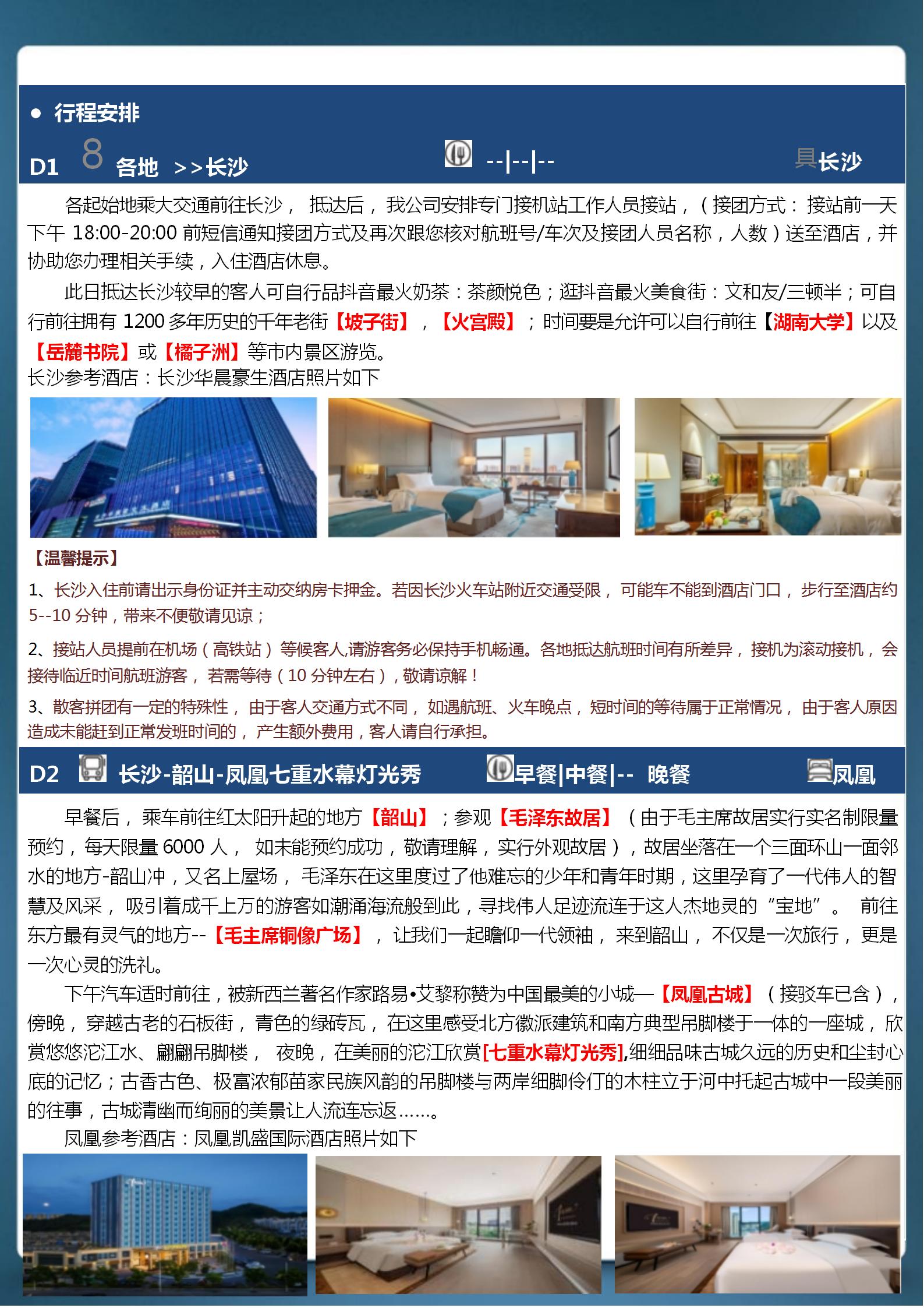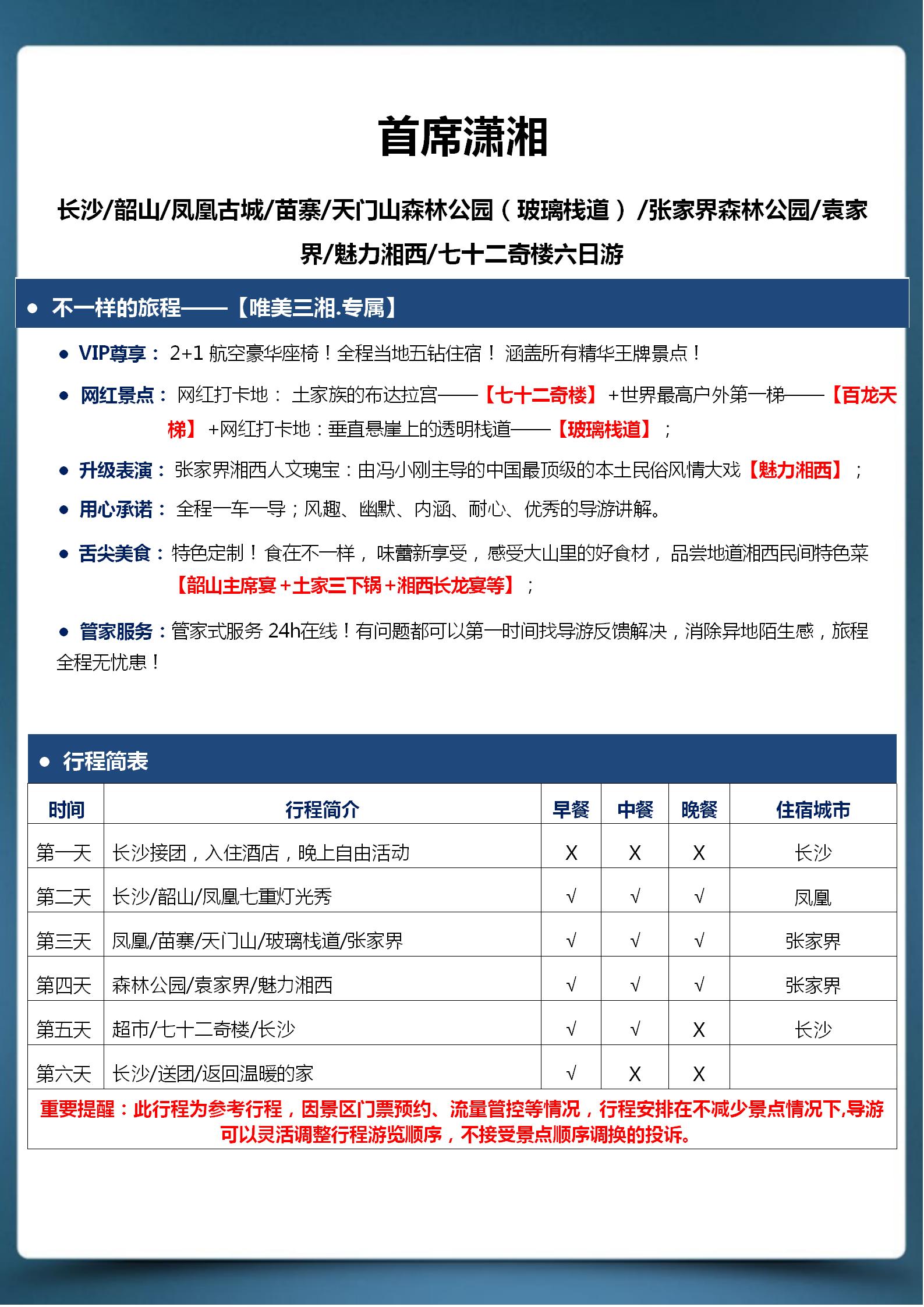首席潇湘五钻--携程评级标准(长沙-韶山-凤凰-天门山-张家界往返6日游含餐) (25人成团)