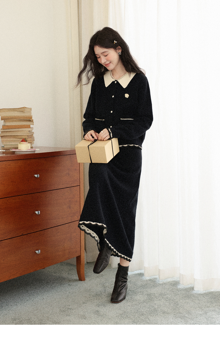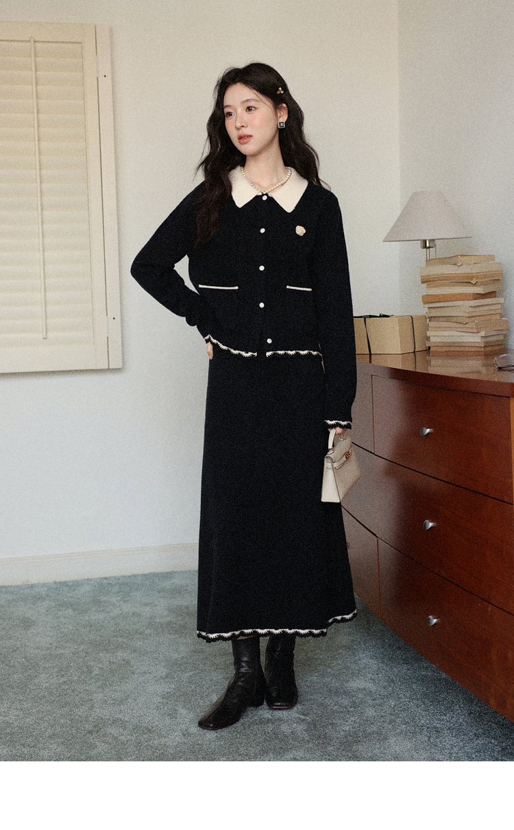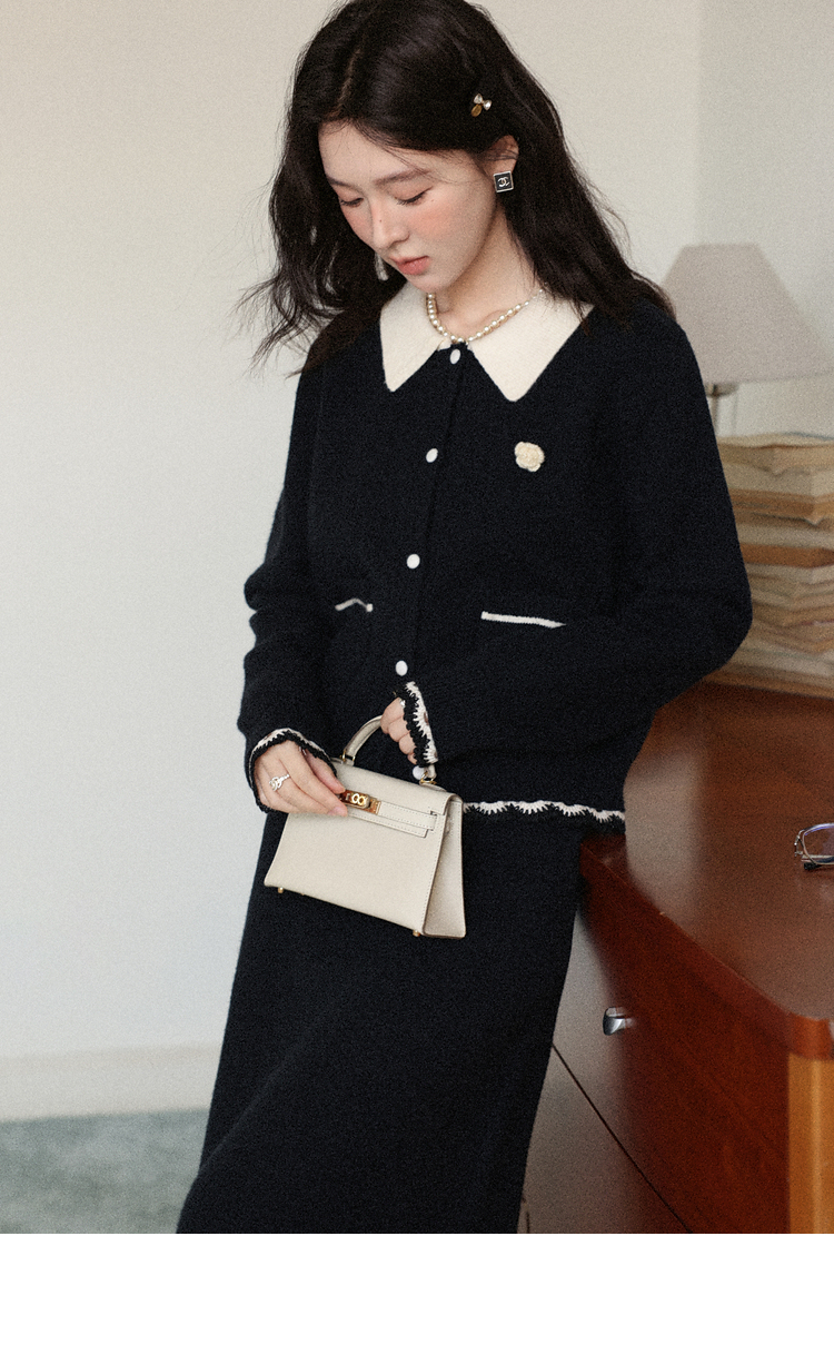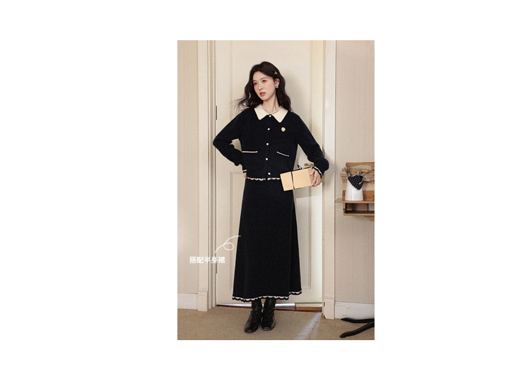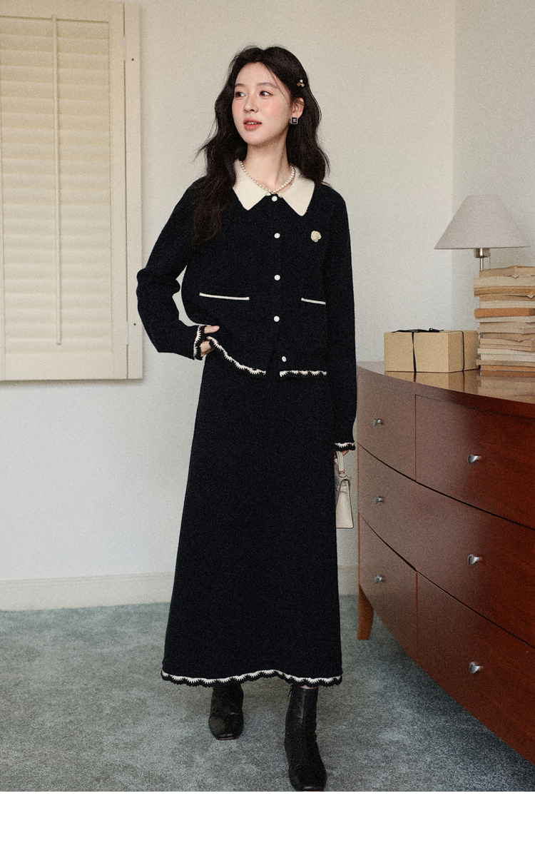 鹿向南「人间白茶」长袖黑色毛衣女秋冬法式慵懒感短款针织衫上衣