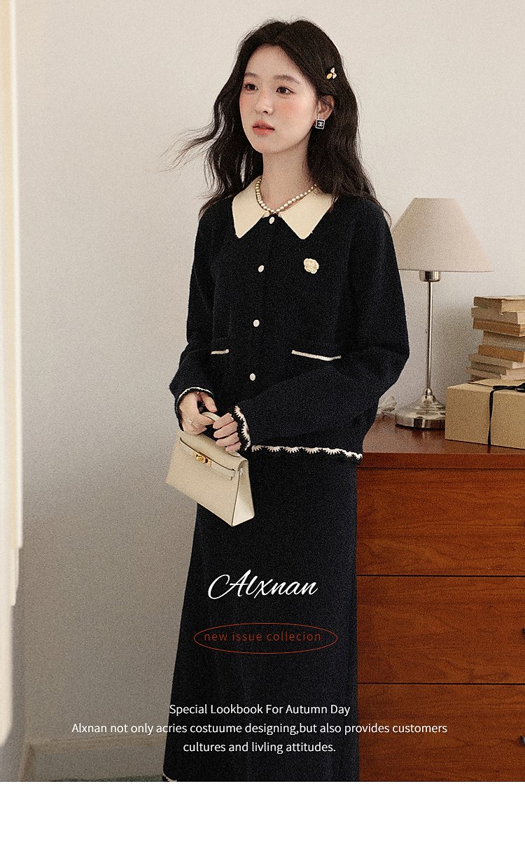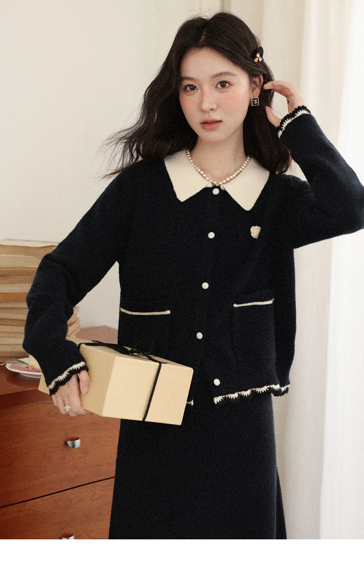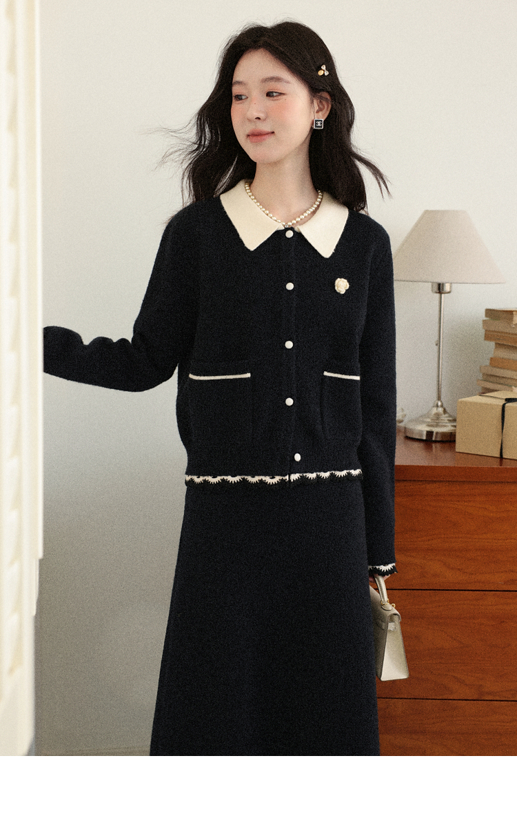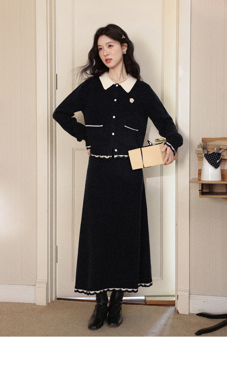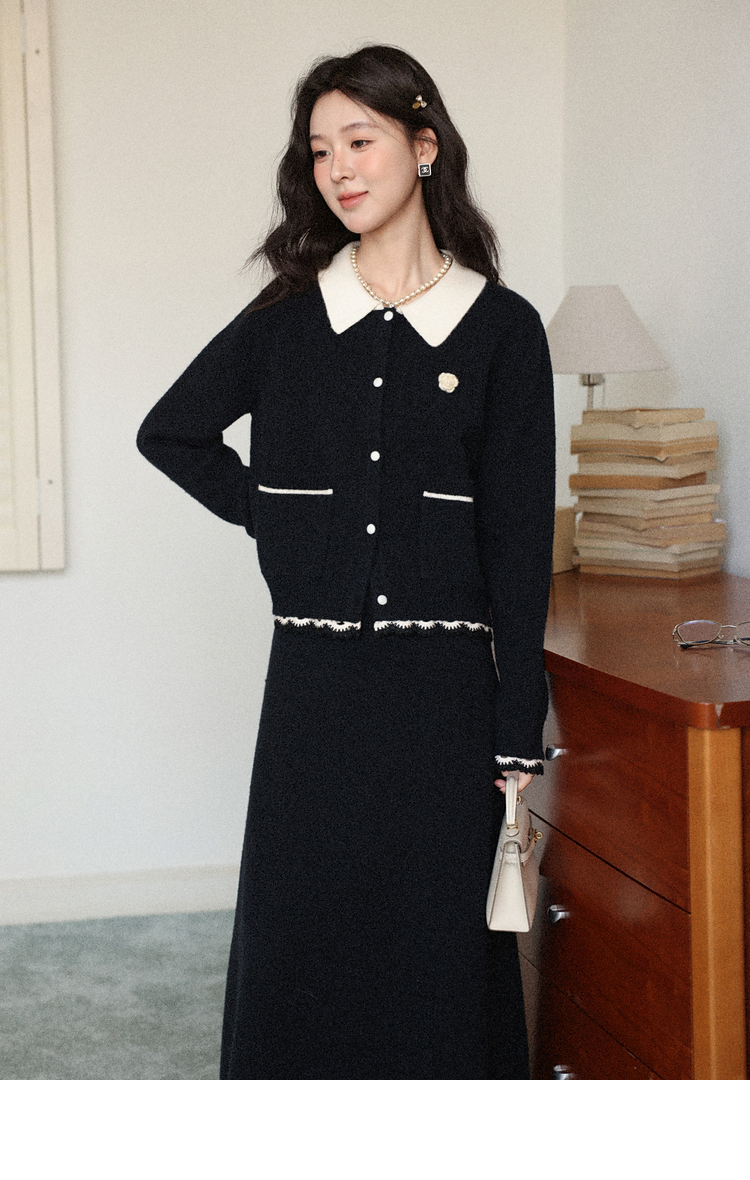 鹿向南「人间白茶」长袖黑色毛衣女秋冬法式慵懒感短款针织衫上衣