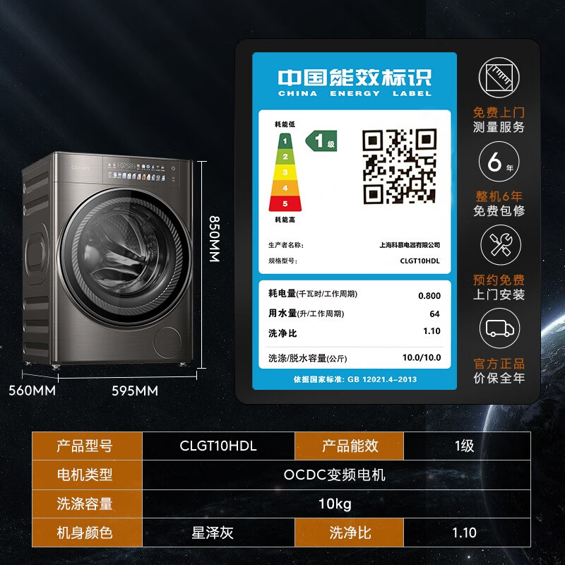 【限天津区域】COLMO/洗衣机/CLGT10HDL星泽灰