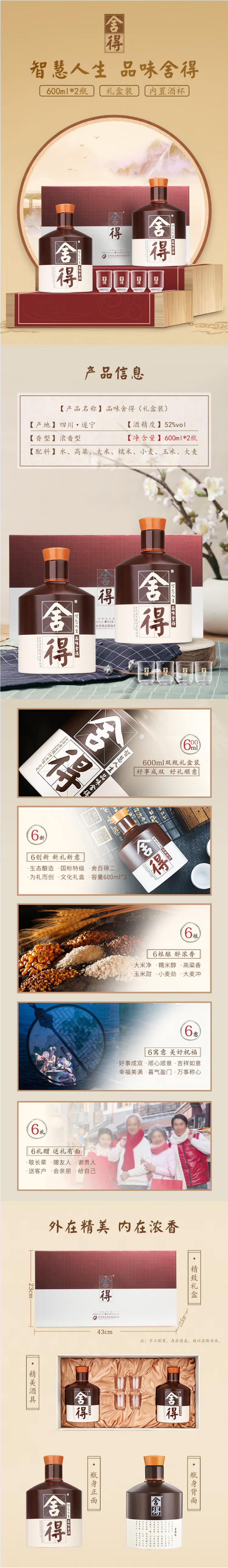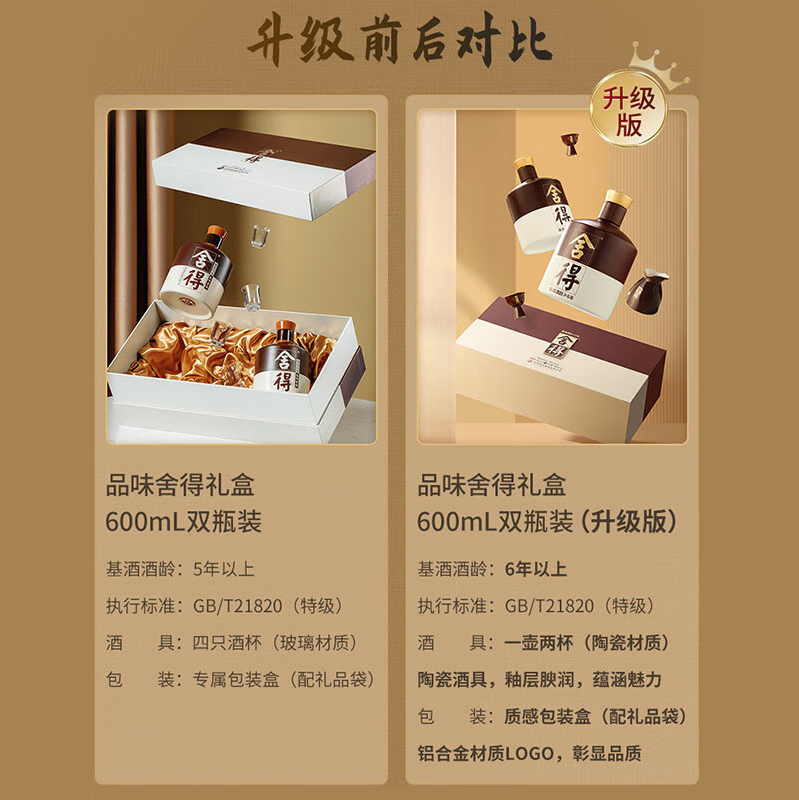 【单瓶360】舍得 品味舍得 浓香型 52度 600ml*2礼盒装新版