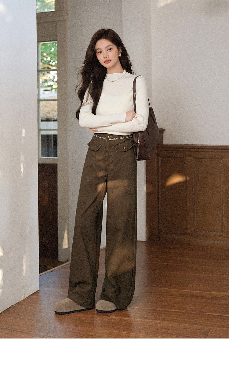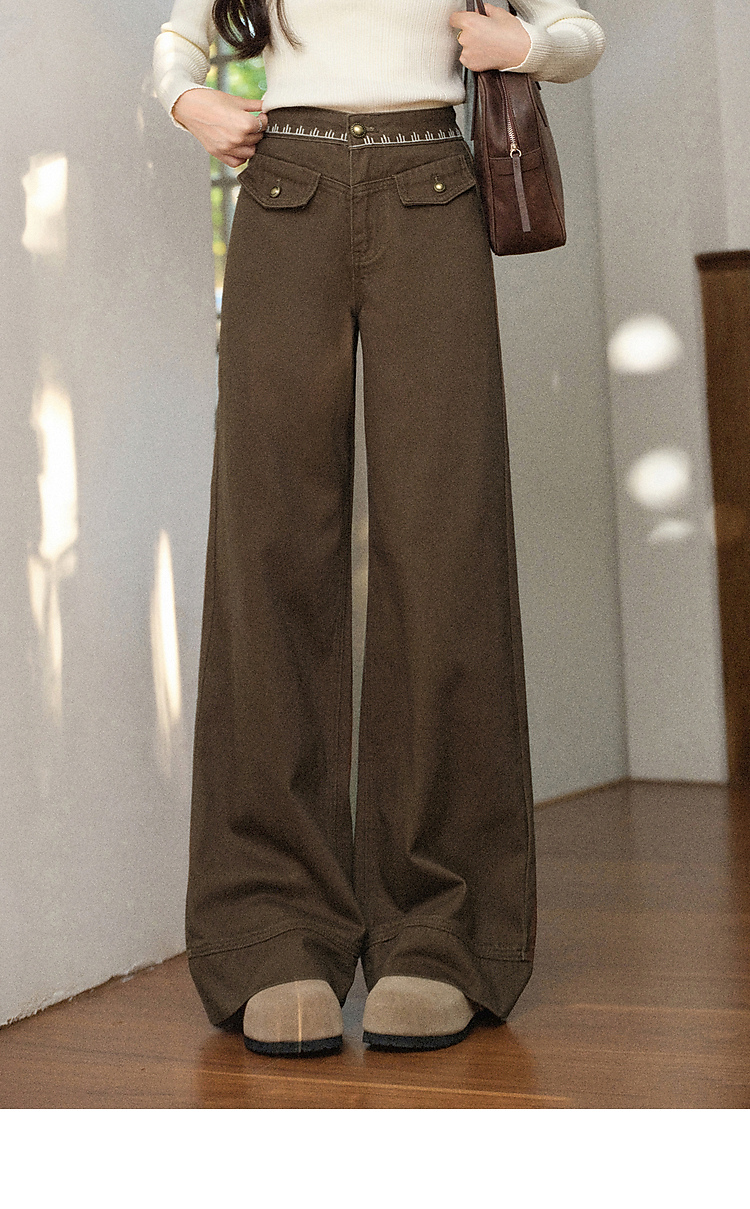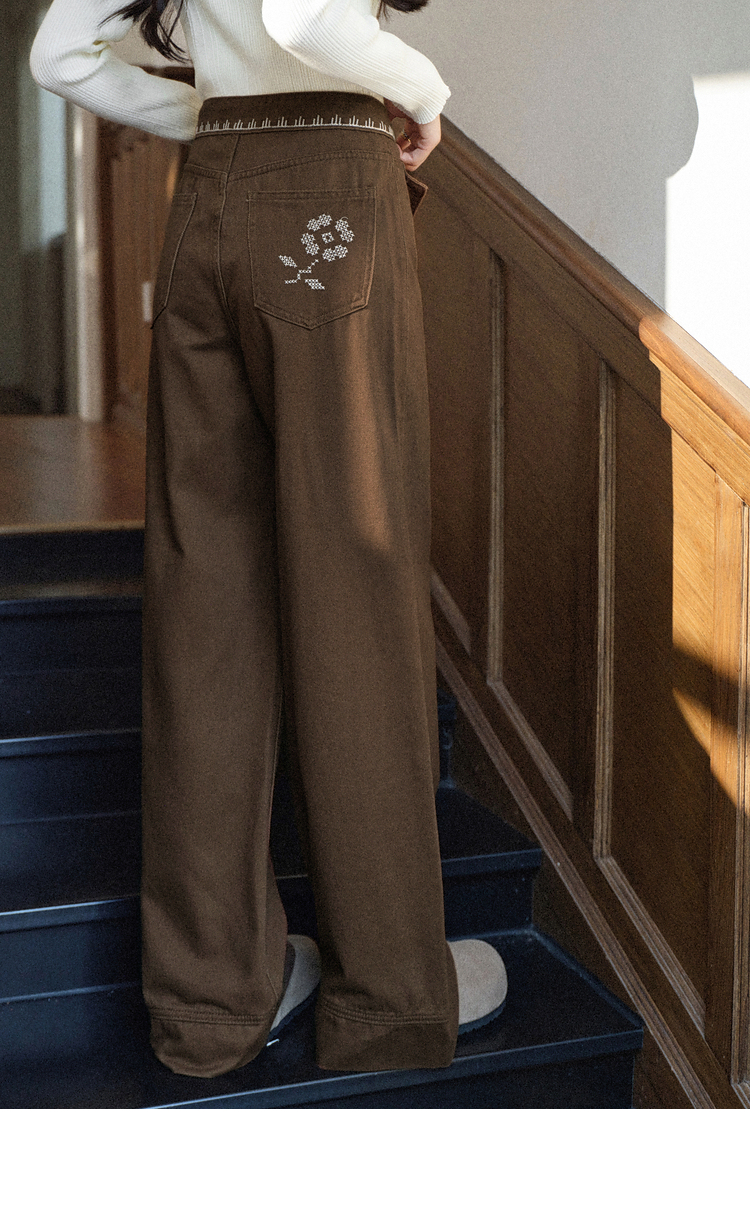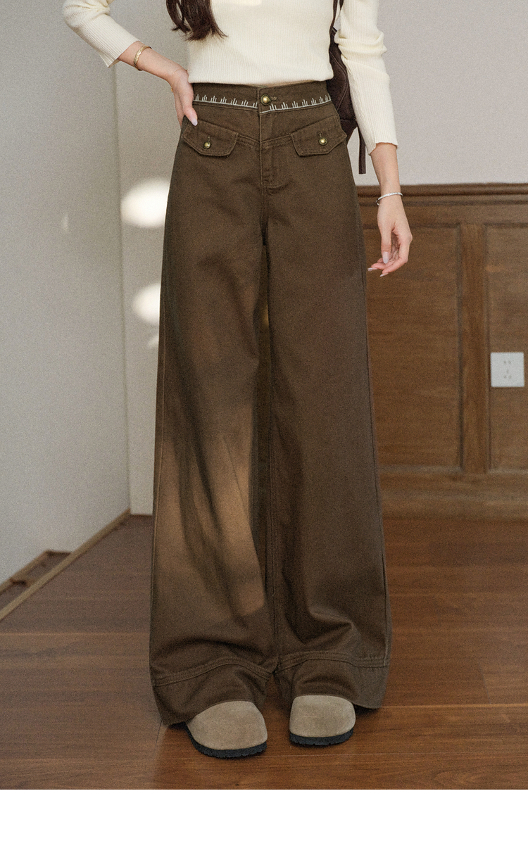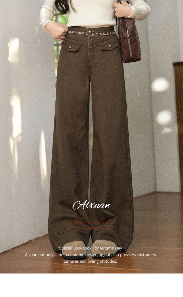 鹿向南「巴黎气泡」复古咖色直筒牛仔裤女初秋直筒高腰休闲长裤子