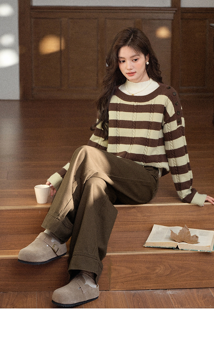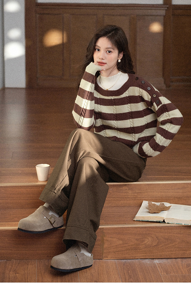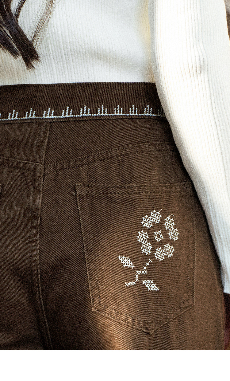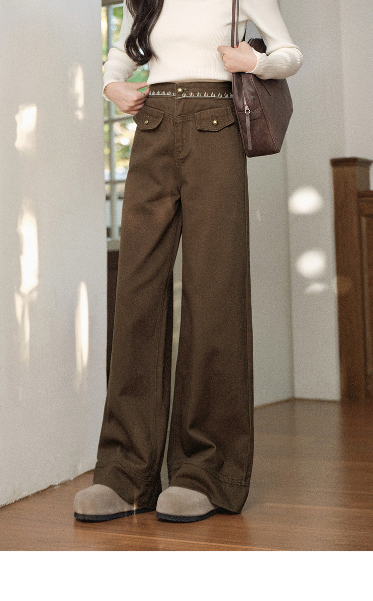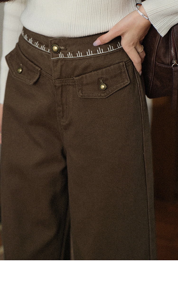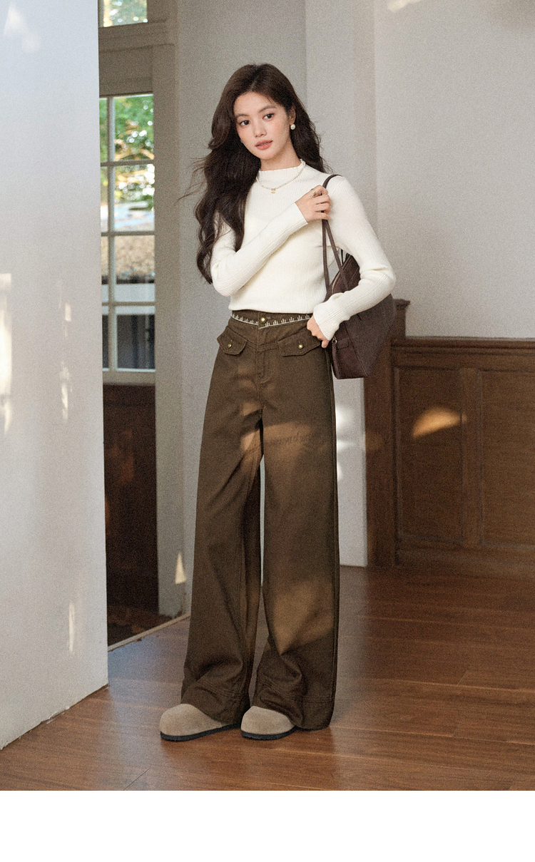 鹿向南「巴黎气泡」复古咖色直筒牛仔裤女初秋直筒高腰休闲长裤子
