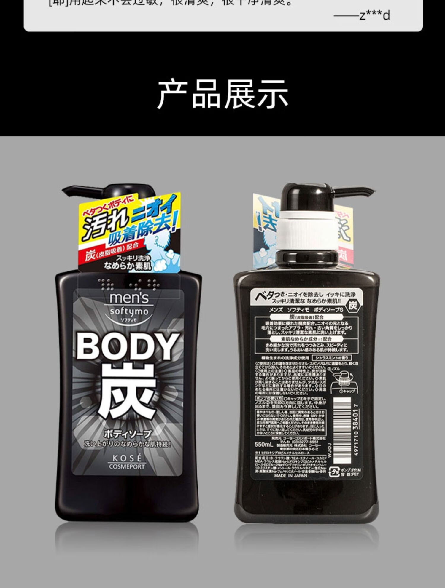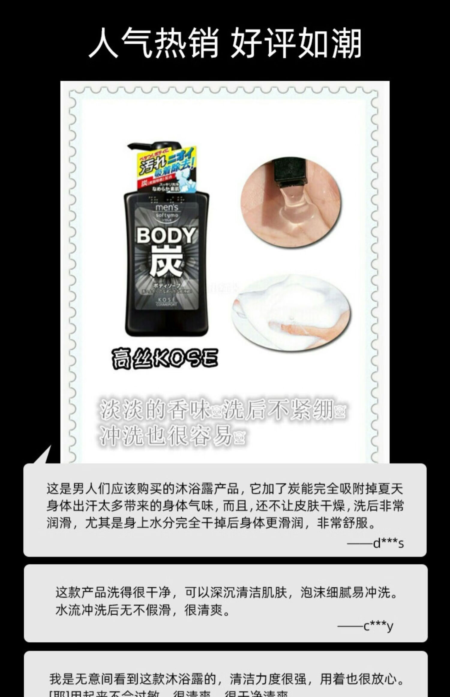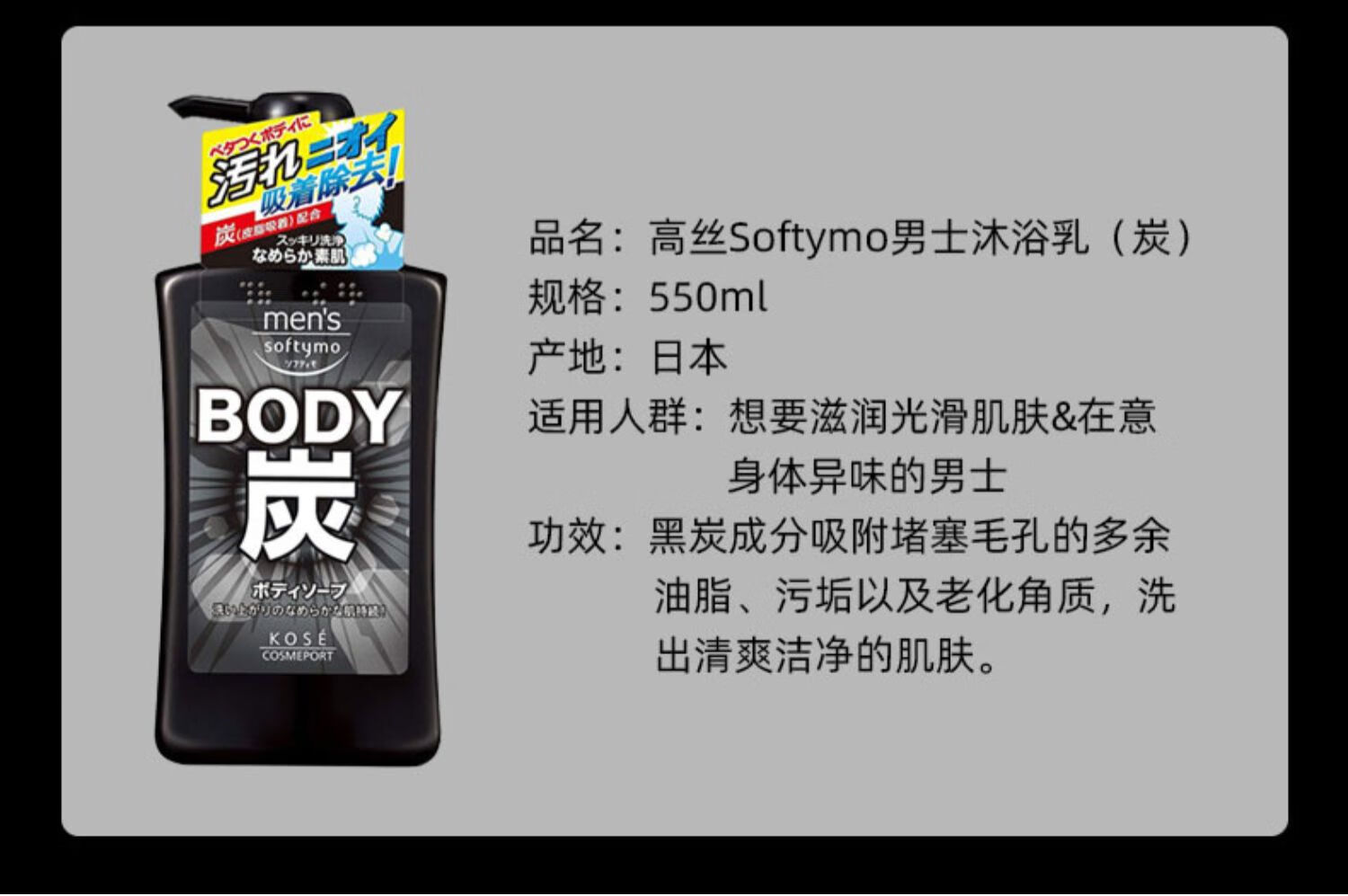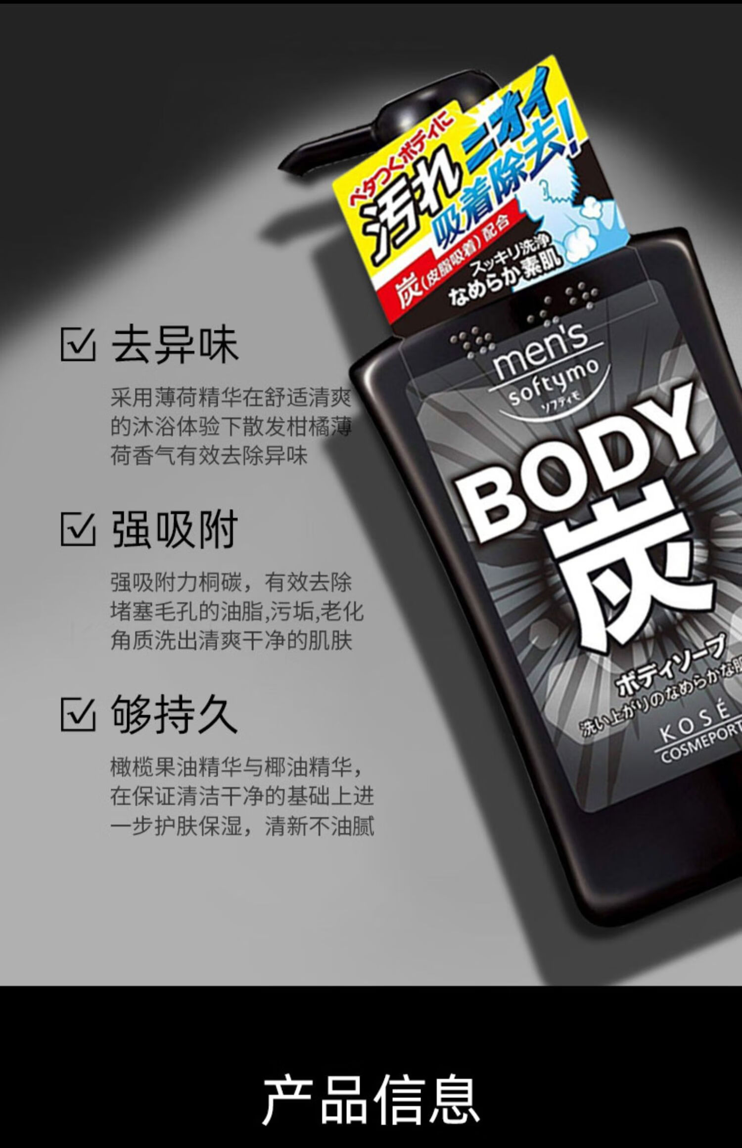 高丝日本KOSE高丝softymo男士沐浴露活性炭深层清洁清爽不假滑控油 原装进口 550ml_BYY