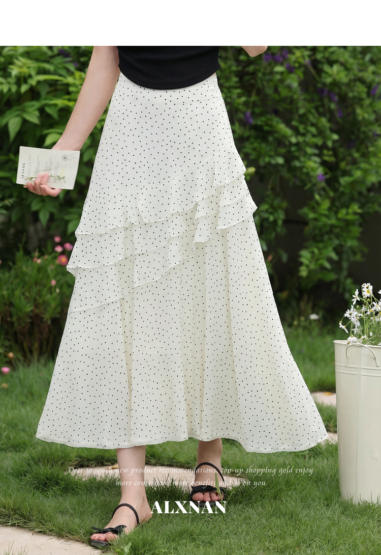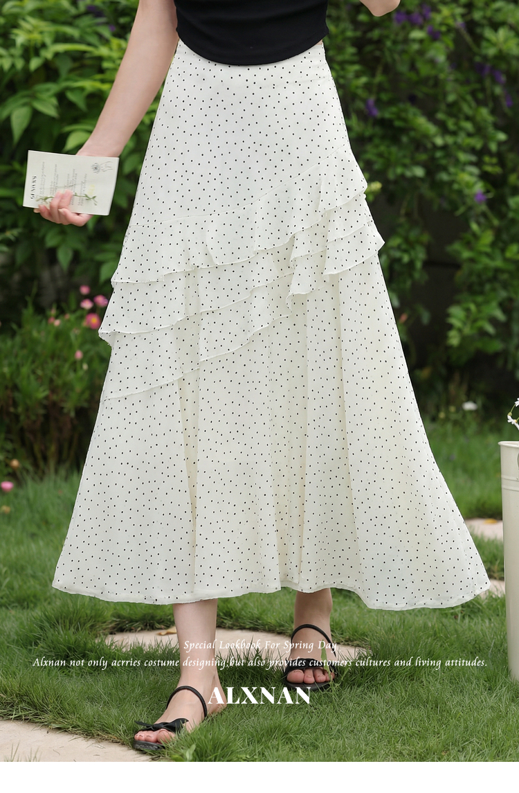 鹿向南【0405/20:00新品前1小时7折限量100件】白色波点半身裙