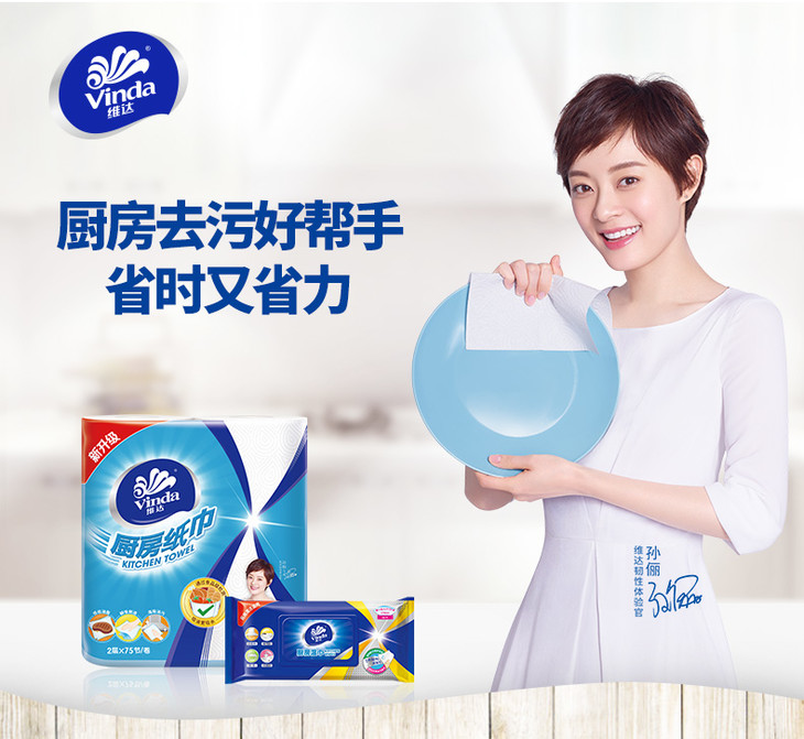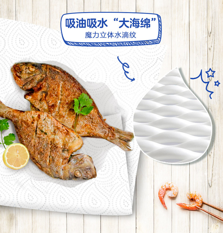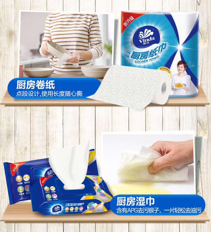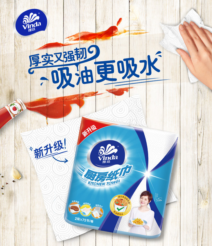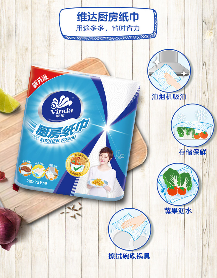 维达厨房纸巾 75节8卷 厨房用吸油卫生纸 料理吸水卷纸 包邮 厨房用纸