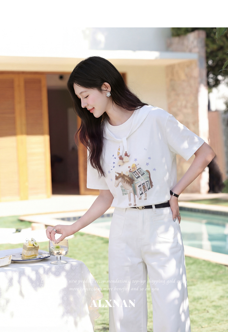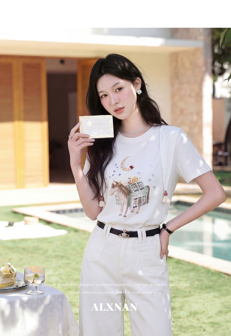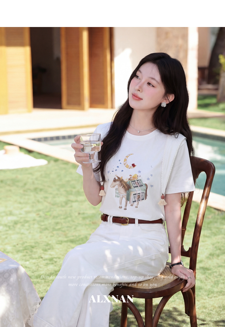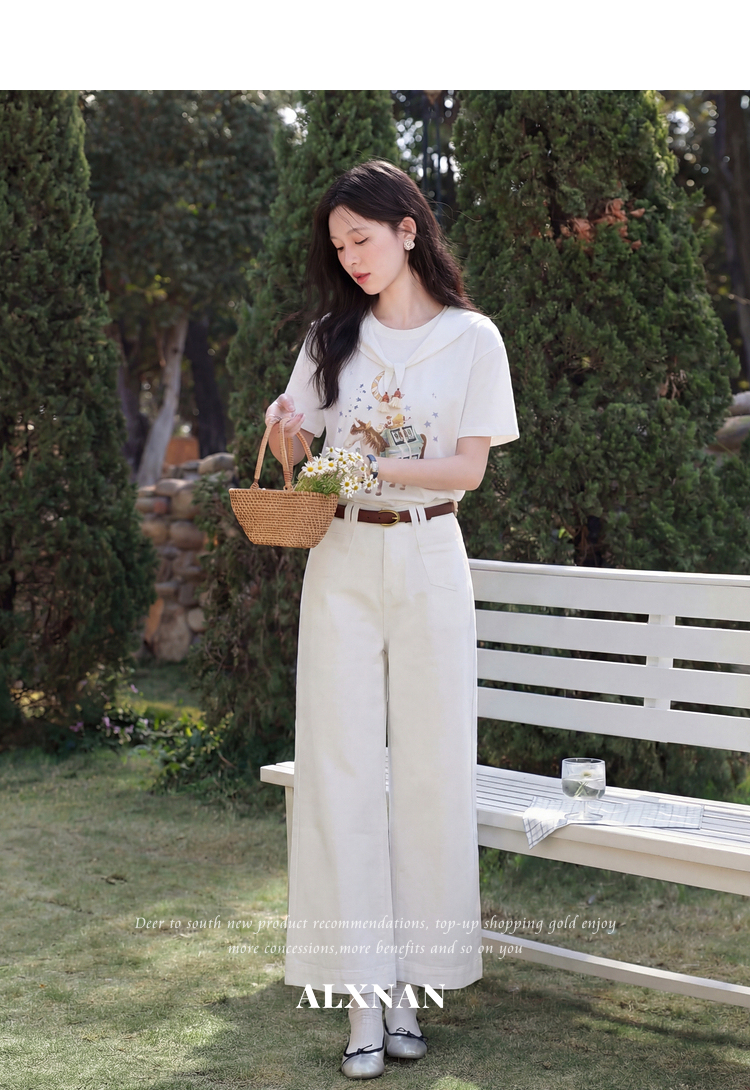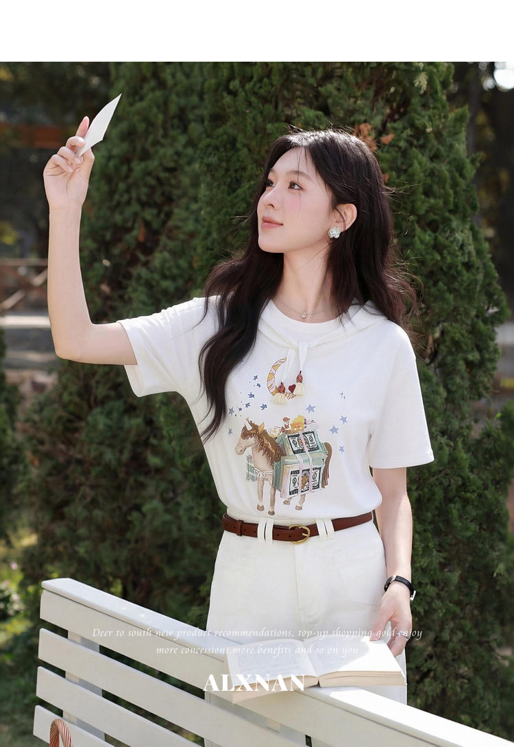 鹿向南【0328/00:00新品前一小时7折】米白色短袖T恤