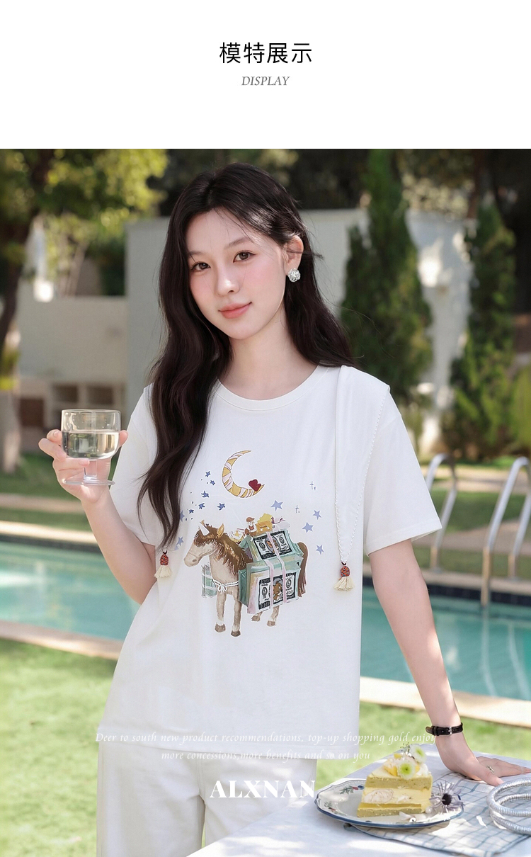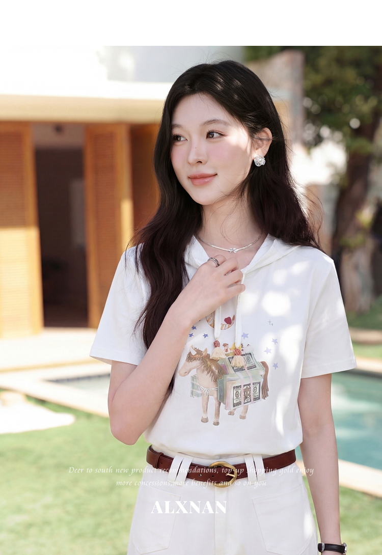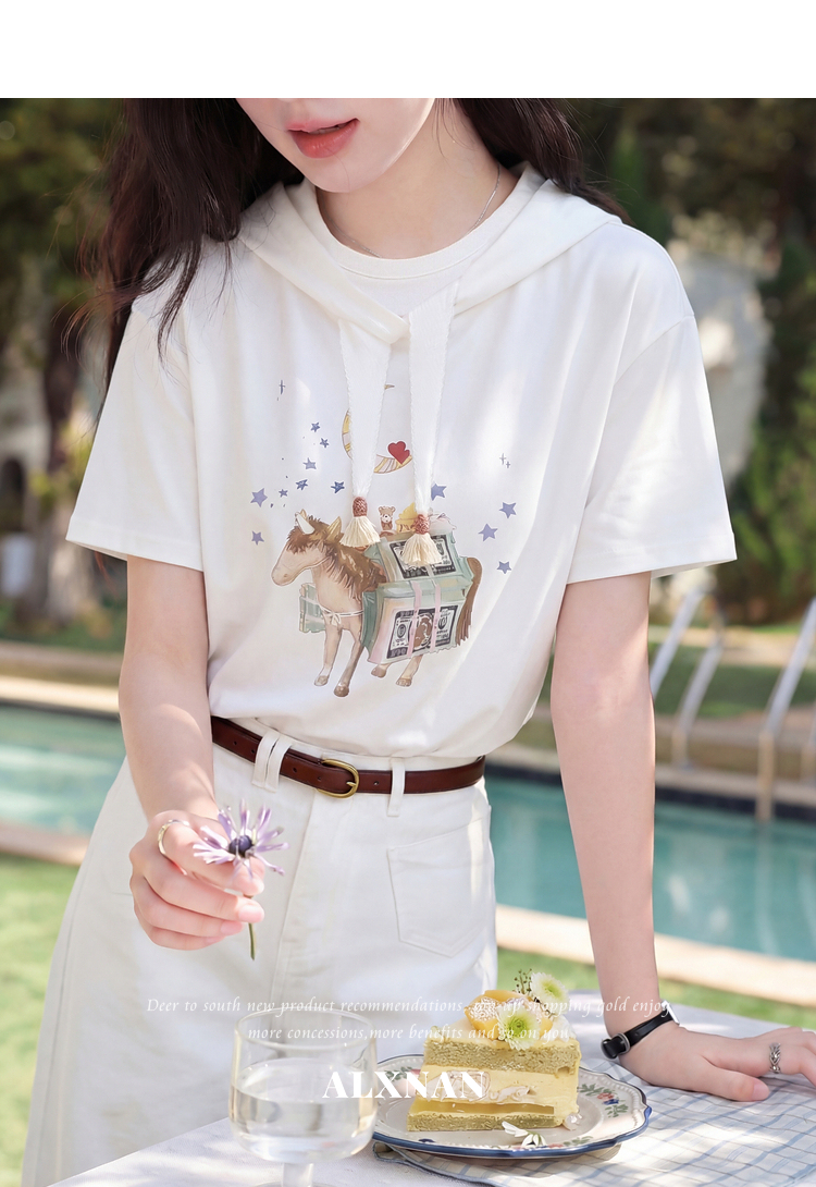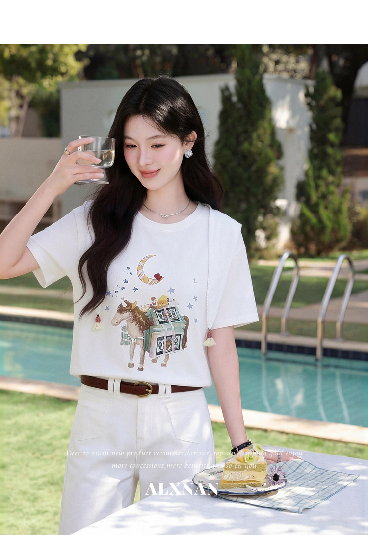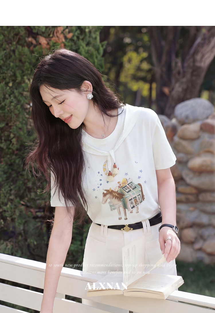 鹿向南【0328/00:00新品前一小时7折】米白色短袖T恤