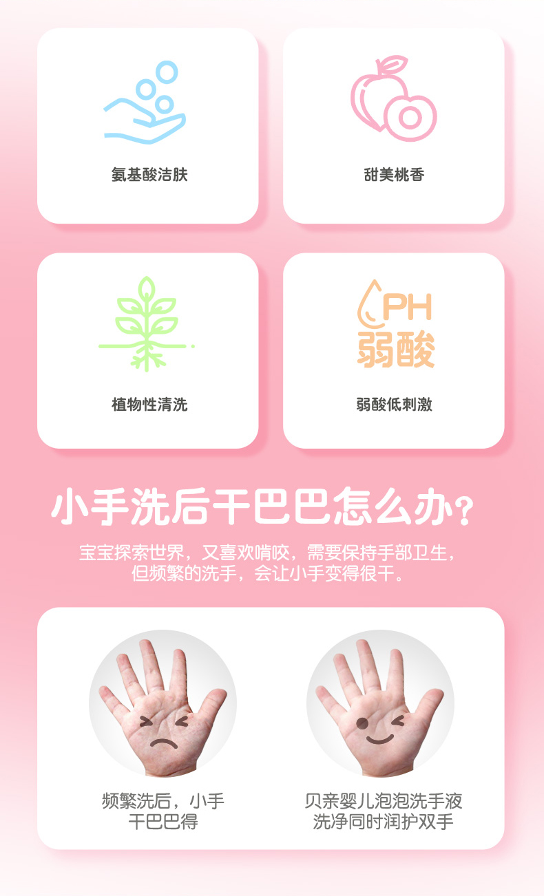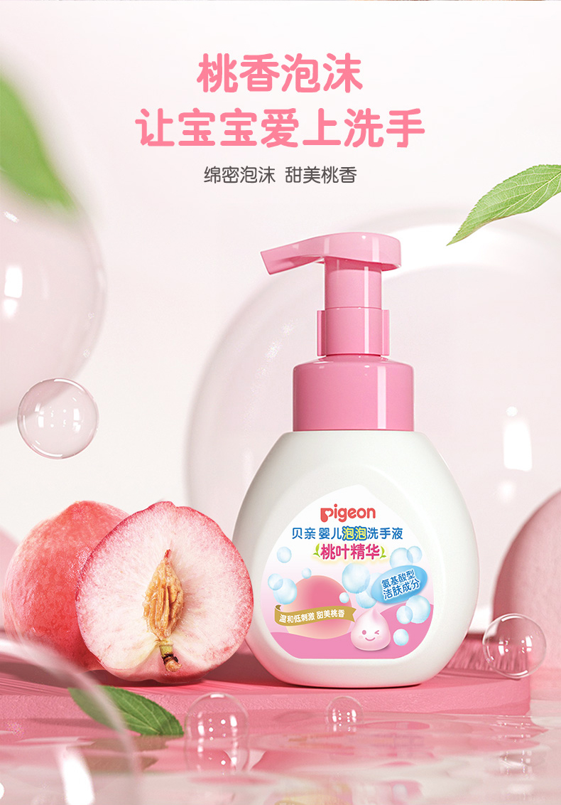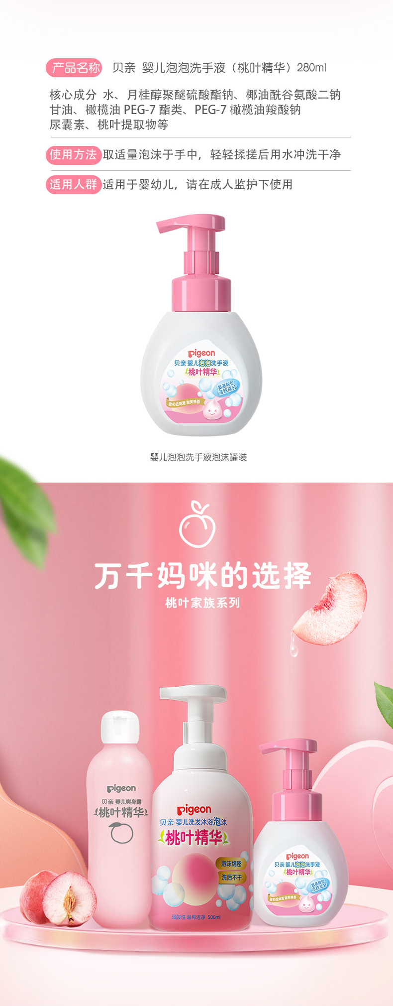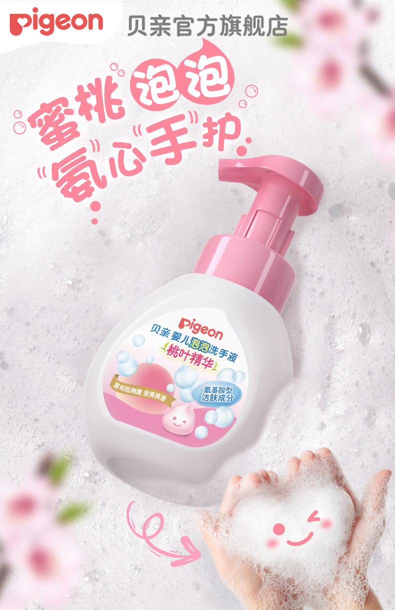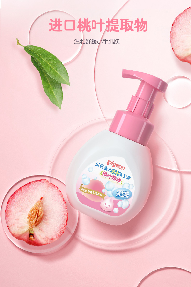 【官方自营】奚梦瑶推荐!PIGEON/贝亲宝宝桃叶泡泡洗手液280ml温和舒缓(6月龄+)