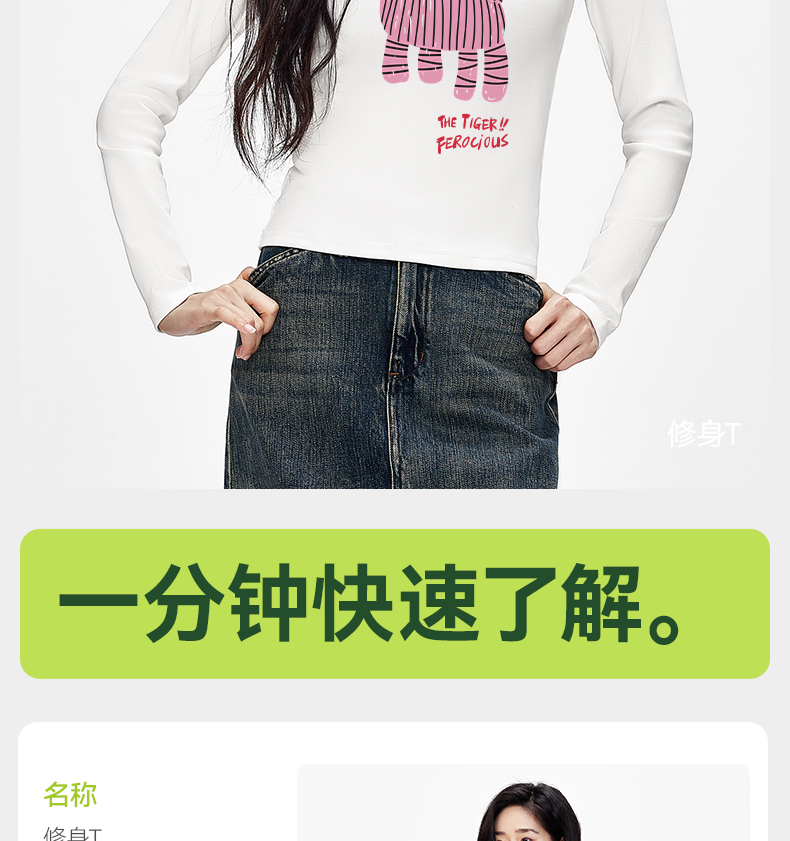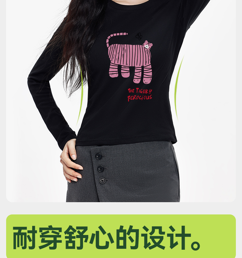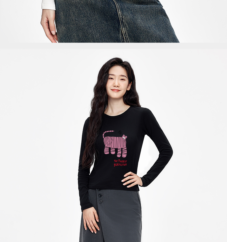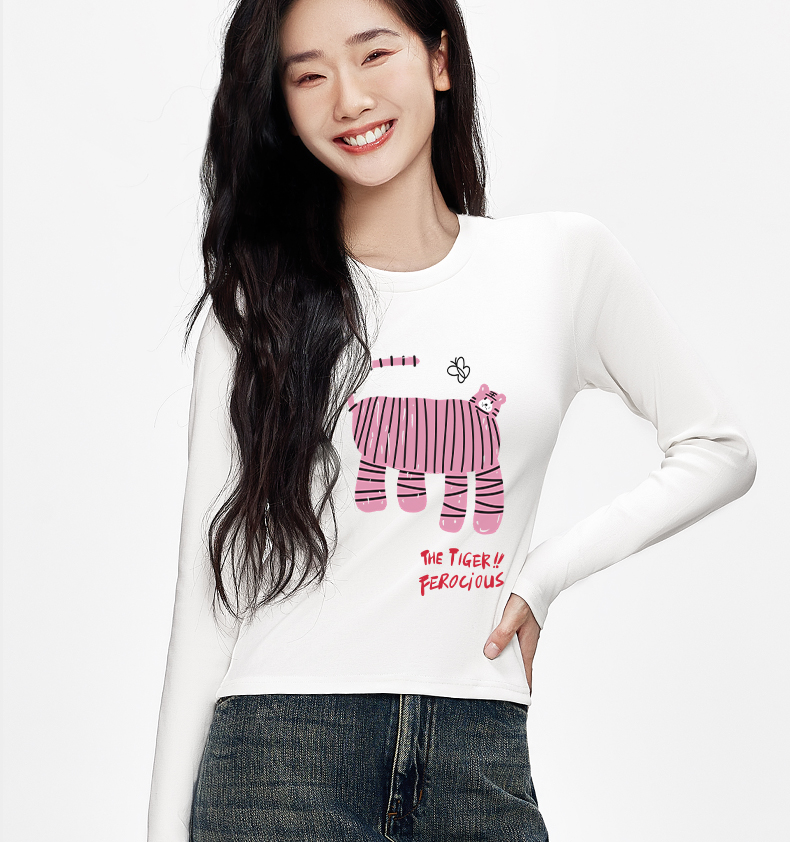 「棉的美学」秋季辣妹显瘦长袖T恤女印花软糯舒适经典个性打底衫