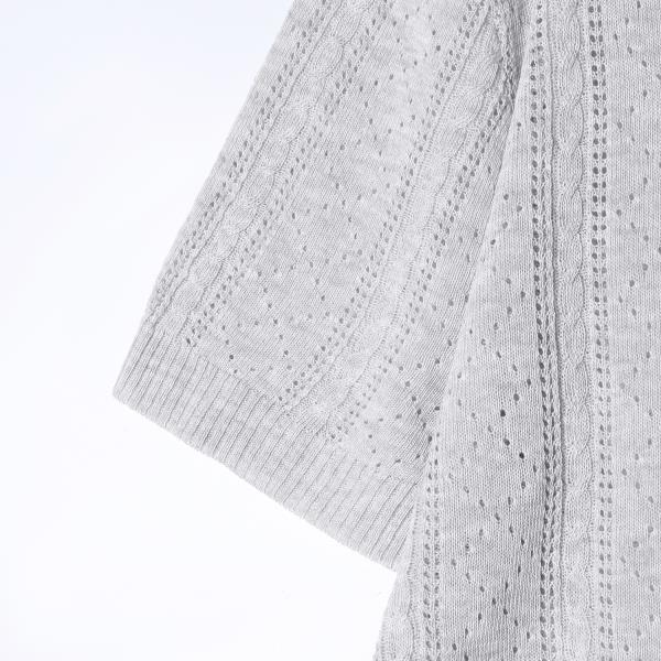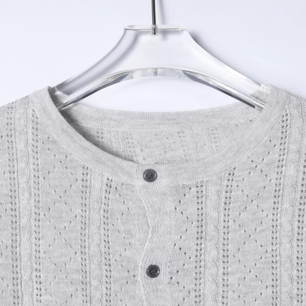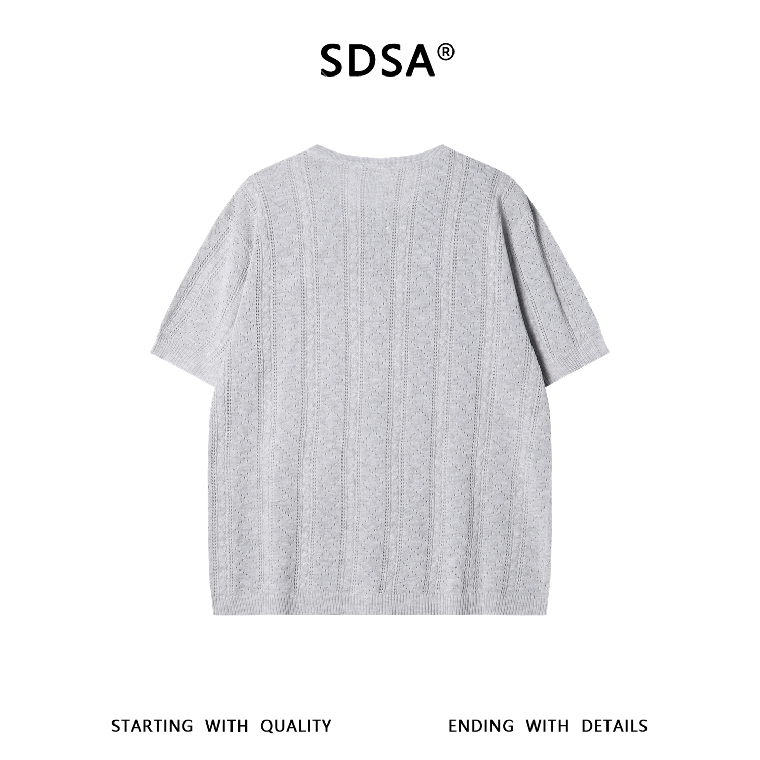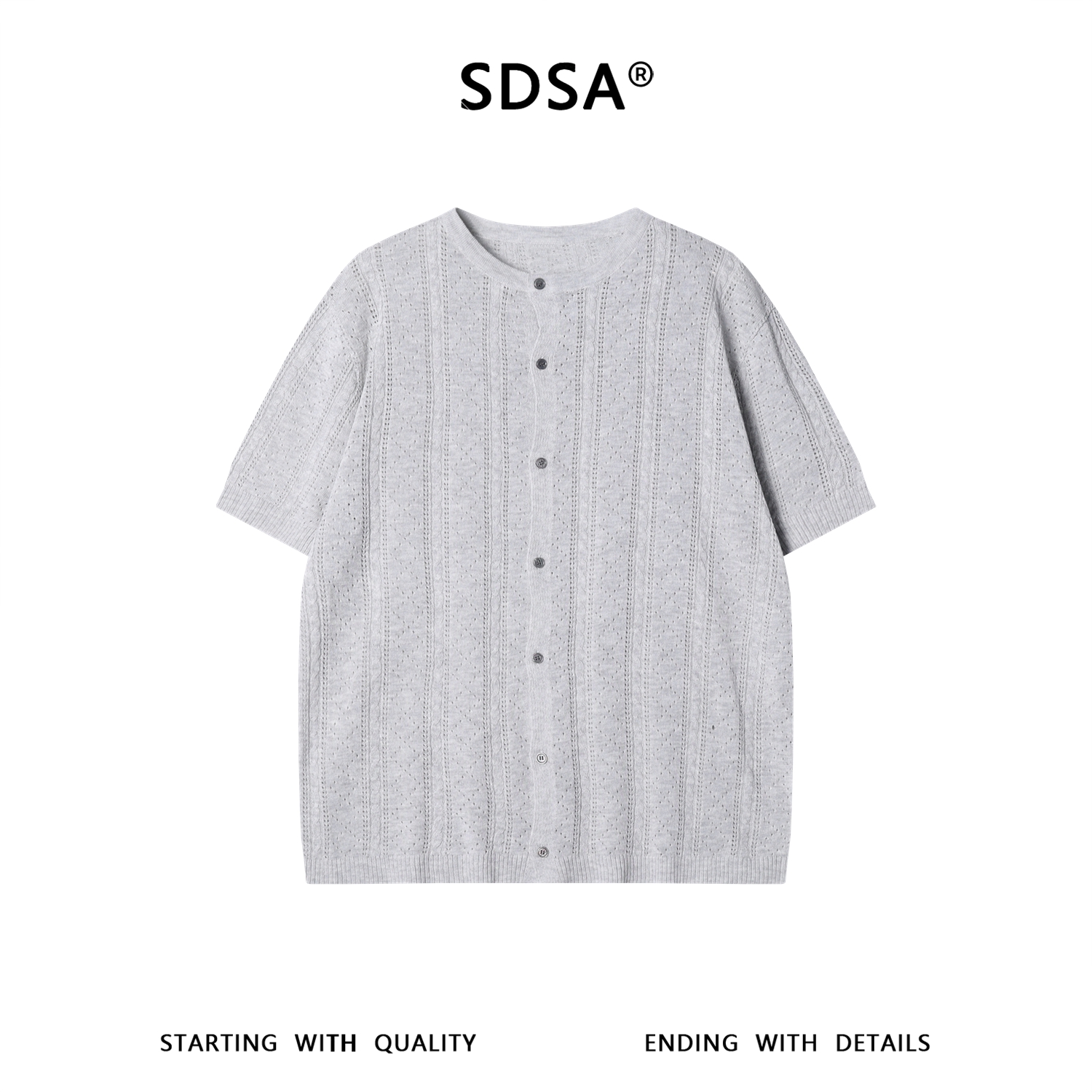 SDSA男装2026新款高贵轻奢竖条镂空提花短袖针织开衫宽松复古上衣