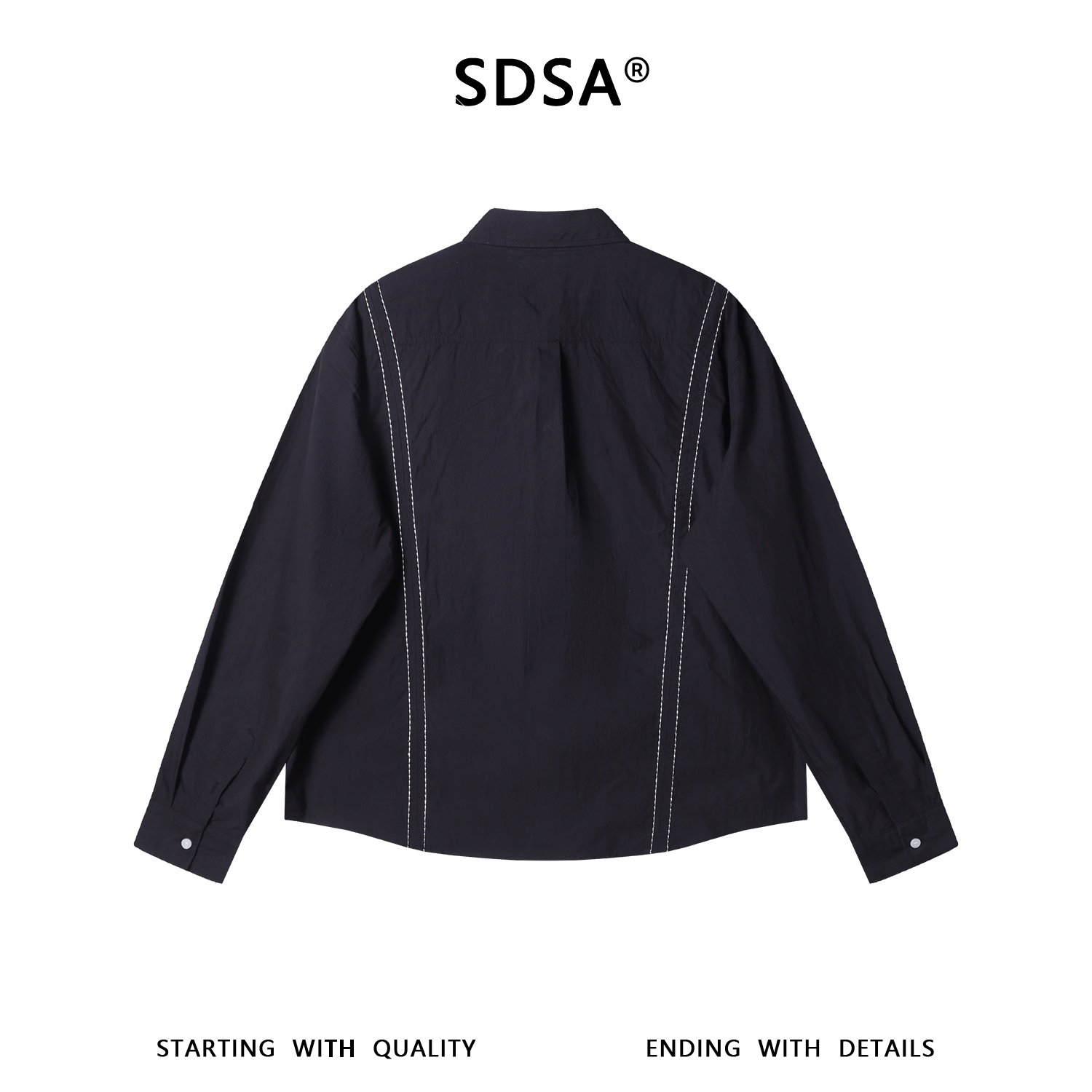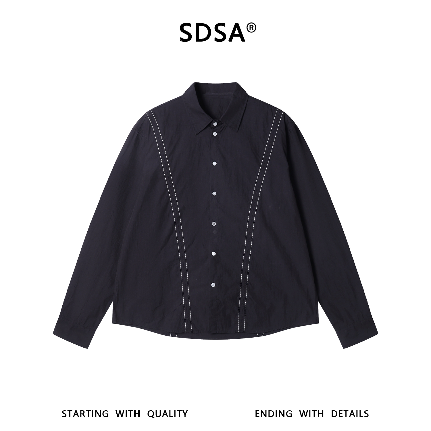 31228SDSA男士秋冬新款痞帅男装韩版简约明线翻领长袖衬衫百搭宽松衬衣