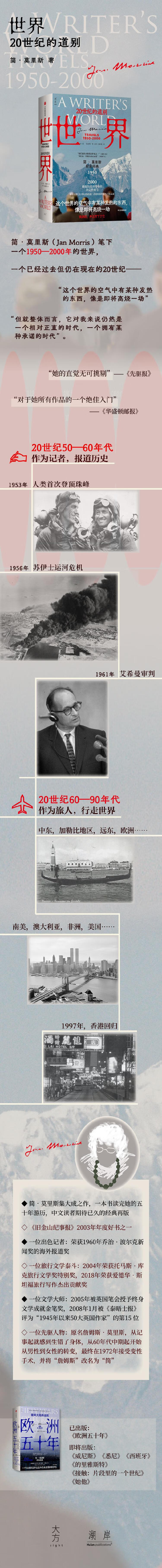 这是一部由五十年的旅行所激发的个人赞赏,这是简•莫里斯的最佳状态——既伟大又特别,异想天开又深刻。这是对于一块大陆的一幅绝伦肖像画。——《卫报》这本书不仅仅是一本旅行回忆录,更是对我们在追求远方旅行时经常忽略的大陆的一次美妙的重新发现。简•莫里斯对创造欧洲特色的相似性和多样性进行了仔细的研究。她对自己主题的了解使这本书具有最好的教育意义。——《泰晤士报》愿欧洲大陆各国的所有色彩、迷信和怪癖,愿简•莫里斯在她的作品中如此微妙地描绘的差异,得以幸存。——《星期日邮报》