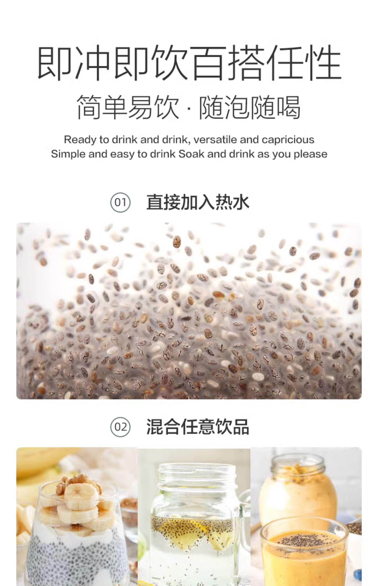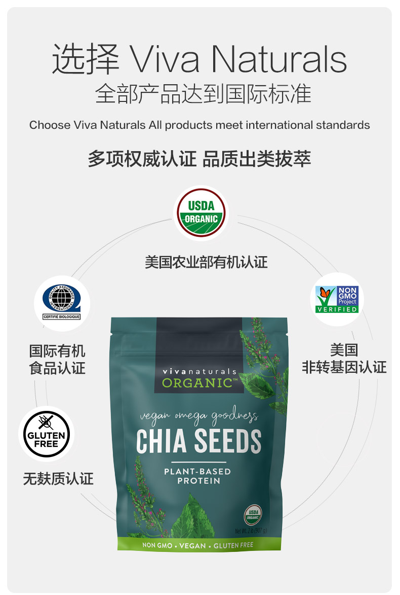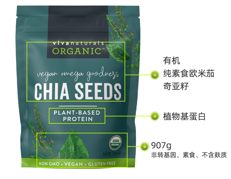 Viva进口天然墨西哥有机奇亚籽omega3免洗即食代餐饱腹冲饮907g