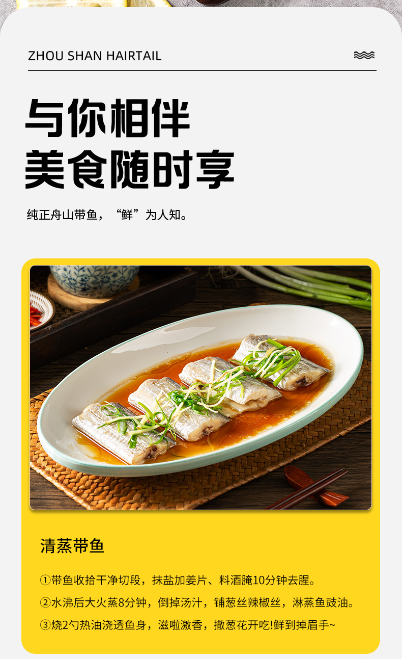 鲜到鲜得 舟山带鱼350g*5包 去头去尾切段不包冰