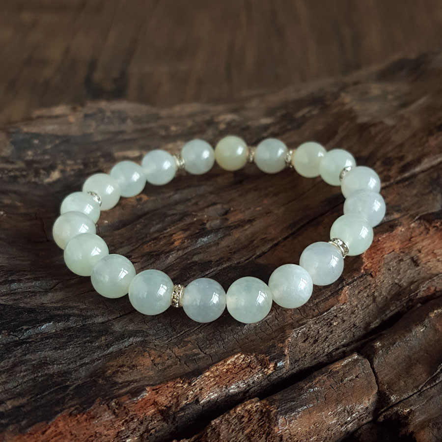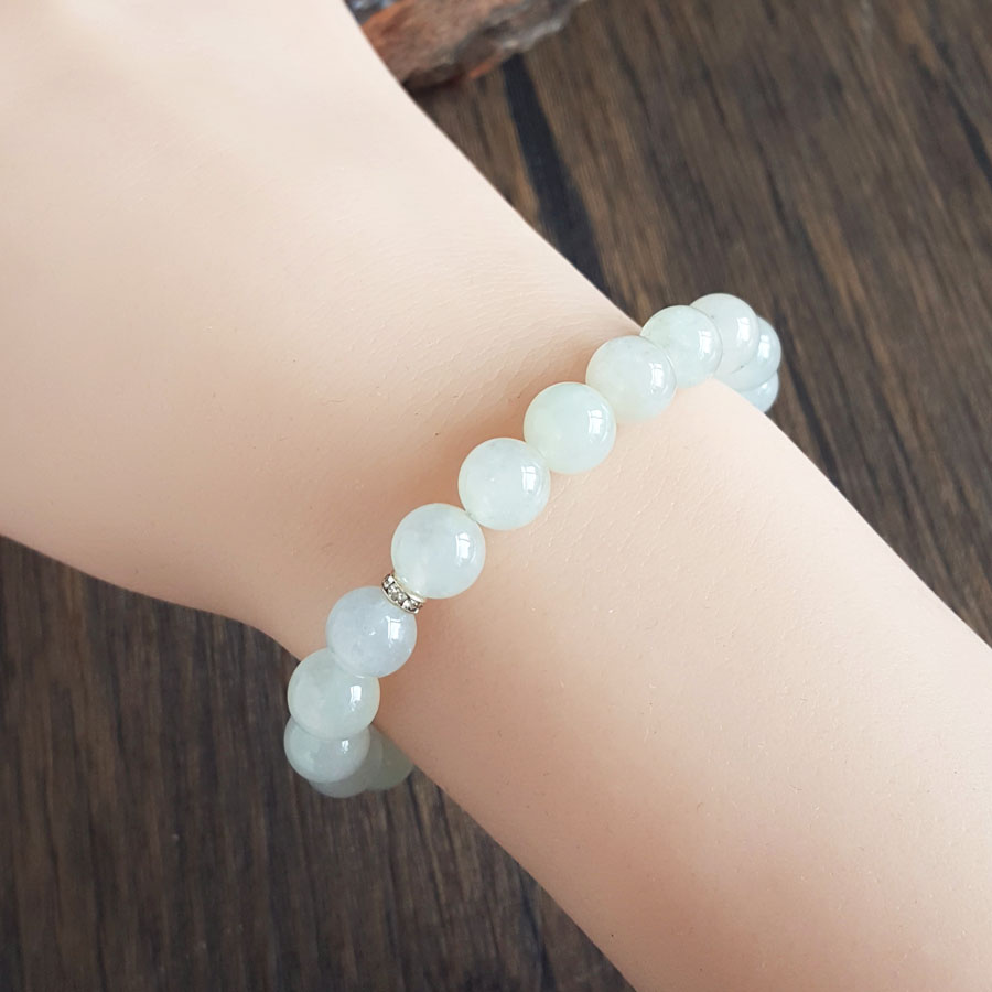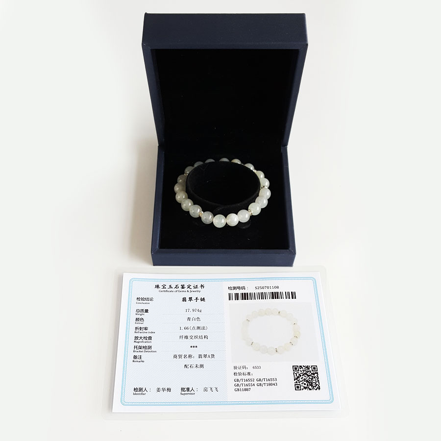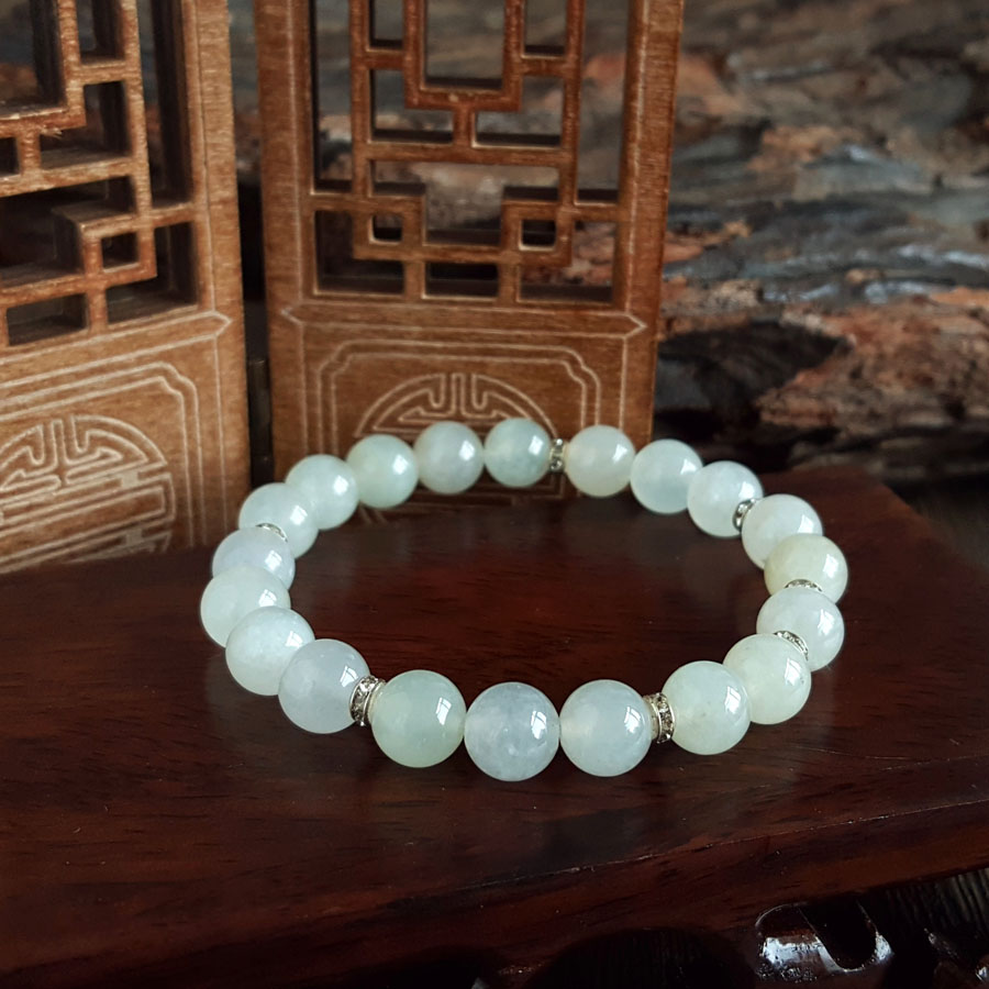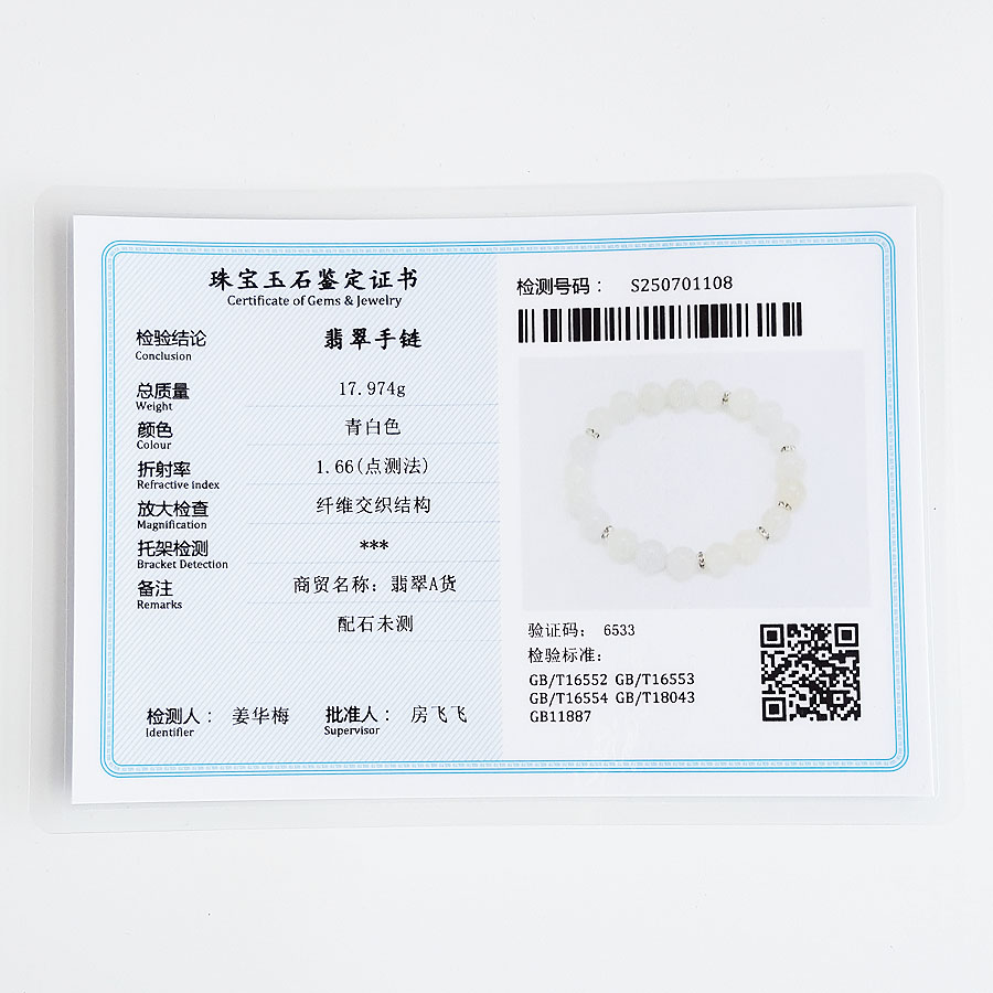 名称 | 天然细腻约8.2MM青白色糯冰种翡翠圆珠手串 |