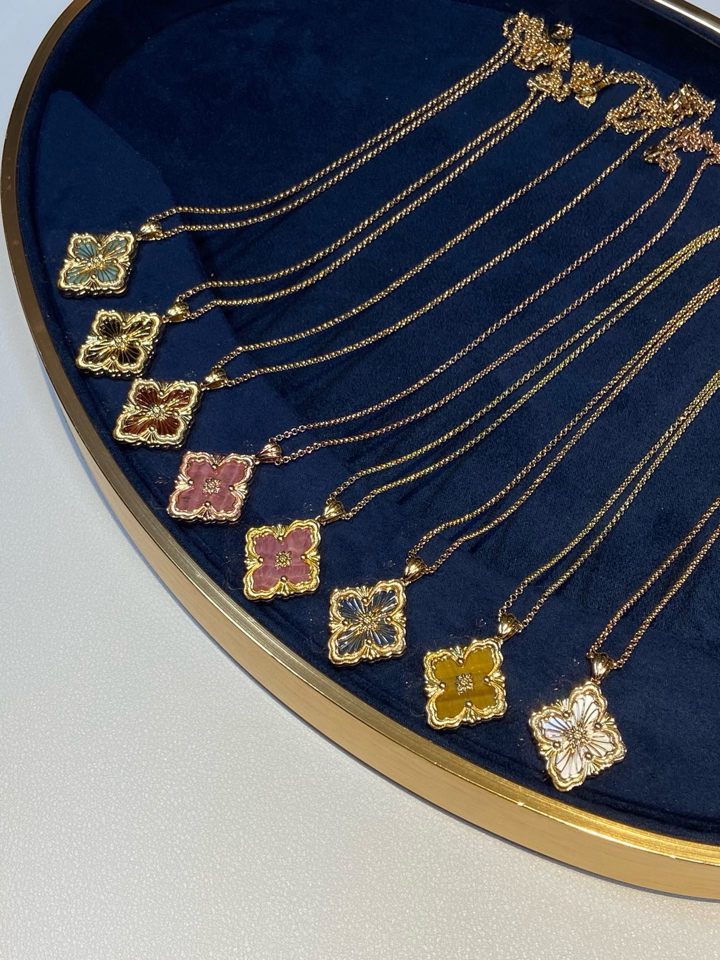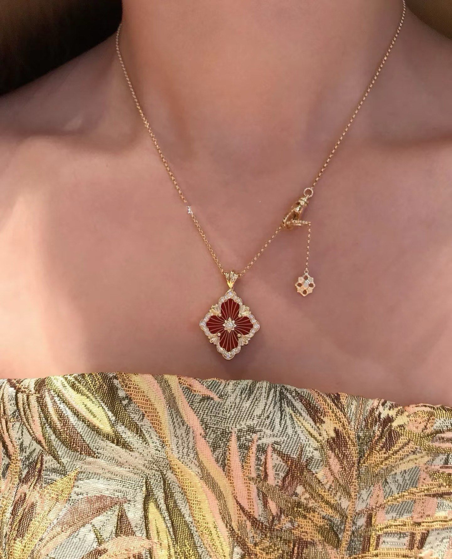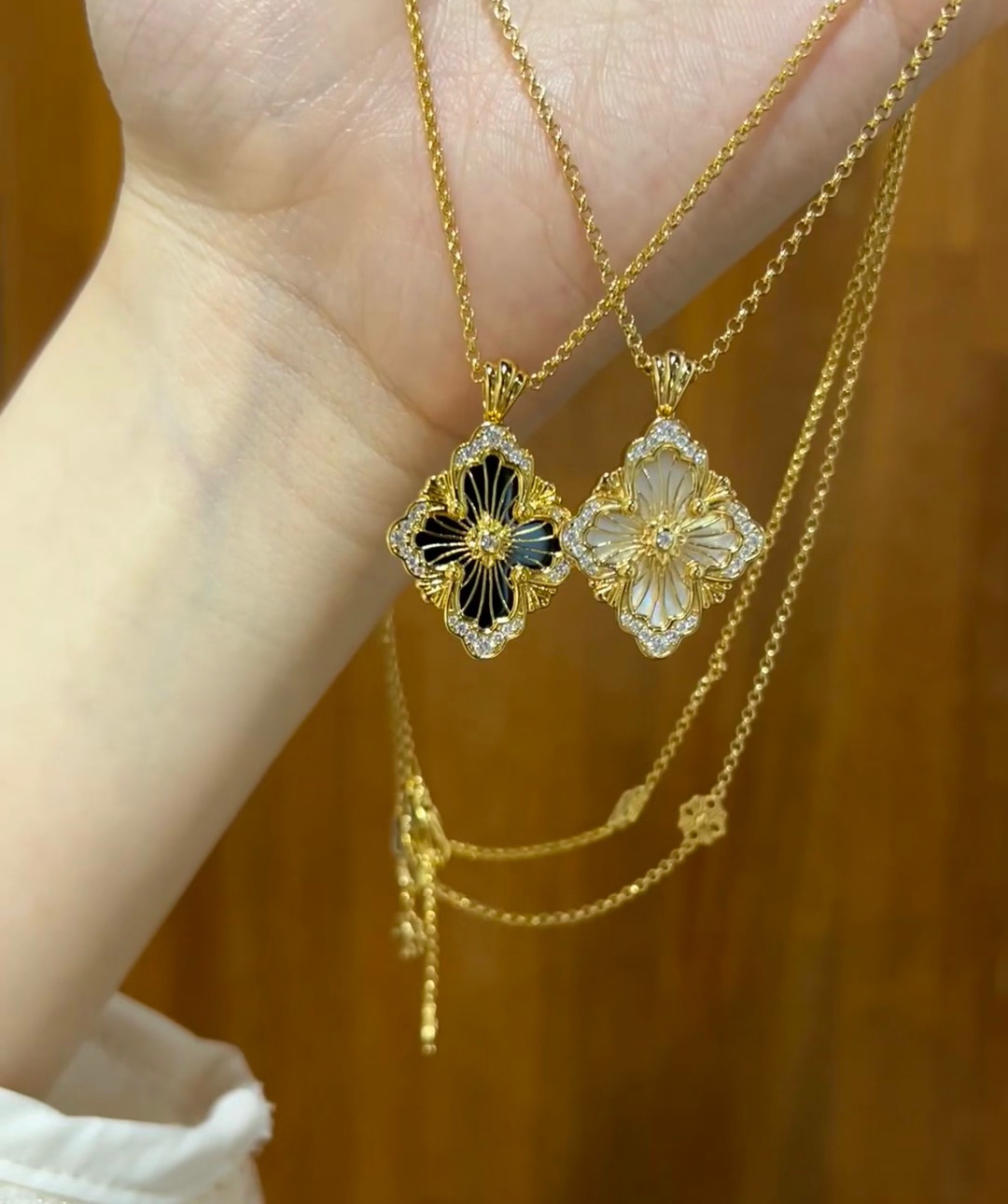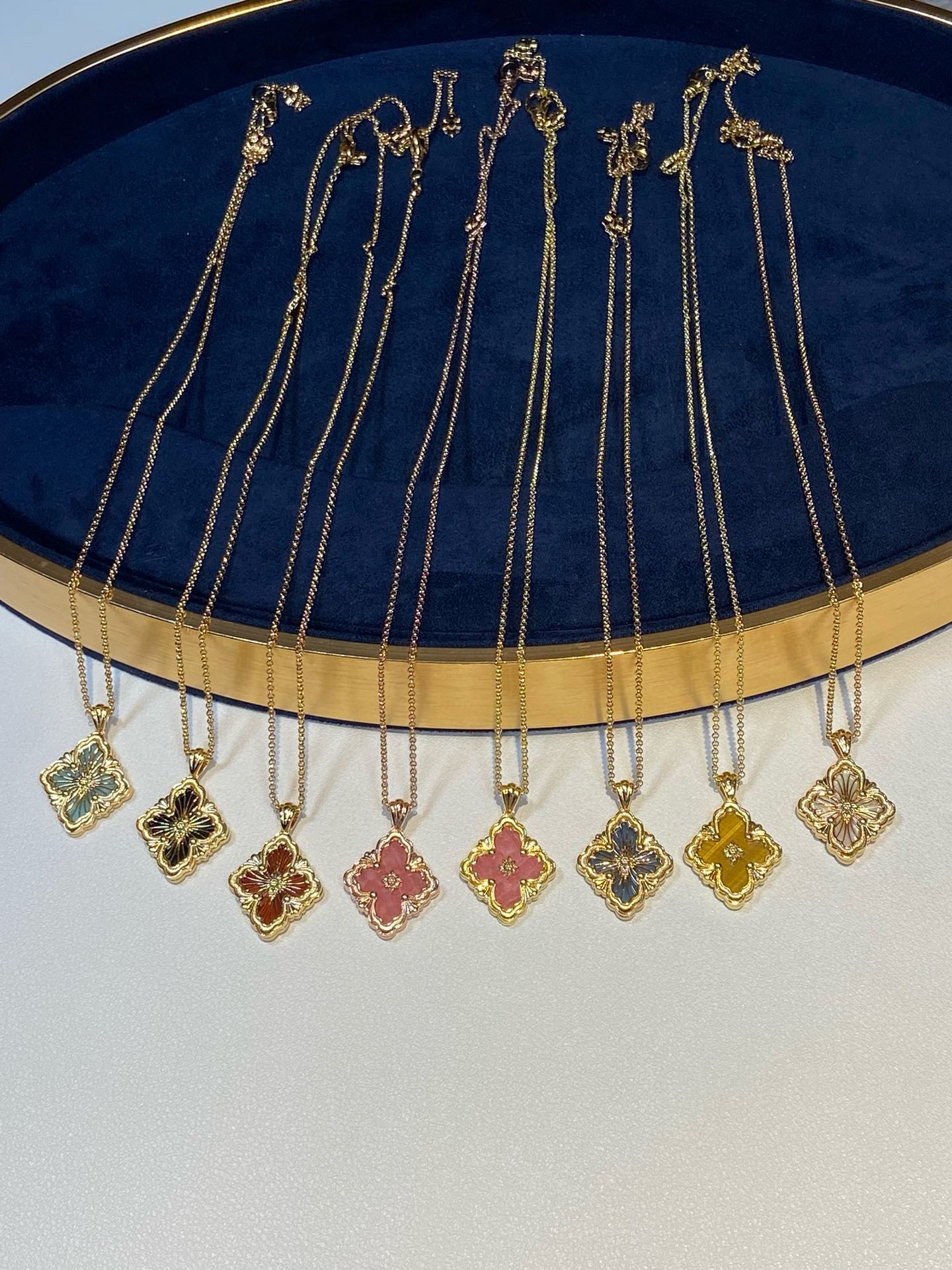 在珠宝的世界里,布契拉提项链是一道闪耀的星辰,它的光芒能够照亮整个宇宙。以其独特的纹理和精致的设计,让人们感受到一种别样的奢华与高贵。布契拉提项链的设计独特,每一处细节都充满了匠心独运。在每一款项链上,你都能看到精致的花纹、镂空的艺术、细腻的纹理,这些都是布契拉提品牌的标志。其中最著名的布契拉提项链当属“果实”系列。这些项链的设计灵感源于文艺复兴时期的植物图案,每一个“果实”都由多个层面组成,通过工匠的巧手一层层叠加,营造出一种立体感十足的艺术效果