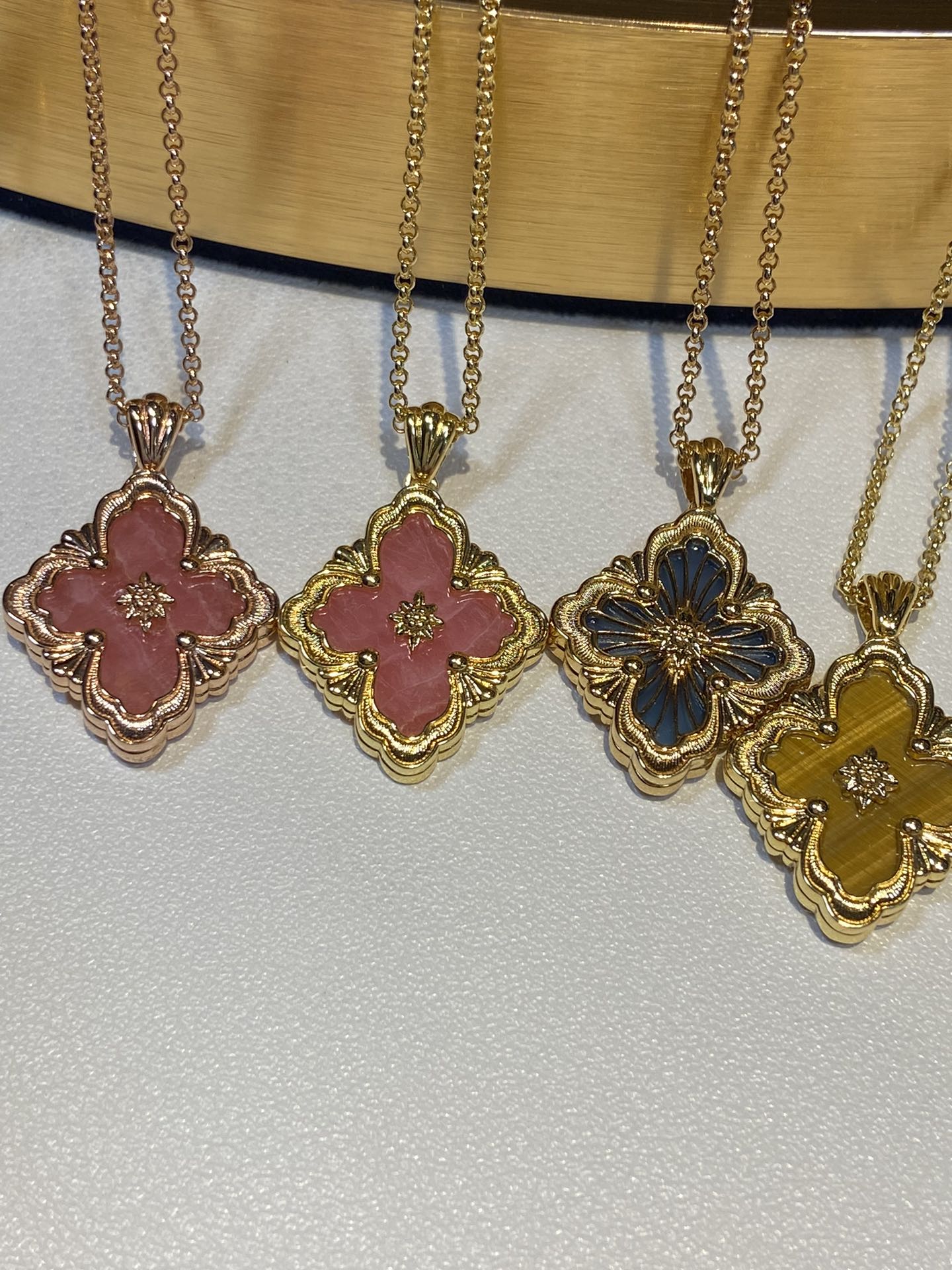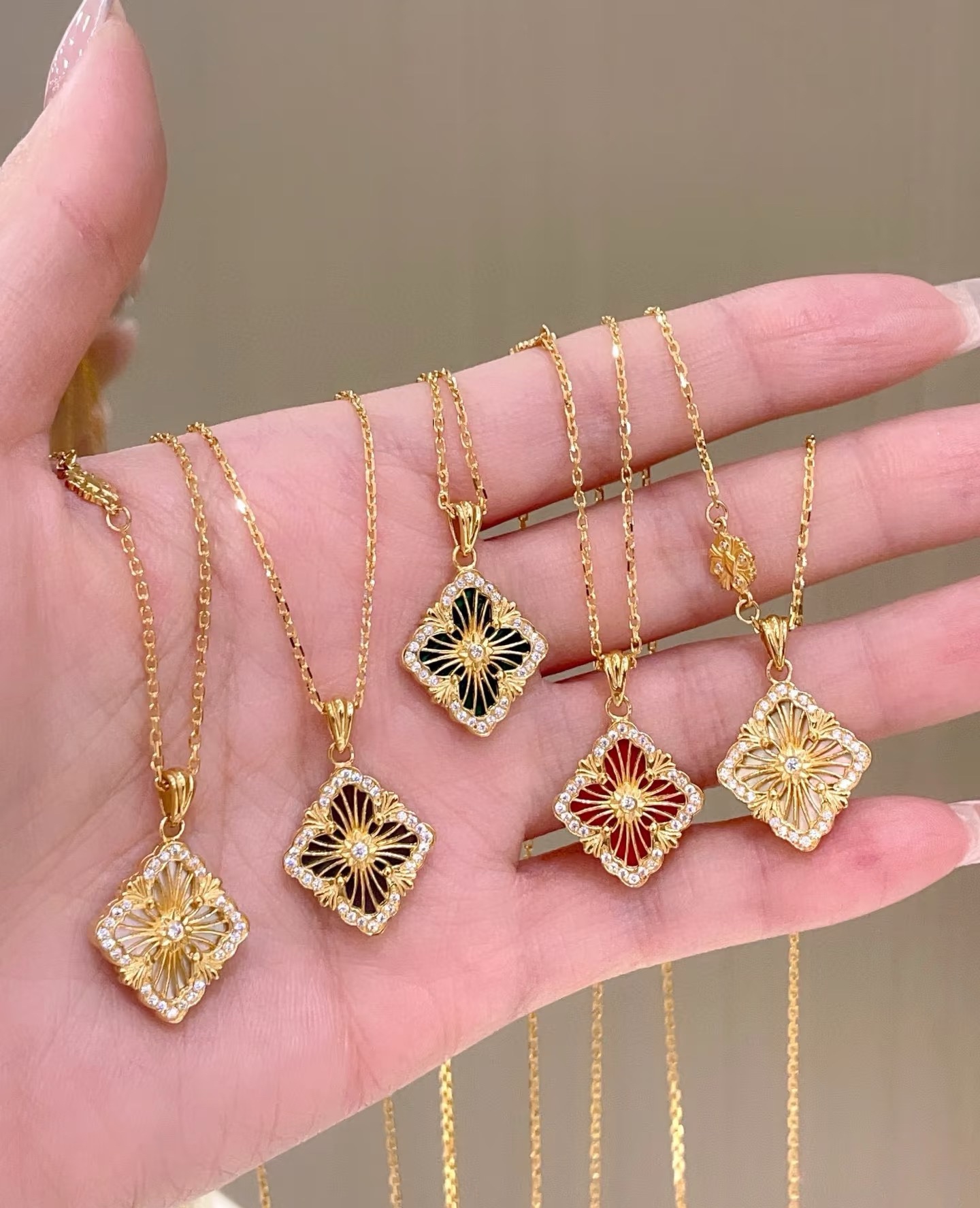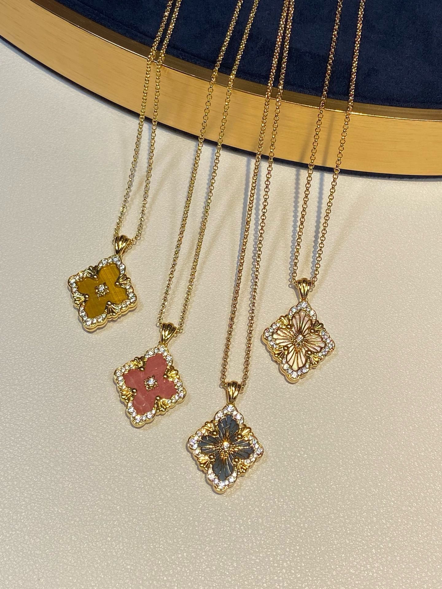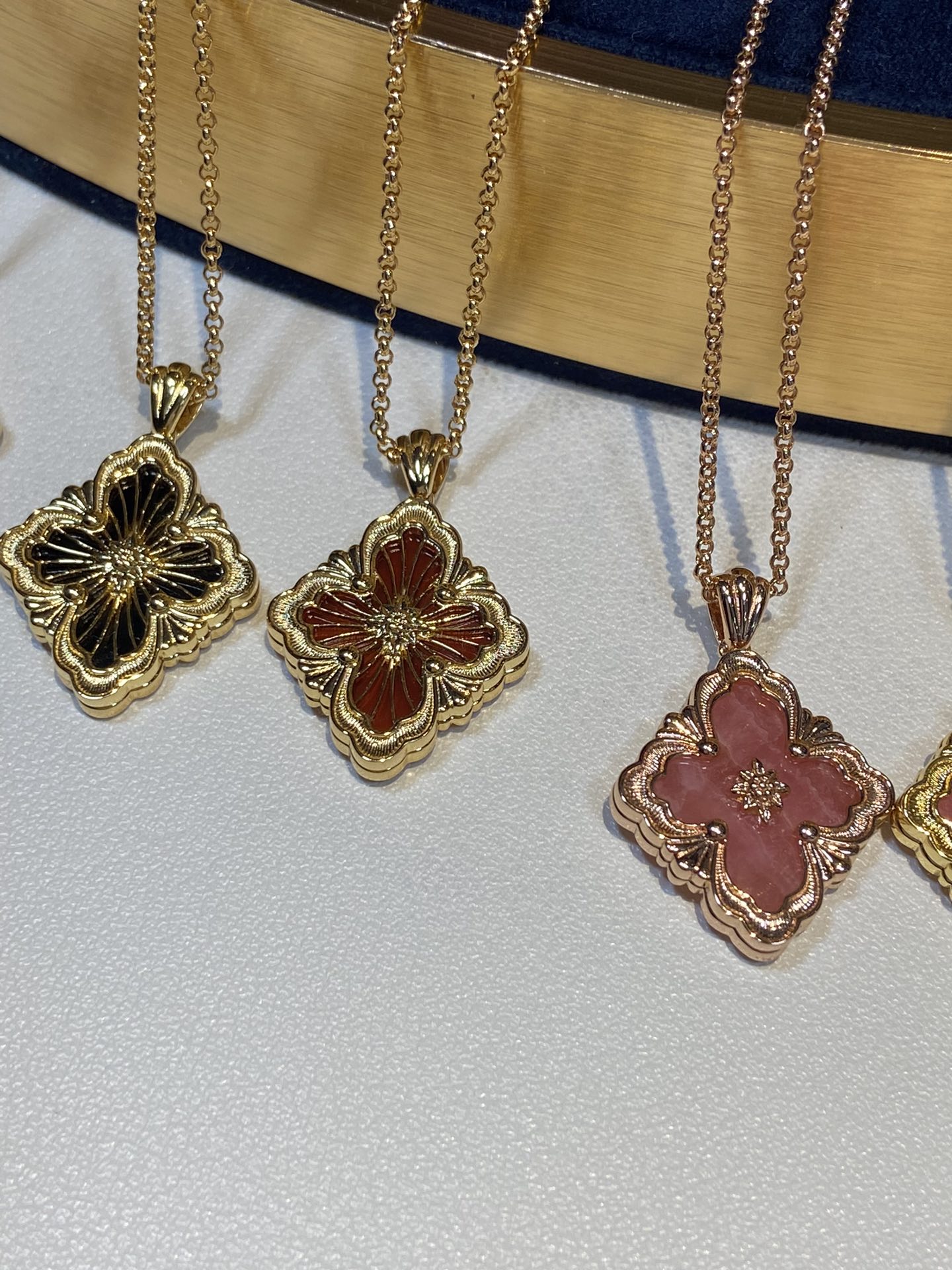 在珠宝的世界里,布契拉提项链是一道闪耀的星辰,它的光芒能够照亮整个宇宙。以其独特的纹理和精致的设计,让人们感受到一种别样的奢华与高贵。布契拉提项链的设计独特,每一处细节都充满了匠心独运。在每一款项链上,你都能看到精致的花纹、镂空的艺术、细腻的纹理,这些都是布契拉提品牌的标志。其中最著名的布契拉提项链当属“果实”系列。这些项链的设计灵感源于文艺复兴时期的植物图案,每一个“果实”都由多个层面组成,通过工匠的巧手一层层叠加,营造出一种立体感十足的艺术效果