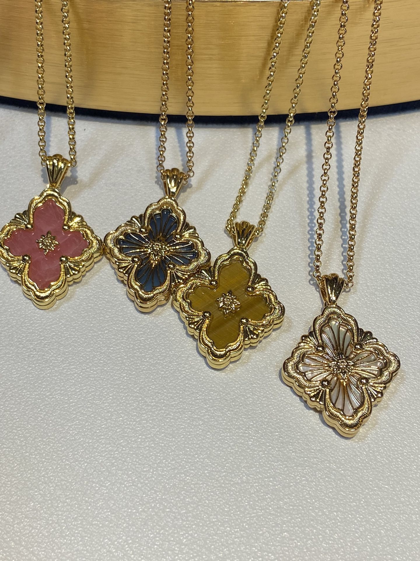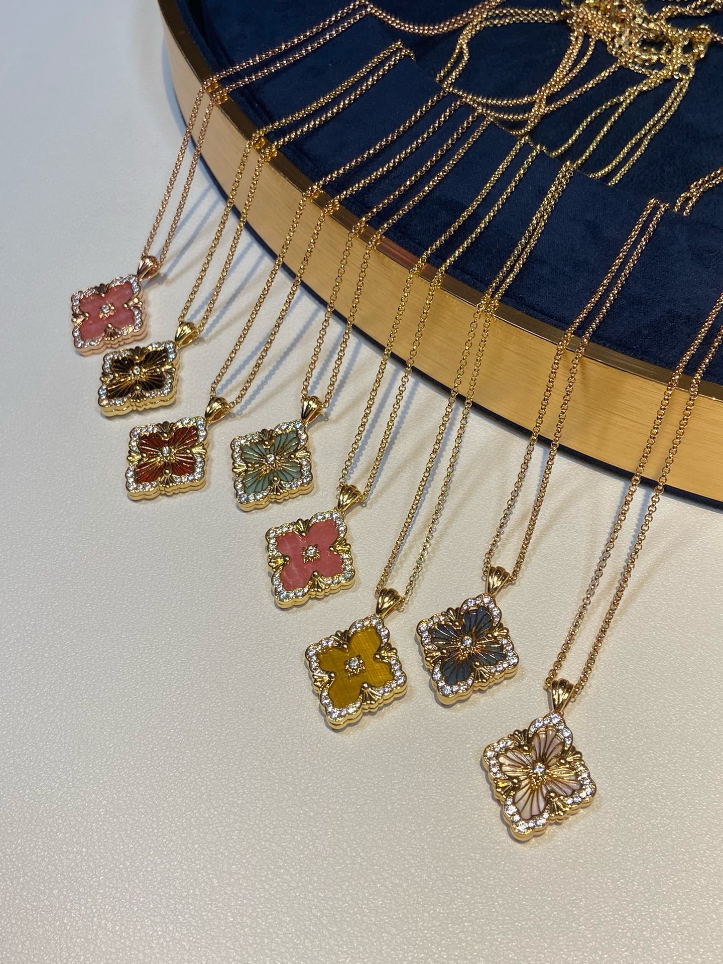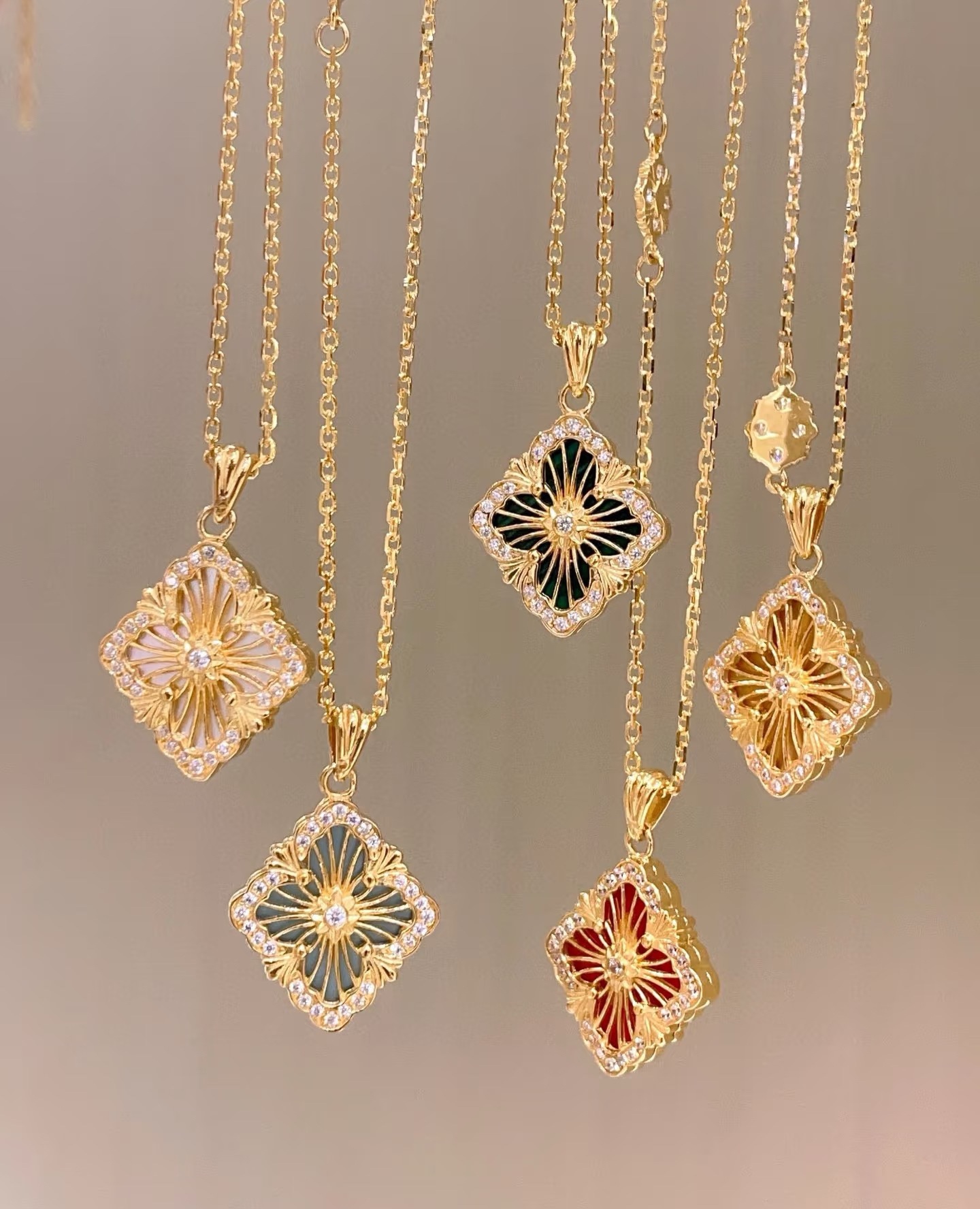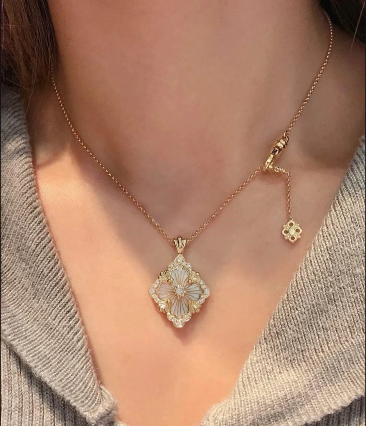 在珠宝的世界里,布契拉提项链是一道闪耀的星辰,它的光芒能够照亮整个宇宙。以其独特的纹理和精致的设计,让人们感受到一种别样的奢华与高贵。布契拉提项链的设计独特,每一处细节都充满了匠心独运。在每一款项链上,你都能看到精致的花纹、镂空的艺术、细腻的纹理,这些都是布契拉提品牌的标志。其中最著名的布契拉提项链当属“果实”系列。这些项链的设计灵感源于文艺复兴时期的植物图案,每一个“果实”都由多个层面组成,通过工匠的巧手一层层叠加,营造出一种立体感十足的艺术效果