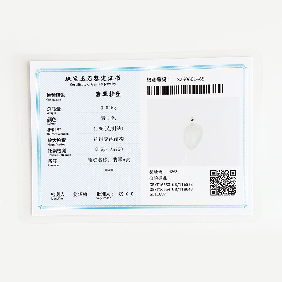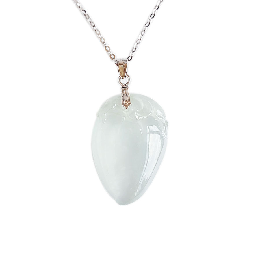 【天然正品】A货翡翠AU750白金镶天然细腻福瓜造型木那雪花棉冰种翡翠吊坠项链30.2*15.4*5.0MM(皆取最大值)女士现售价:3880!310325AH17