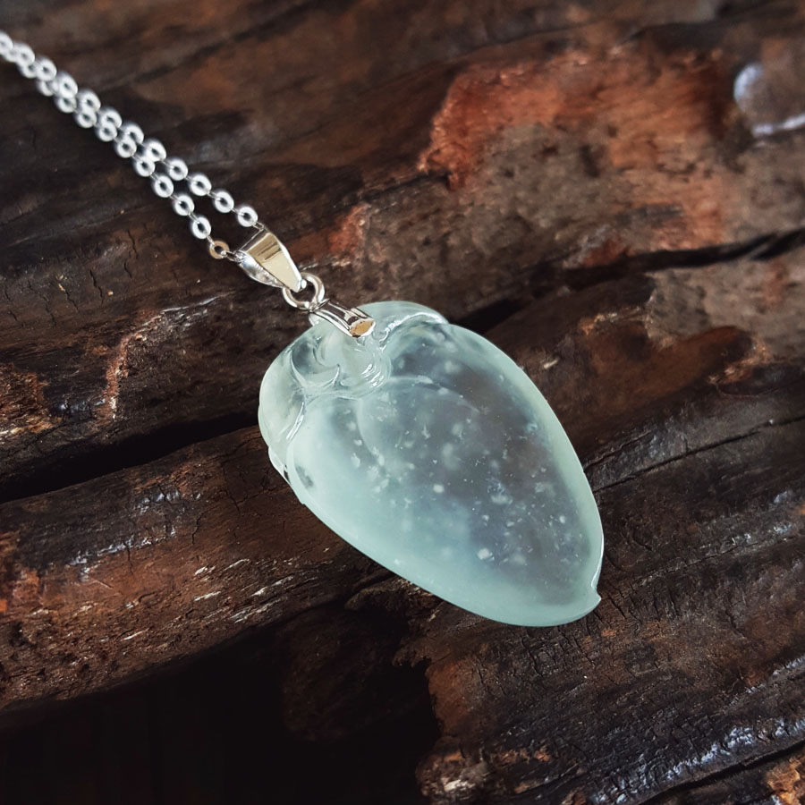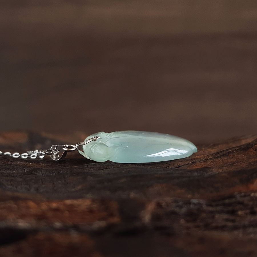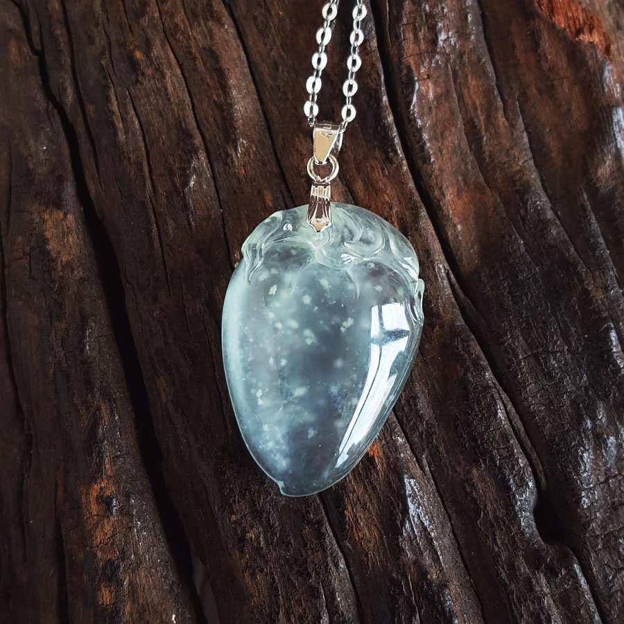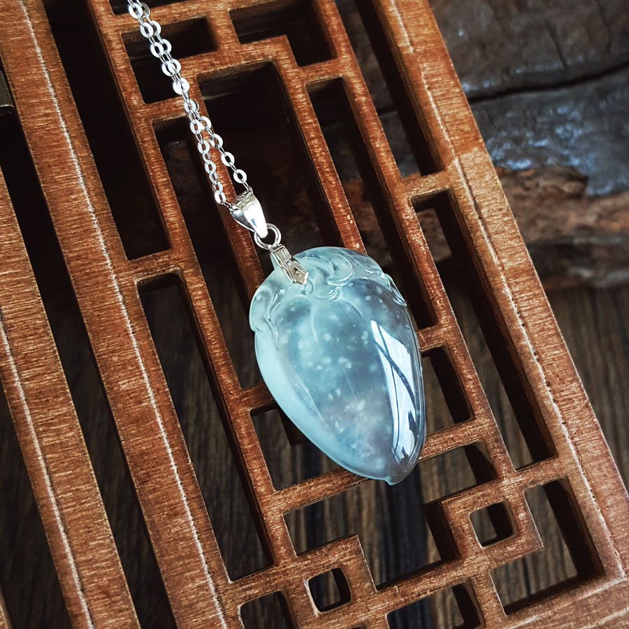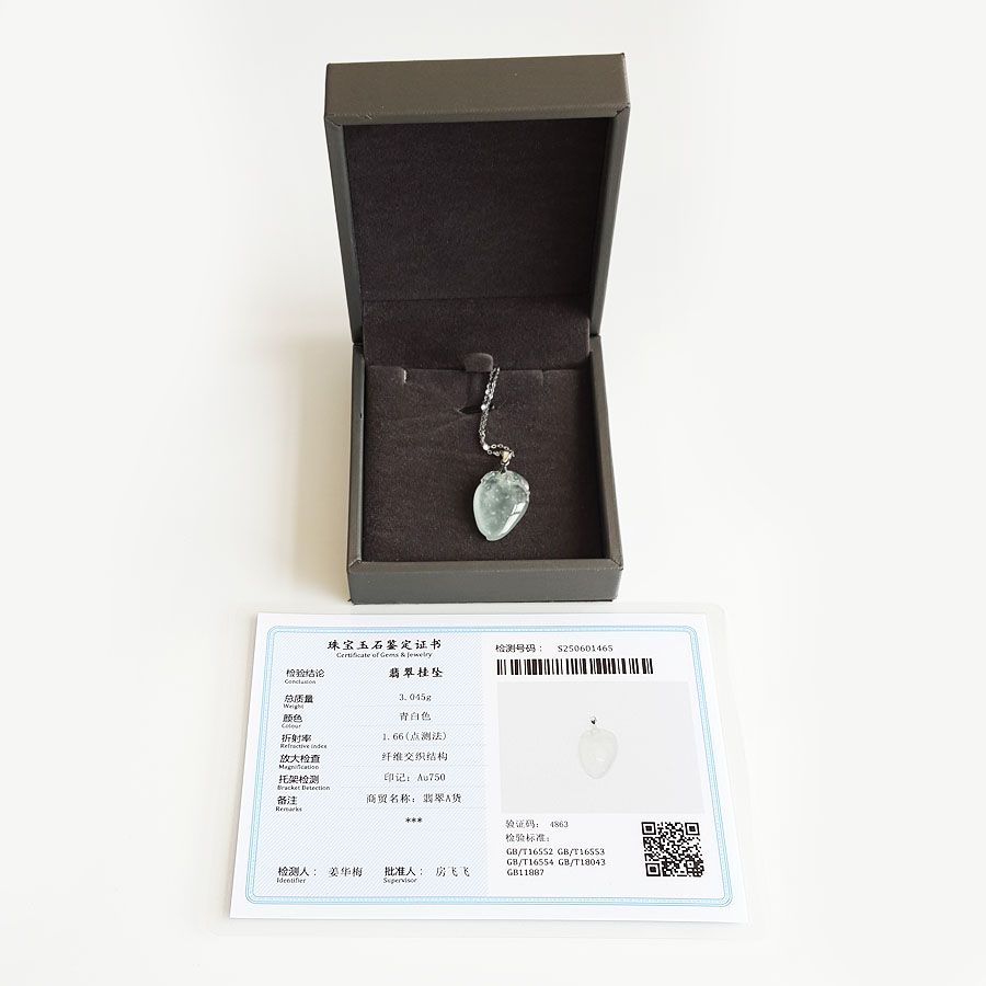 名称 | AU750白金镶天然细腻福瓜造型木那雪花棉冰种翡翠吊坠项链 |