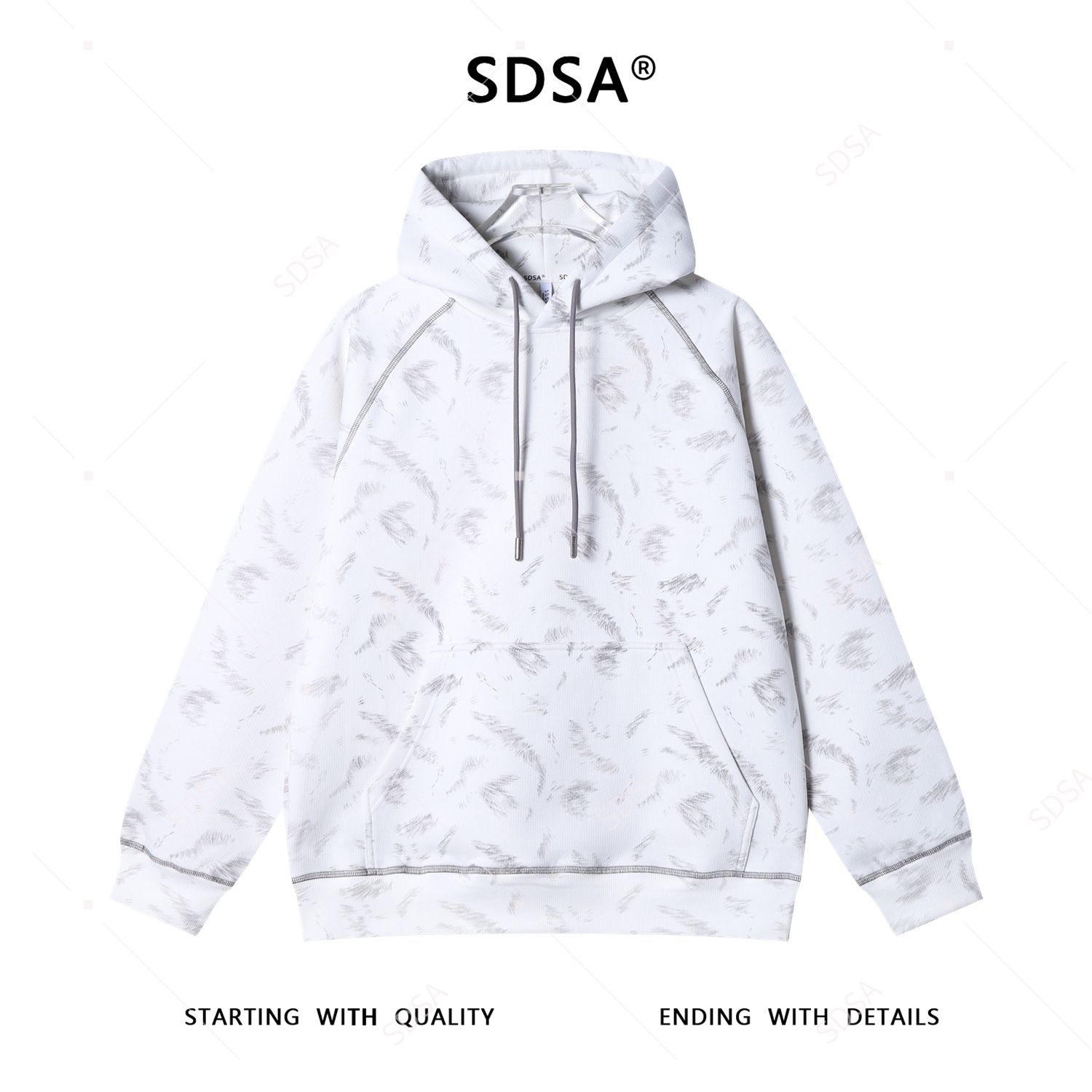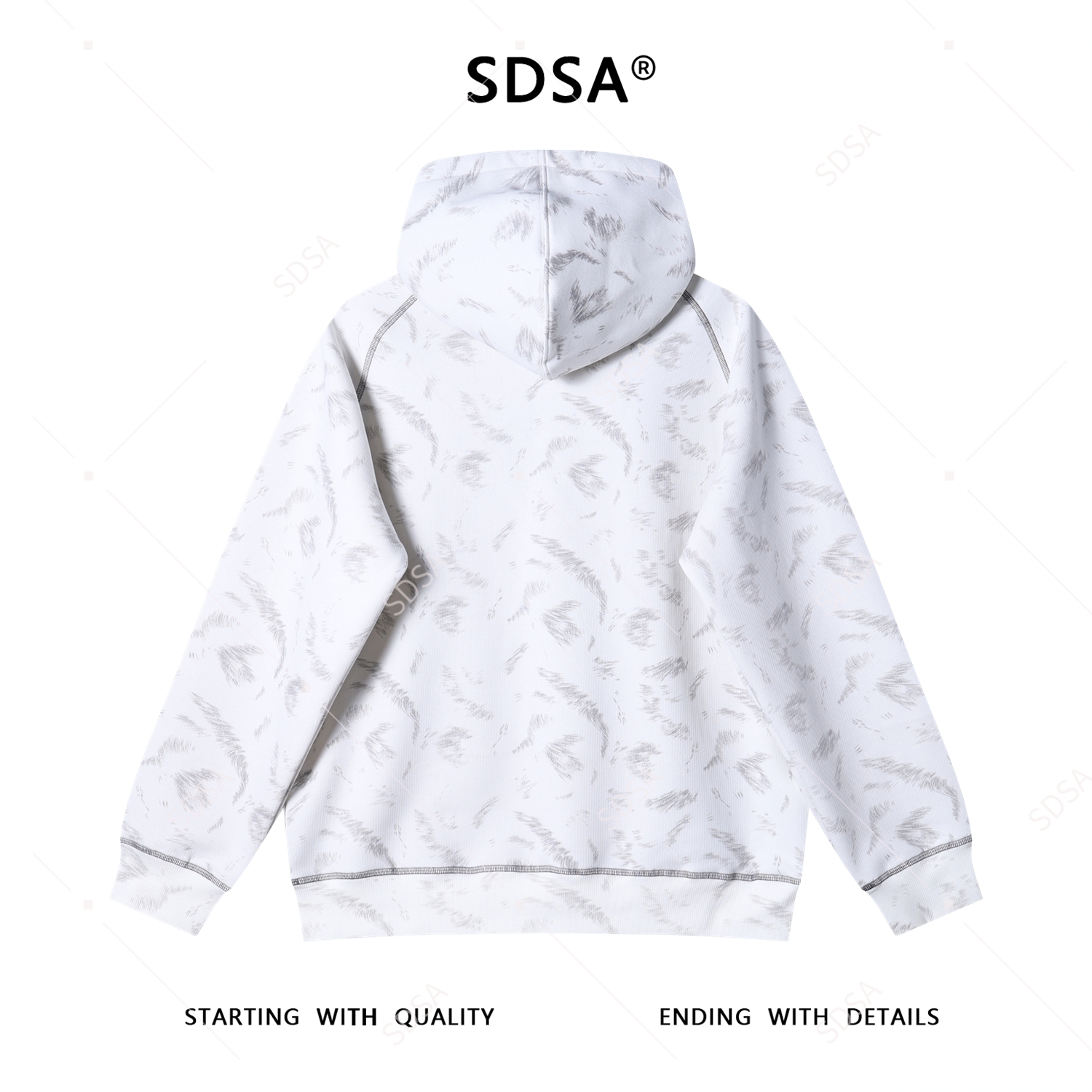 WY207冬季重磅新款黑白泼墨撕裂渲染印花圆领宽松长袖套头卫衣情侣款