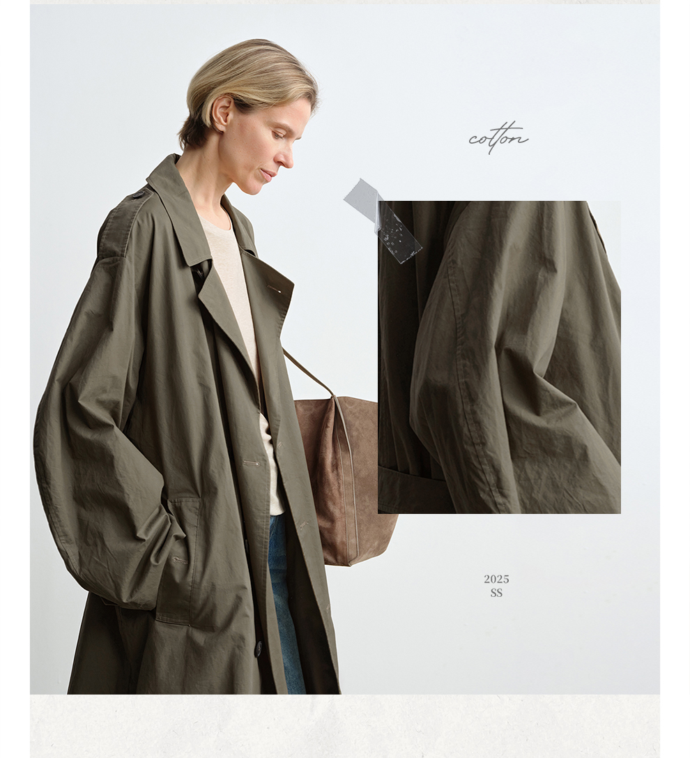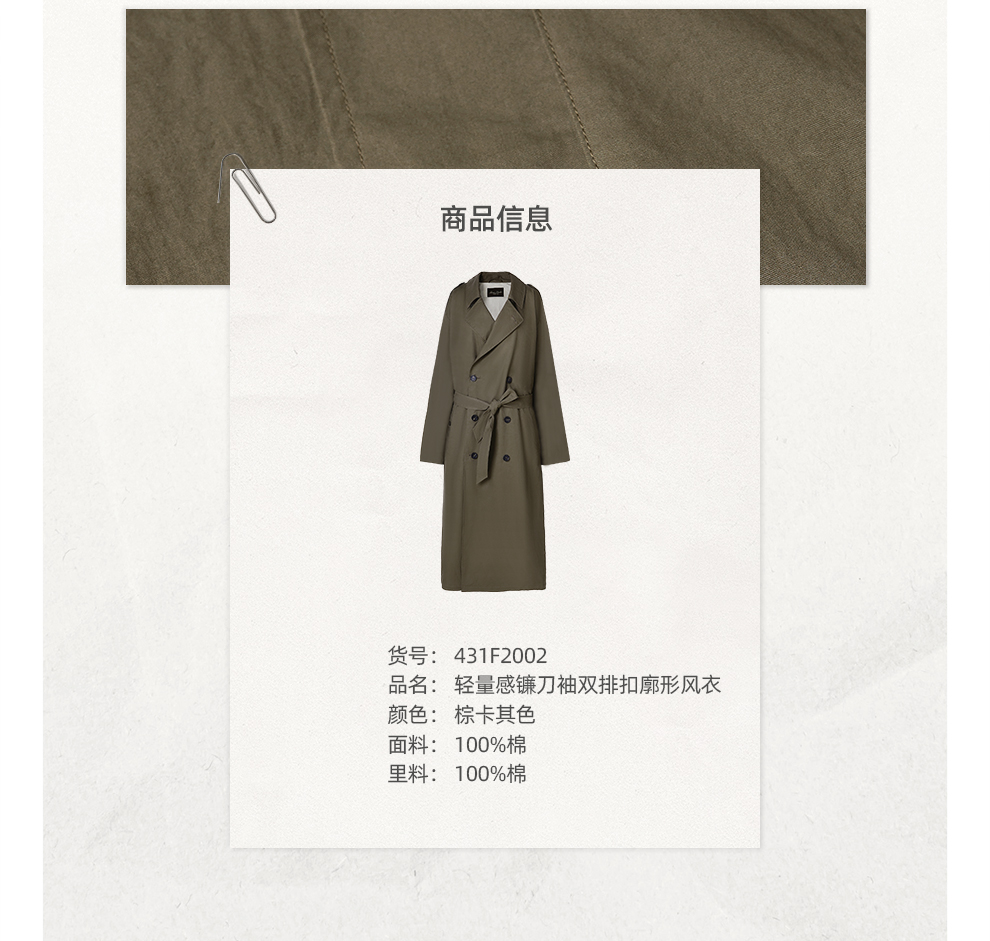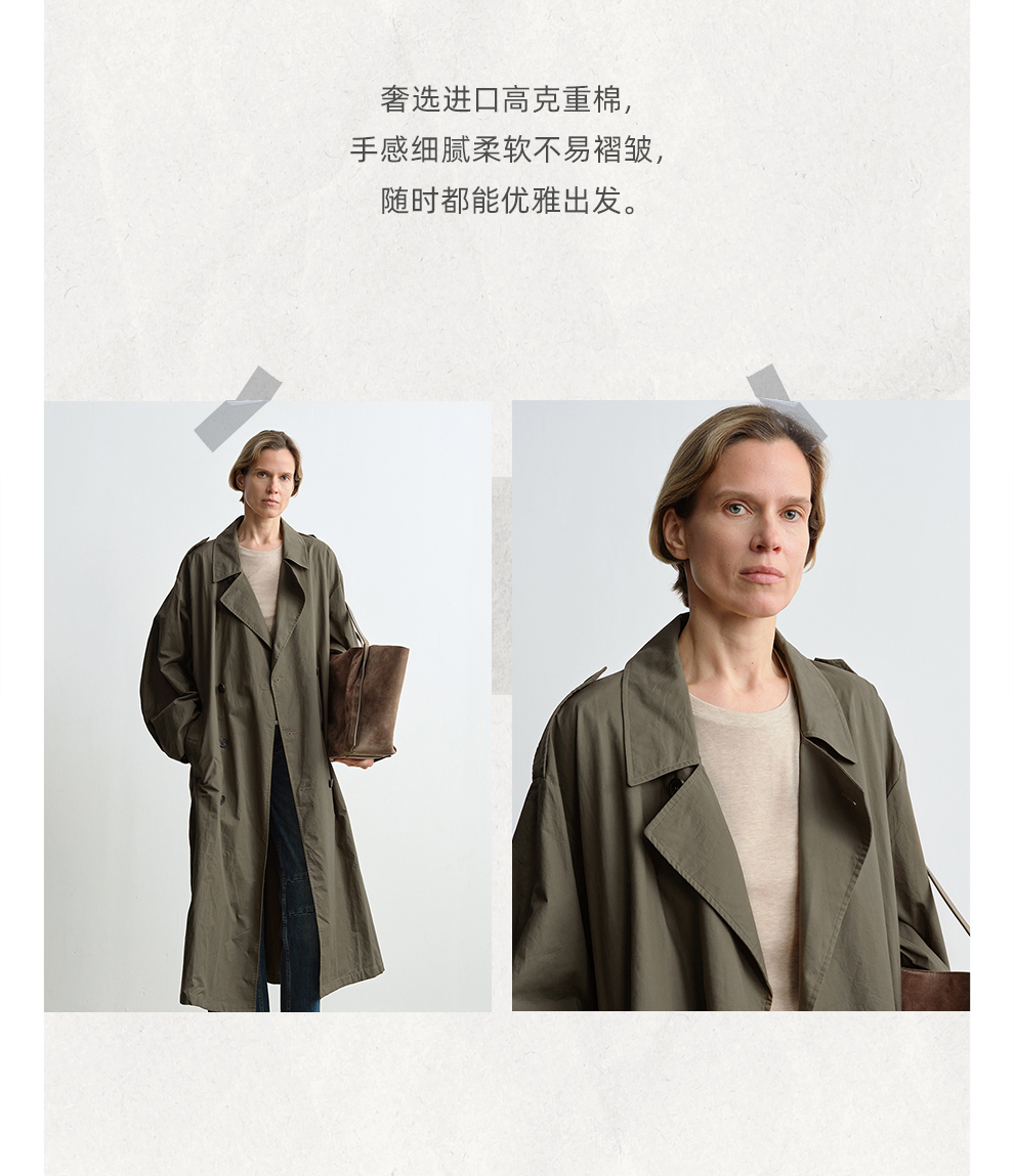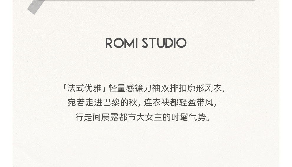 ROMI STUDIO“法式优雅”100棉轻量感镰刀袖双排扣廓形风衣431F2002