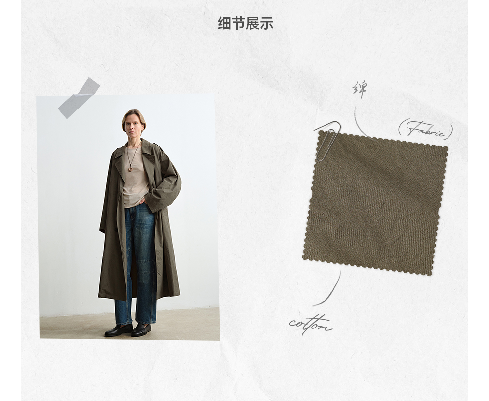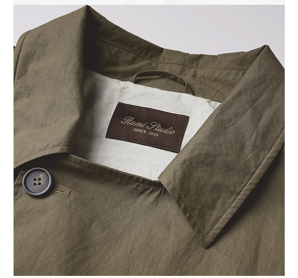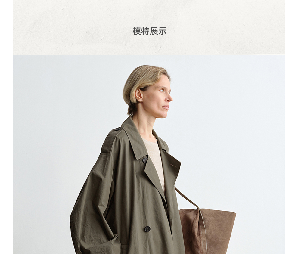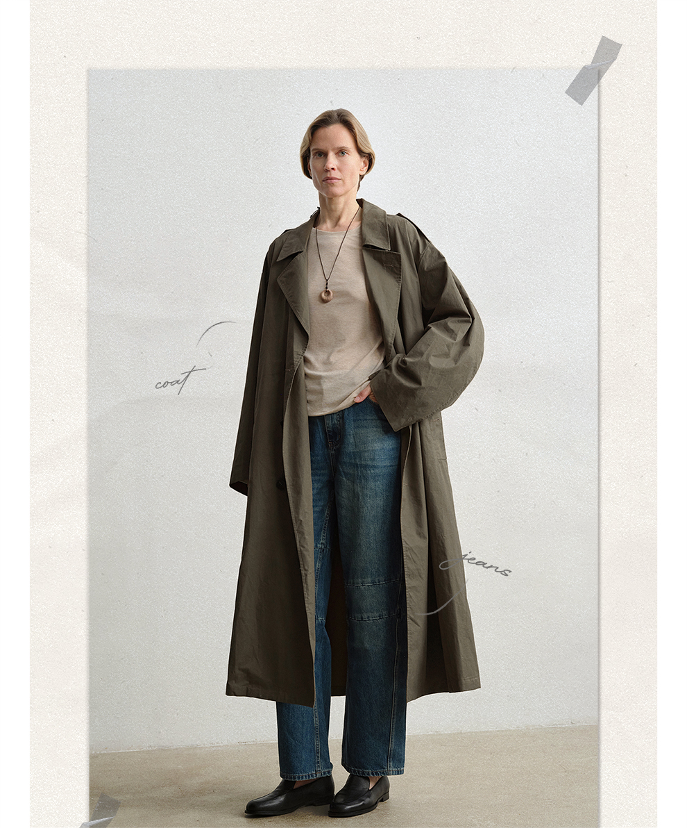 ROMI STUDIO“法式优雅”100棉轻量感镰刀袖双排扣廓形风衣431F2002