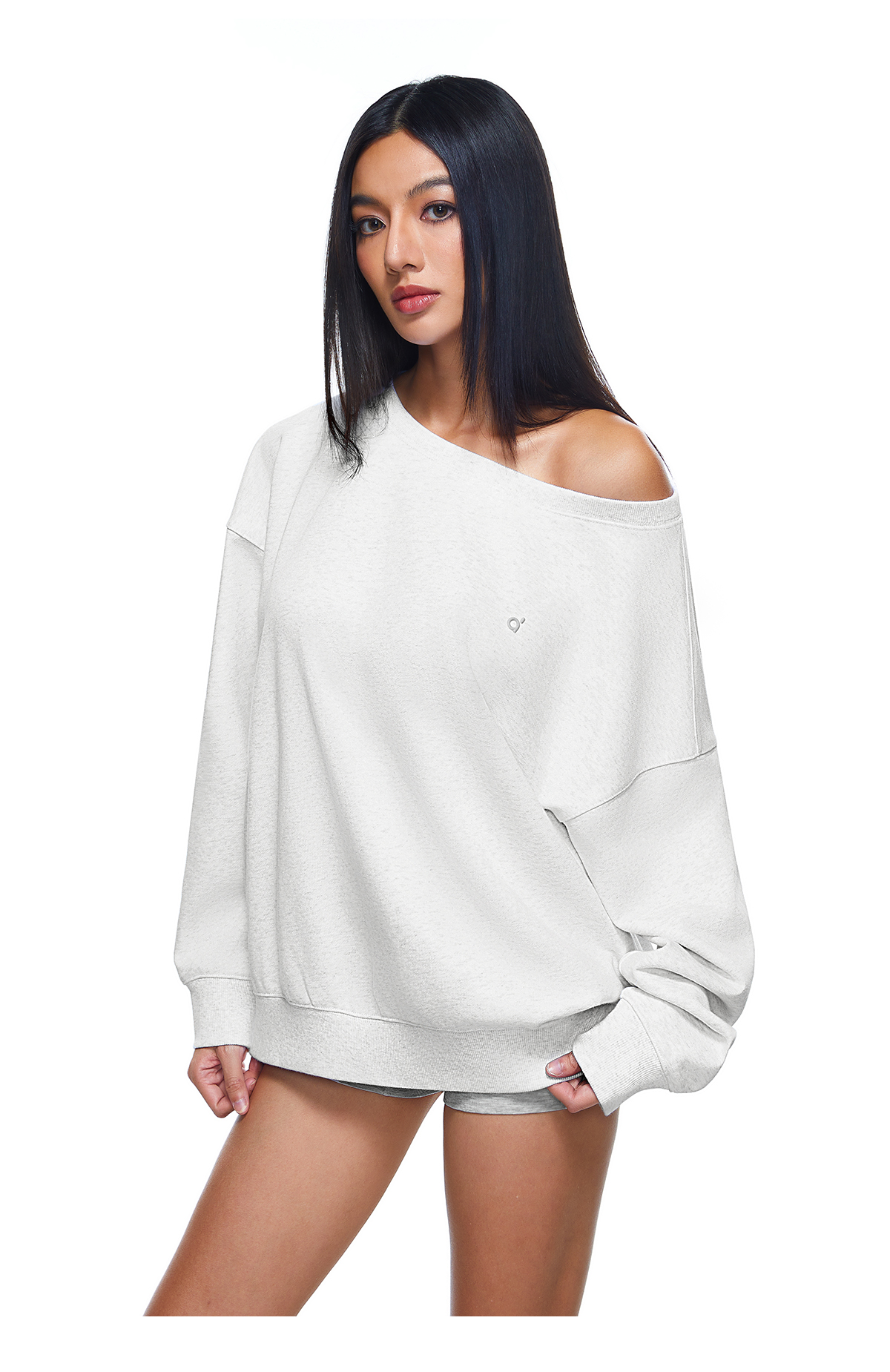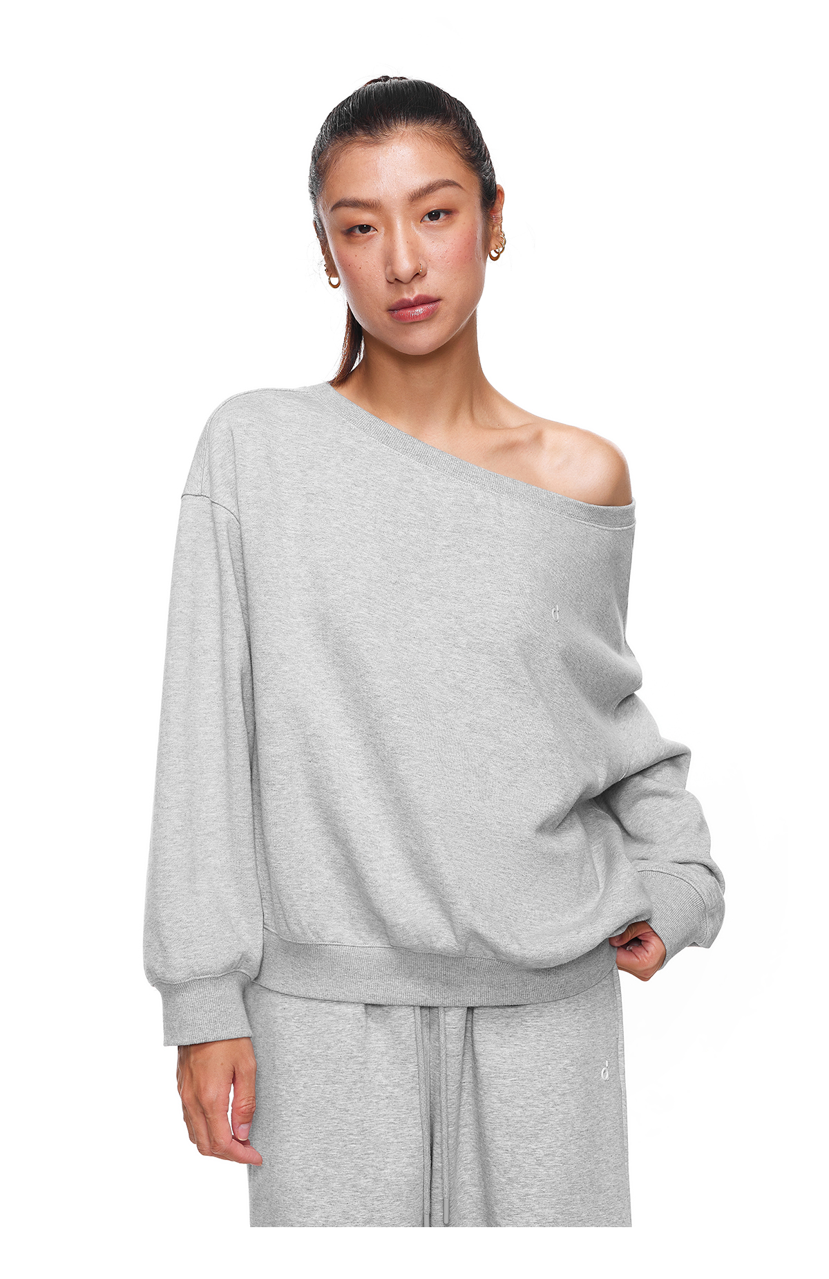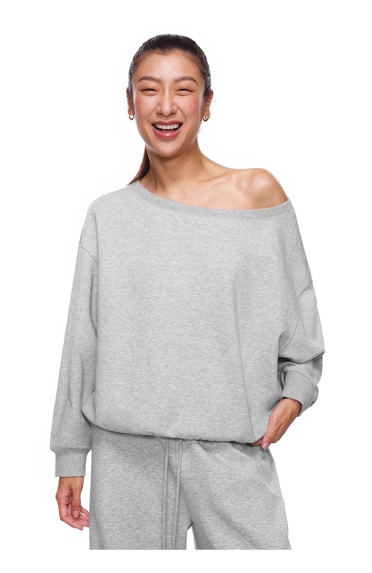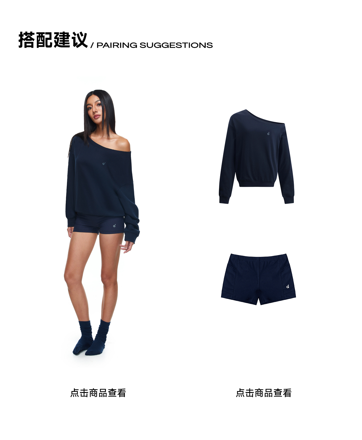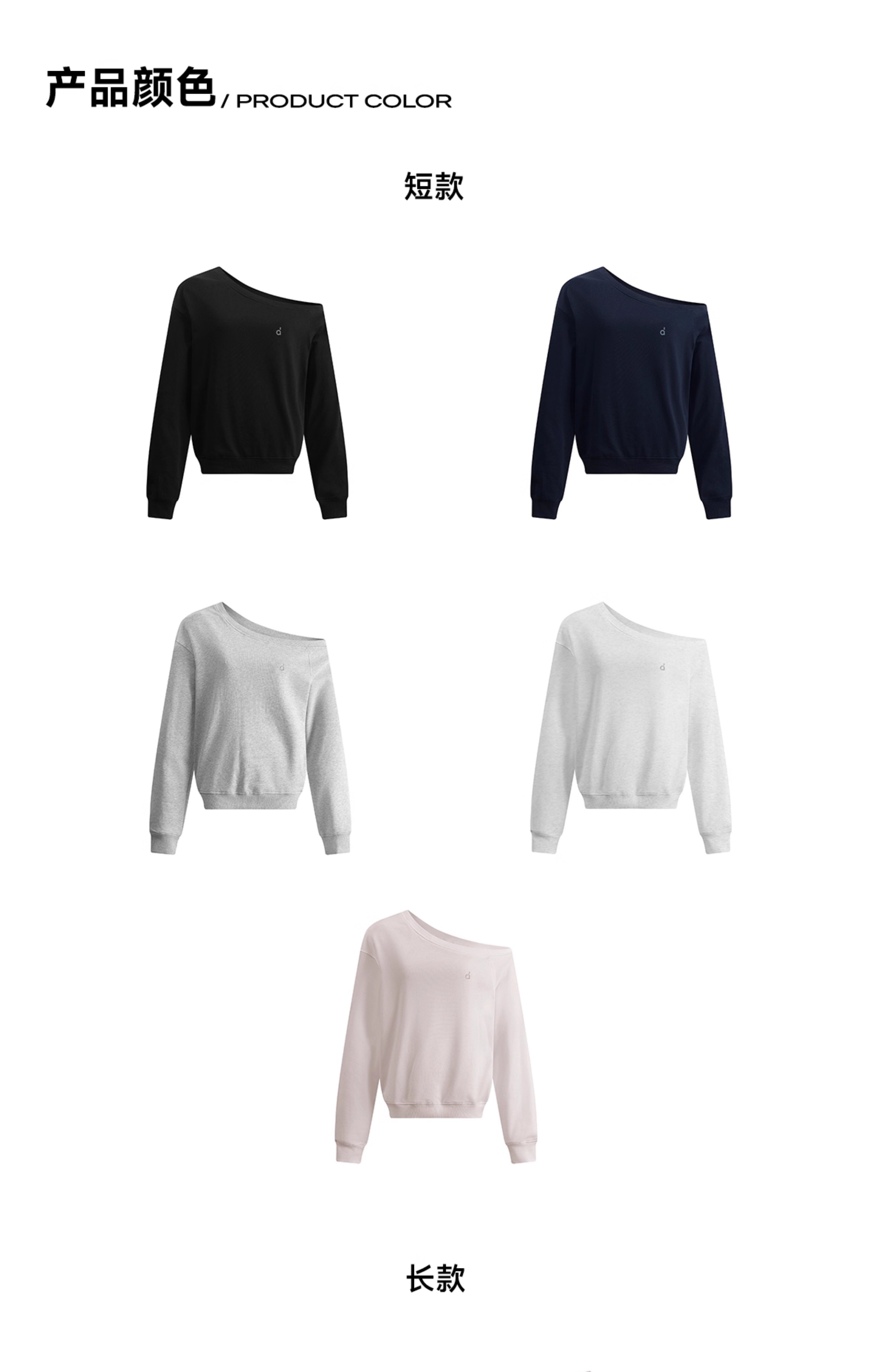 FDR旗舰店 蓄热保暖套头斜肩卫衣女秋季运动显瘦一字肩长袖上衣