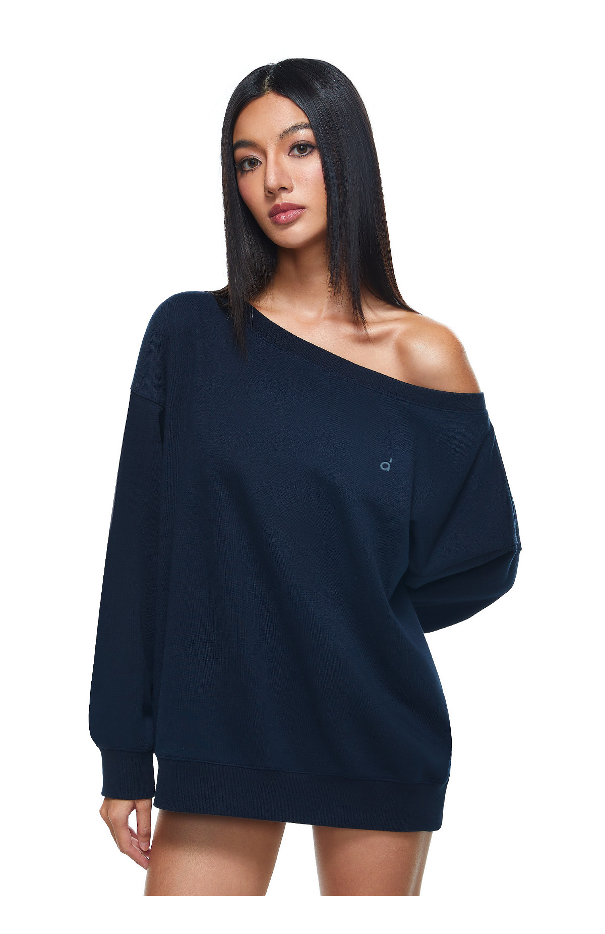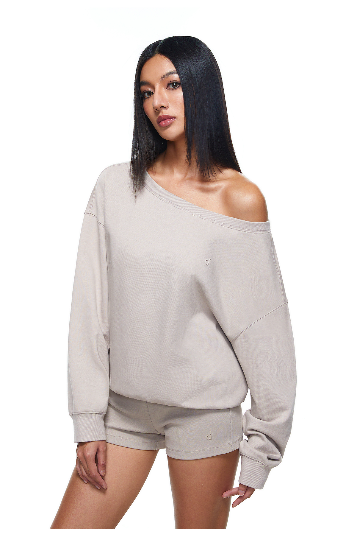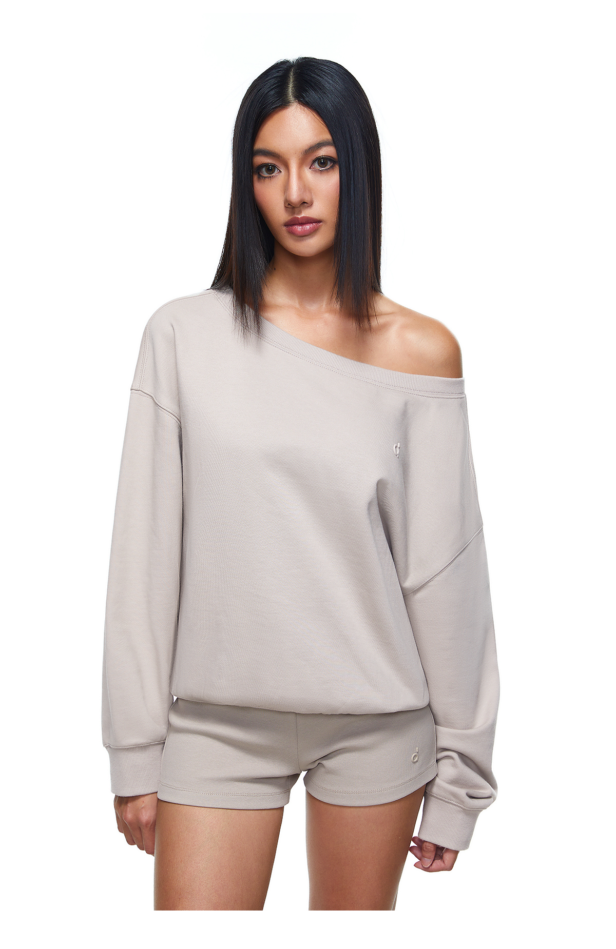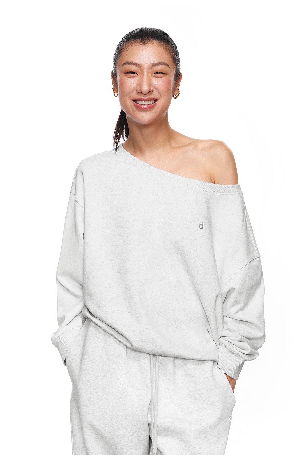 FDR旗舰店 蓄热保暖套头斜肩卫衣女秋季运动显瘦一字肩长袖上衣