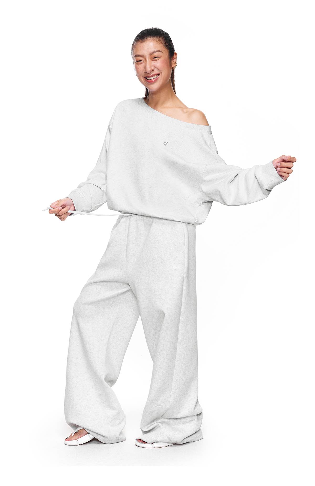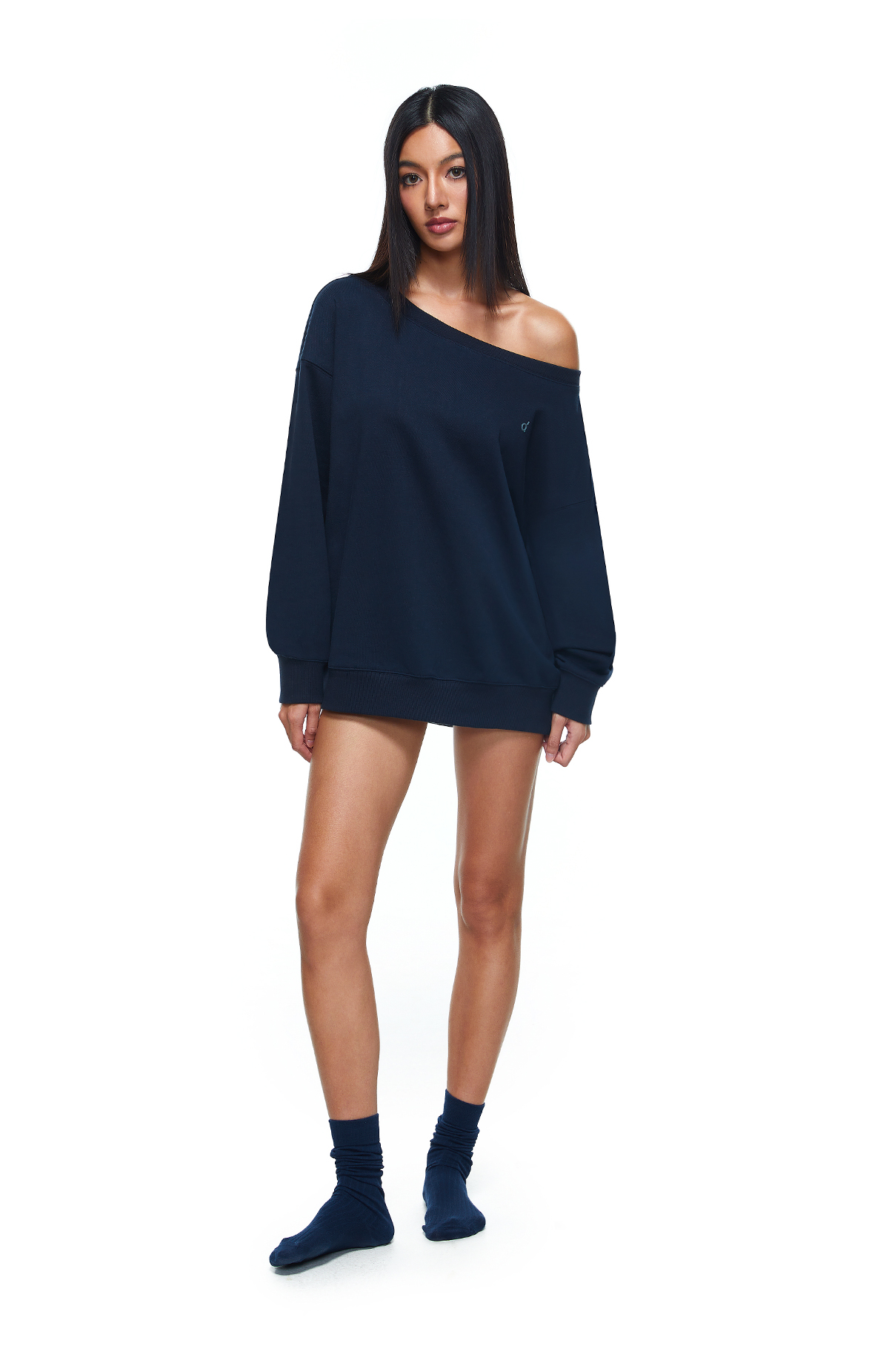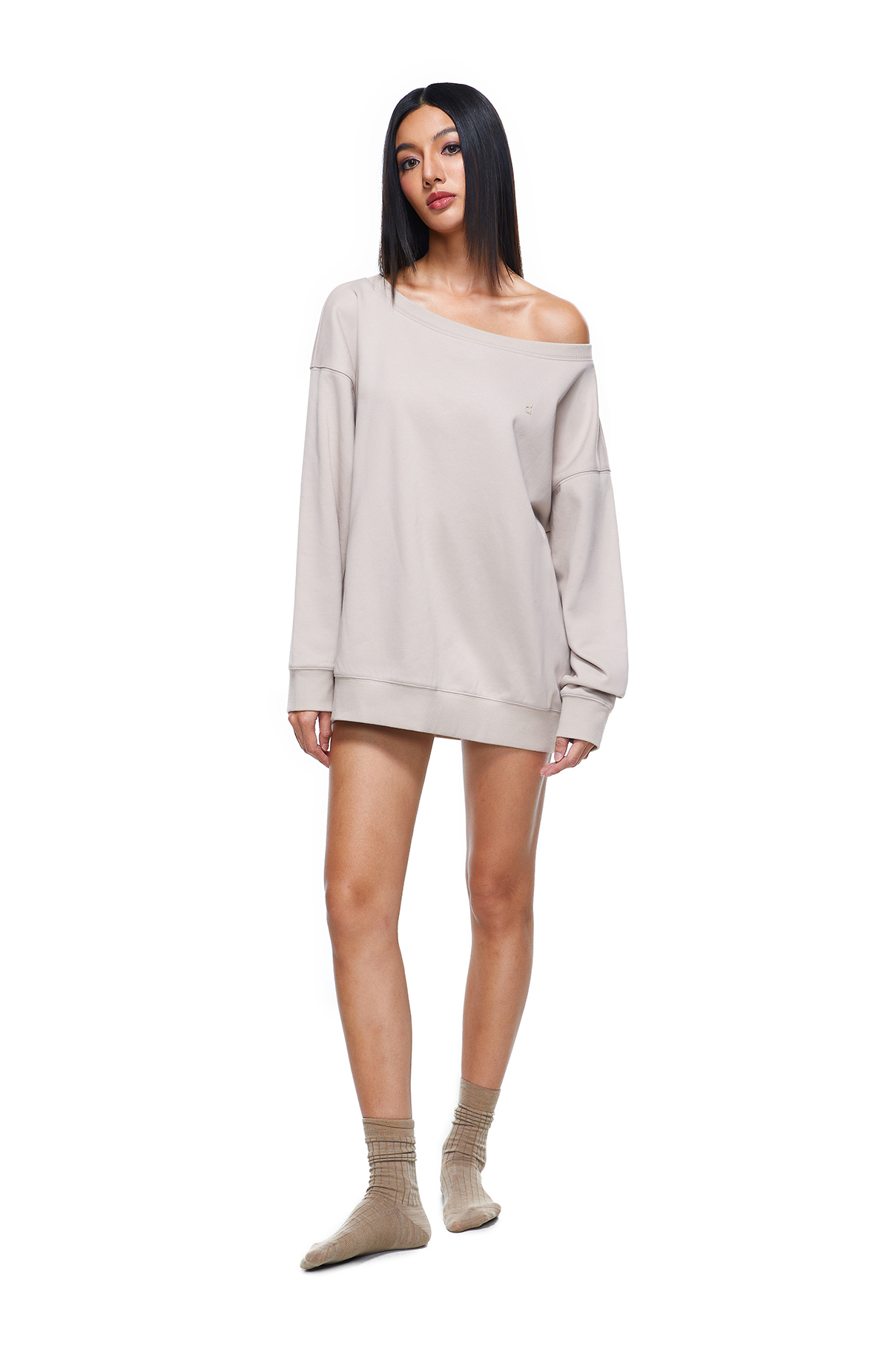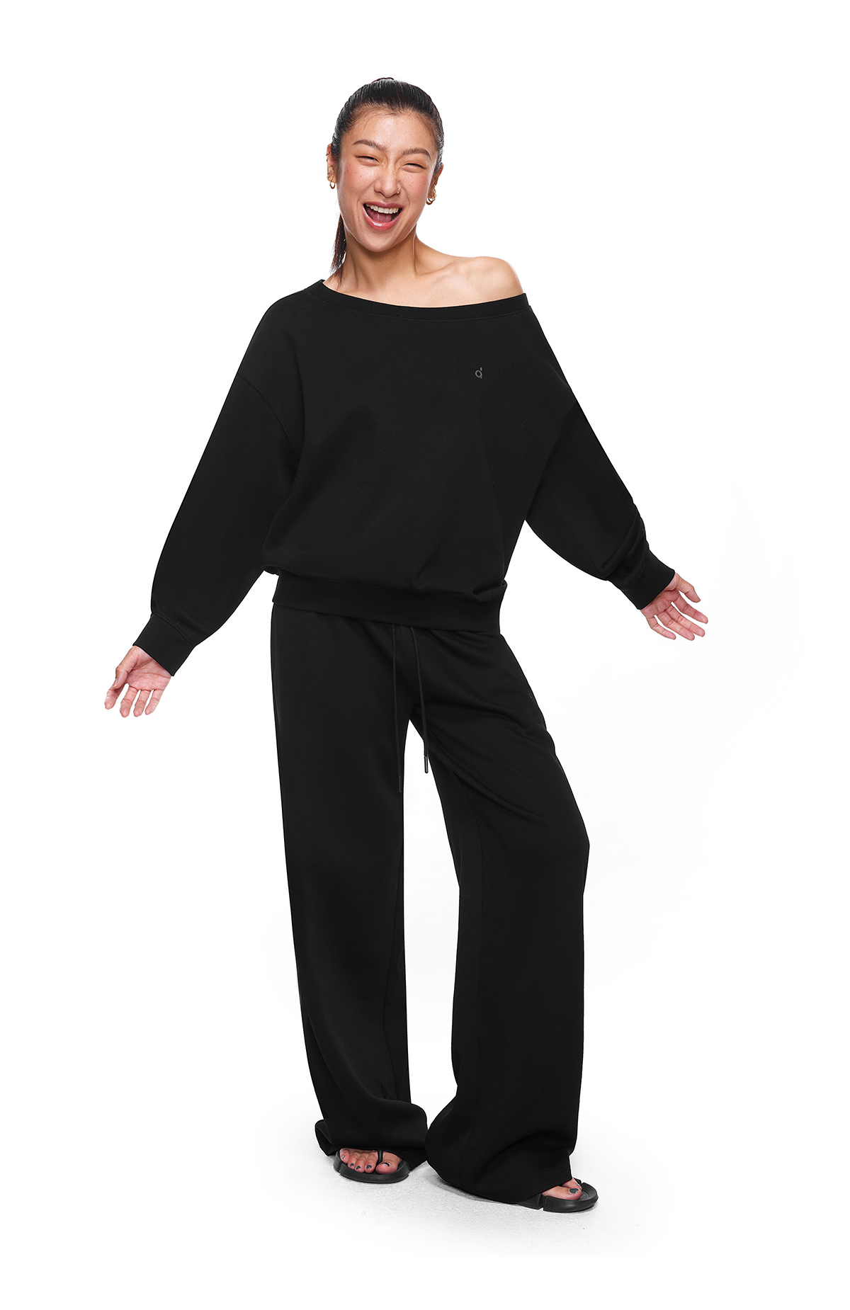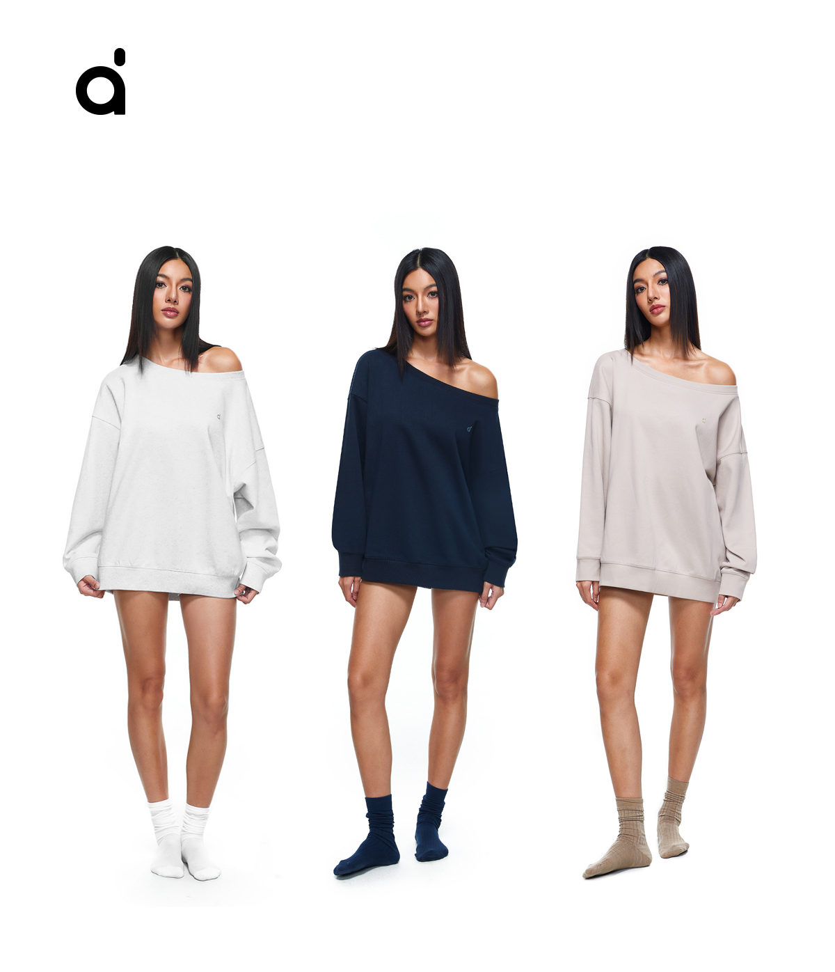 FDR旗舰店 蓄热保暖套头斜肩卫衣女秋季运动显瘦一字肩长袖上衣