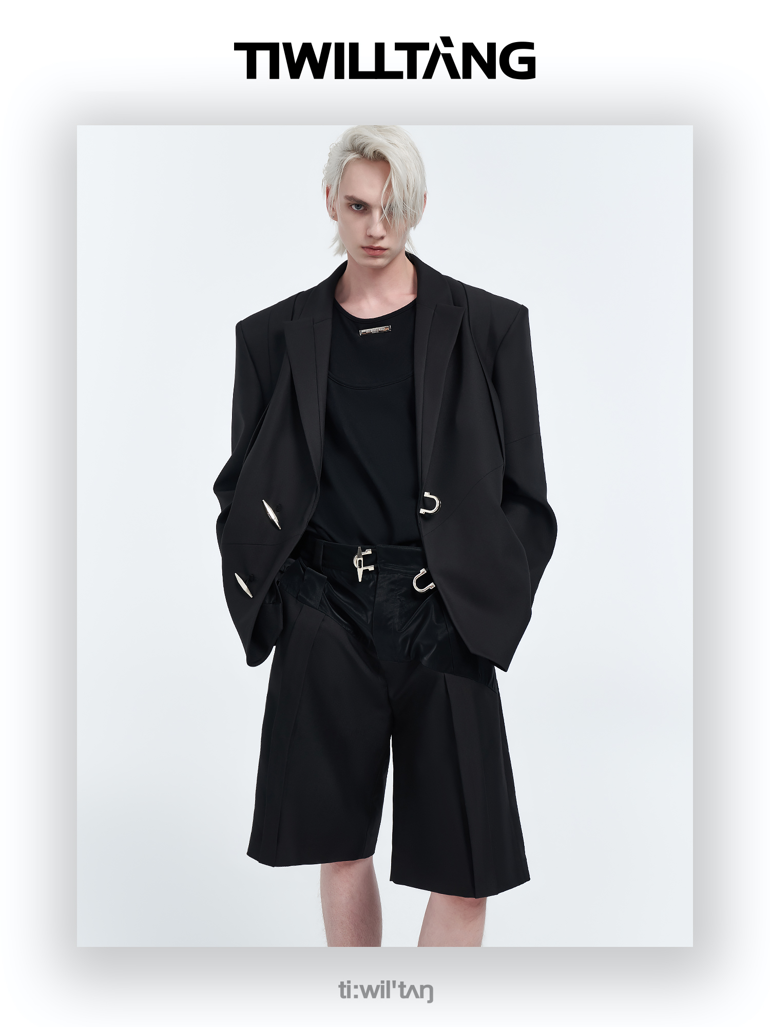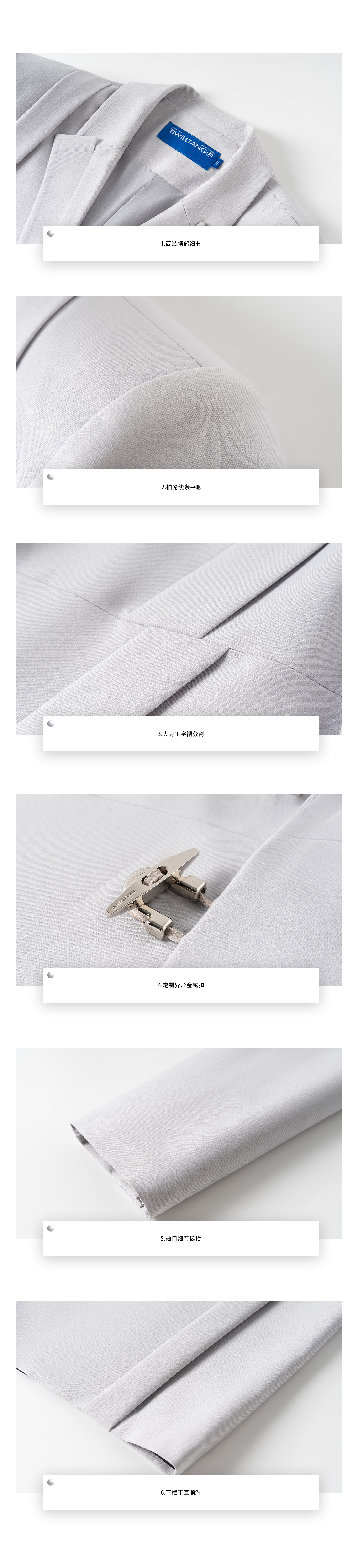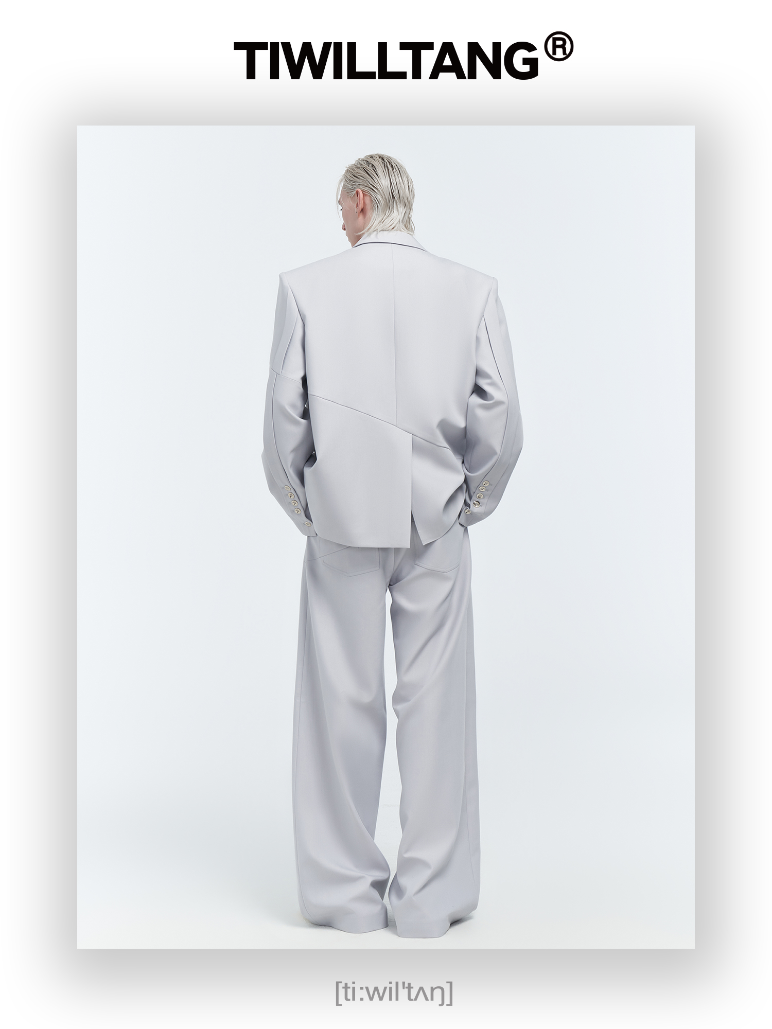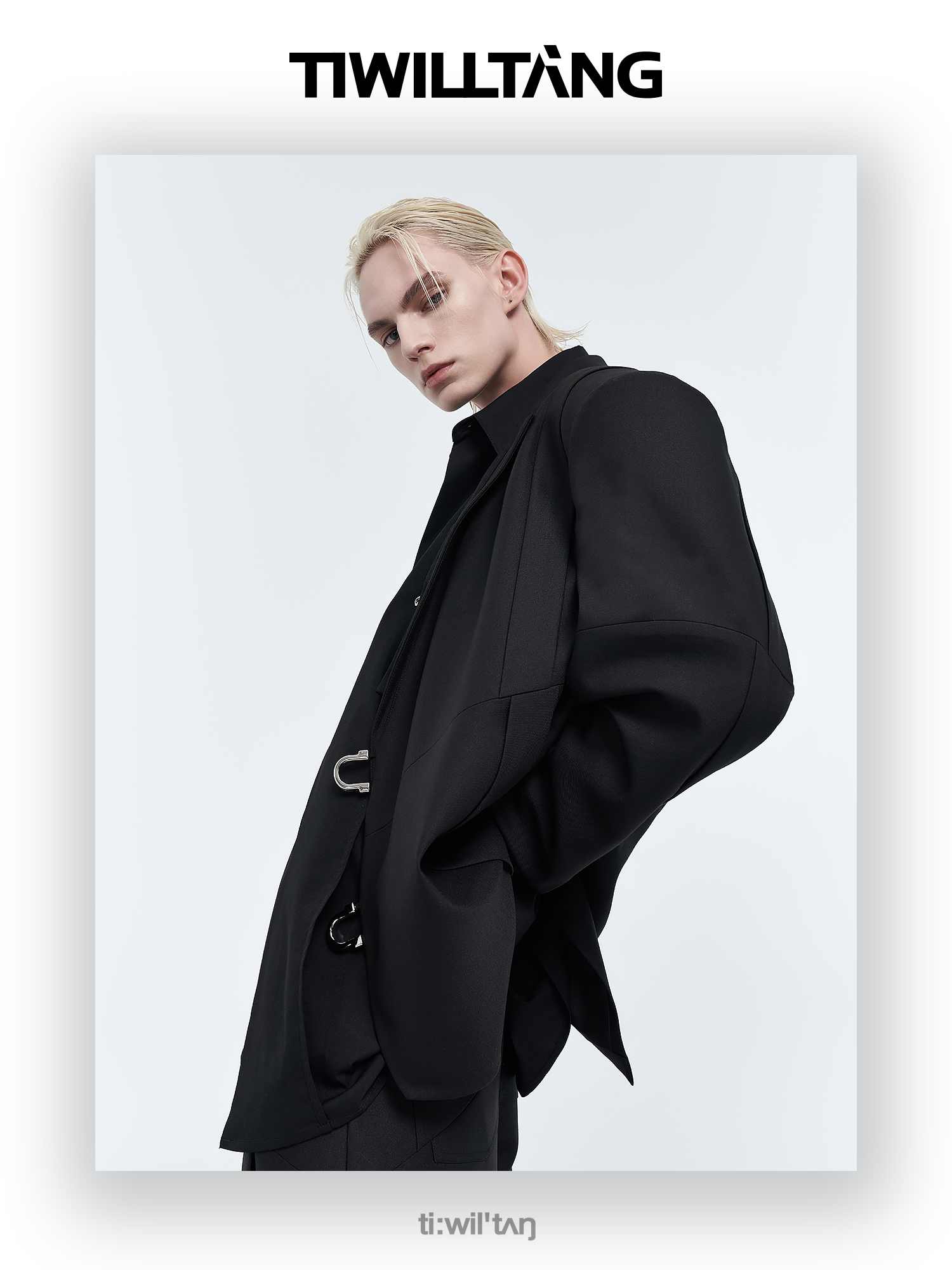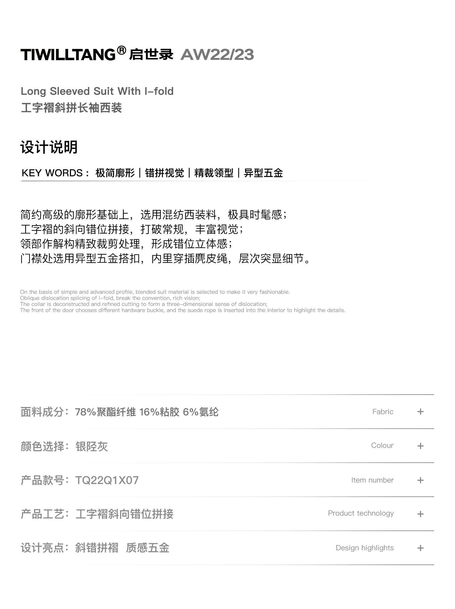 TIWILLTANG启世录“极世殿宇”高奢隽雅银灰色金属异型扣长袖西装