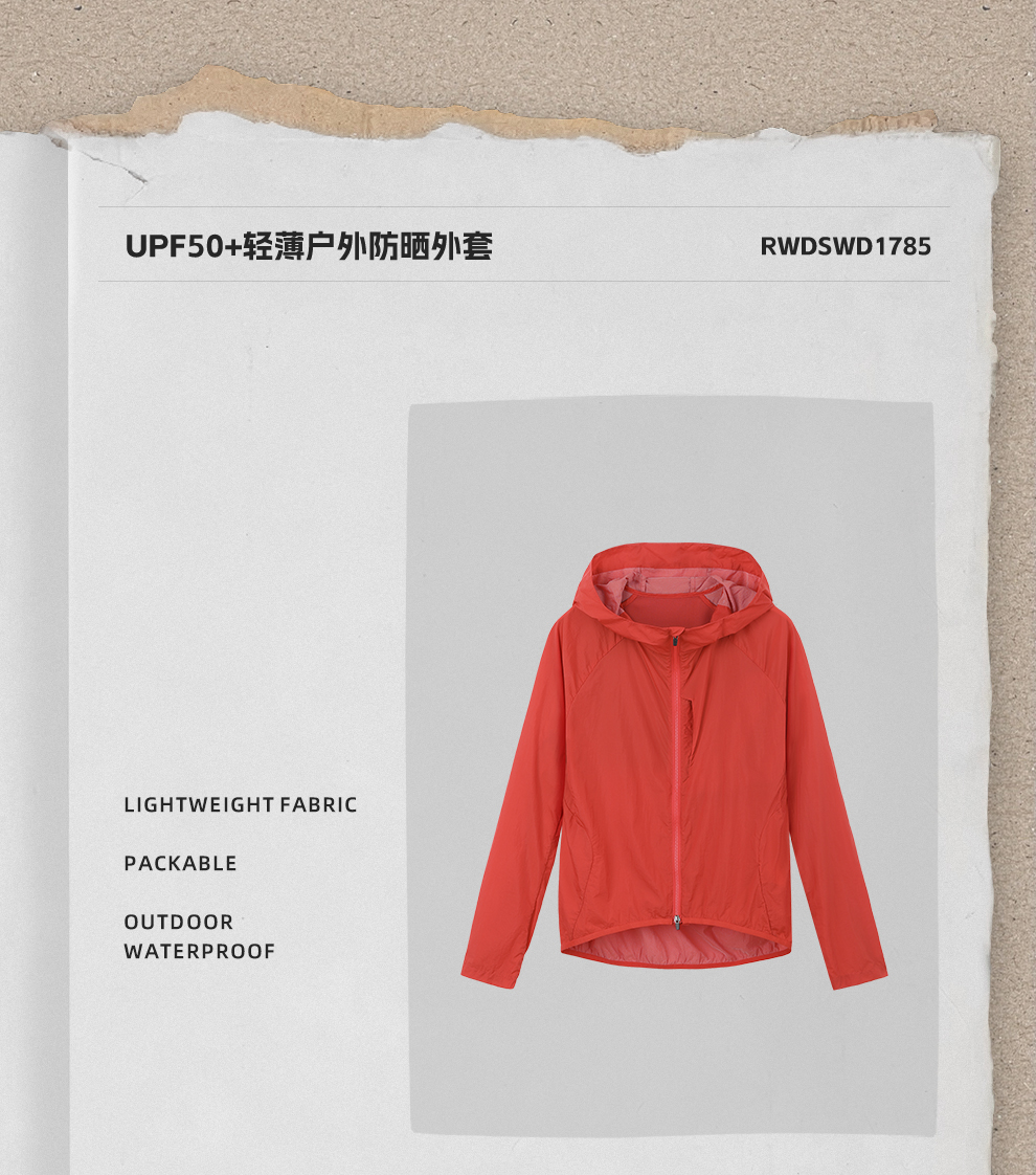 ROMI STUDIO“轻量防晒"UPF50+轻薄凉感橘红连帽外套 RWDSWD1785