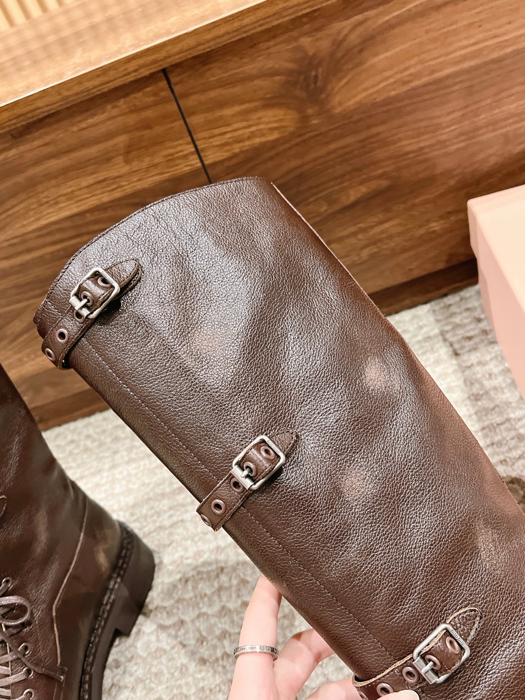 缪缪秋冬走秀款 机车风复古长靴 酷飒酷飒的 延续了爆款风格