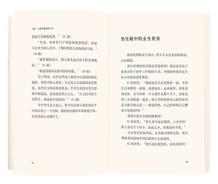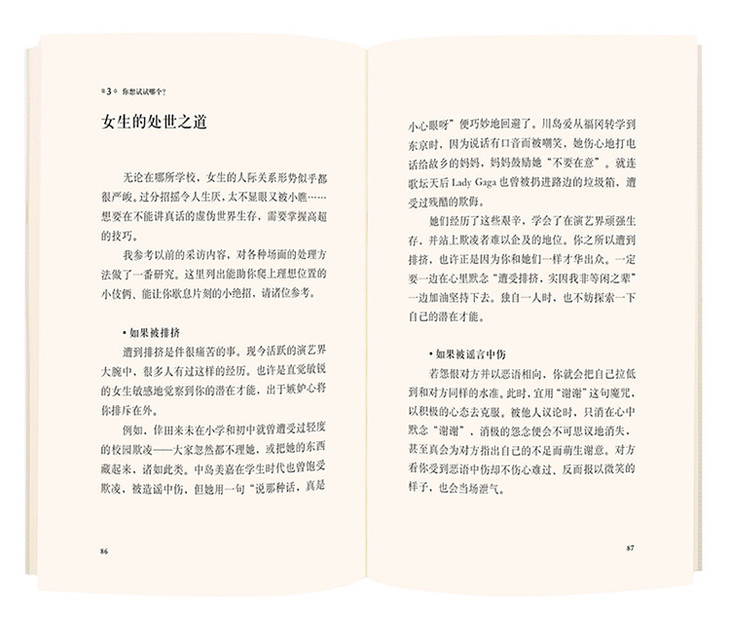 光鲜系、普通系、认真系、运动系、文化系、宅系等小团体在开学或重新分班后的两三个月后自然而然诞生。这些小团体的生态如何,又怎样融入其中,辛酸舐子都做了详细的分析,对于被排挤、被谣言中伤、无法融入对话等情况也给予了值得参考的建议。