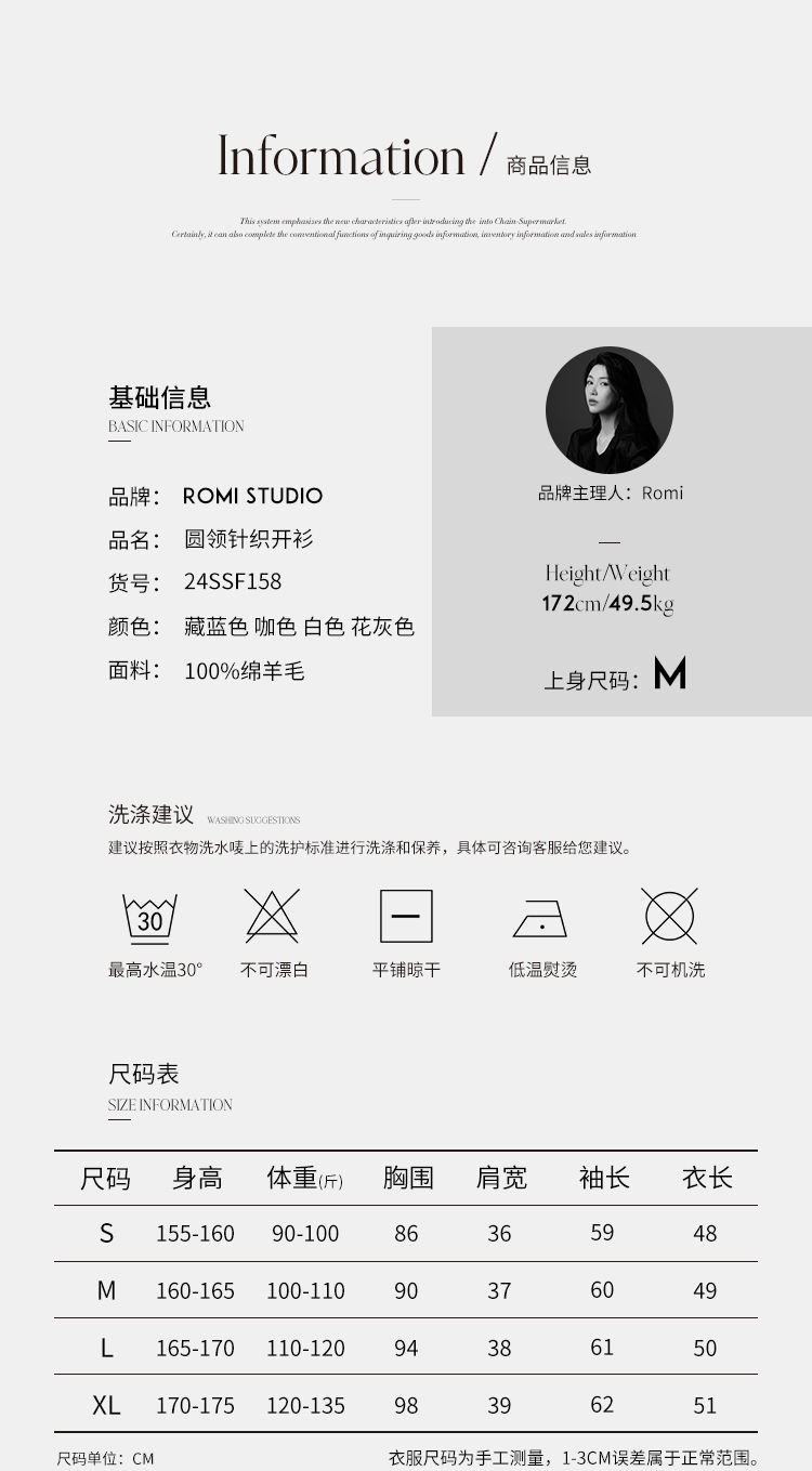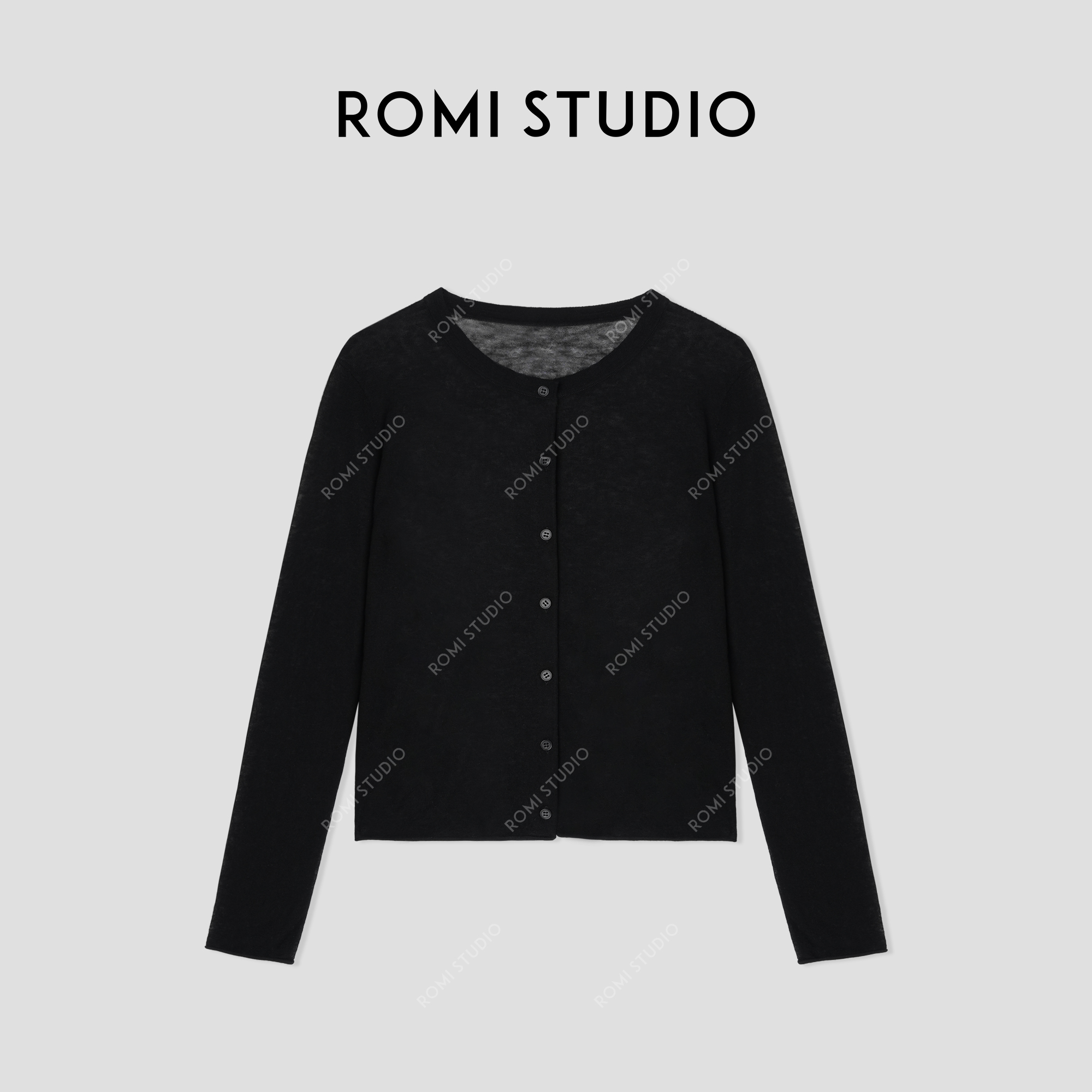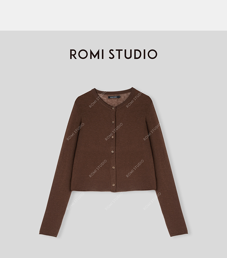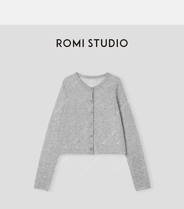 ROMI STUDIO“松弛高知”100%绵羊毛细腻轻薄圆领针织开衫24SSF158