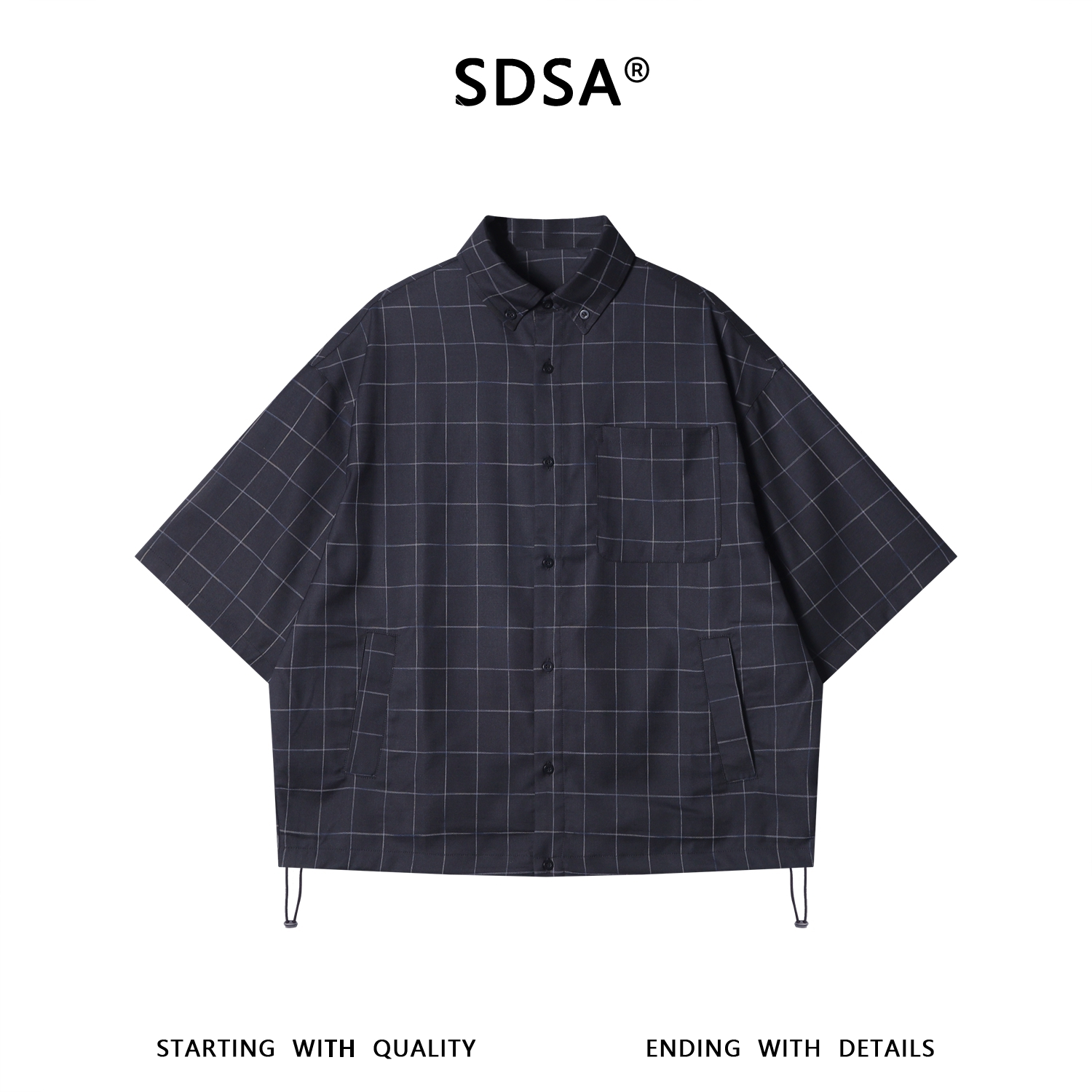 RY95596SDSA男装2026新款高贵轻奢老钱风潮流格子短袖衬衫下摆松紧百搭