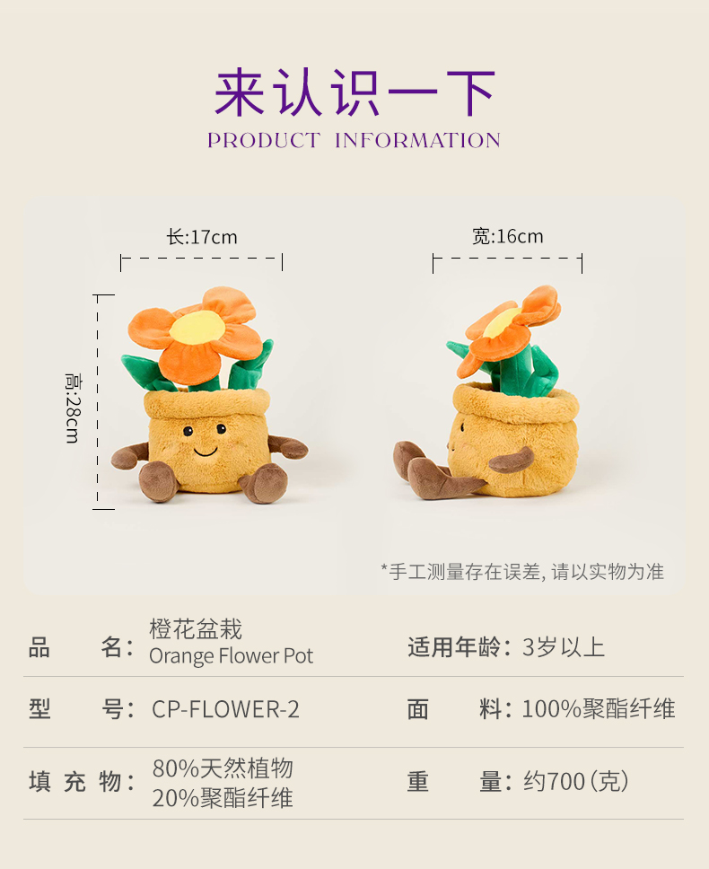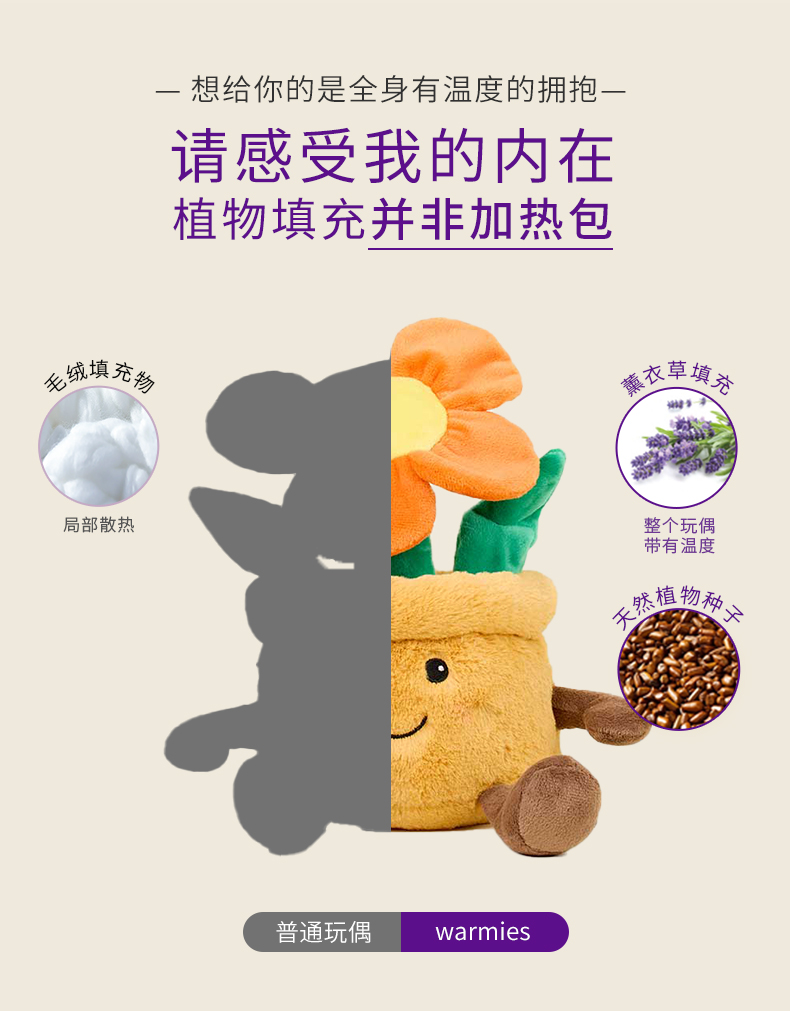 英国warmies 橙花盆栽安抚玩偶公仔送礼毛绒可加热抱枕