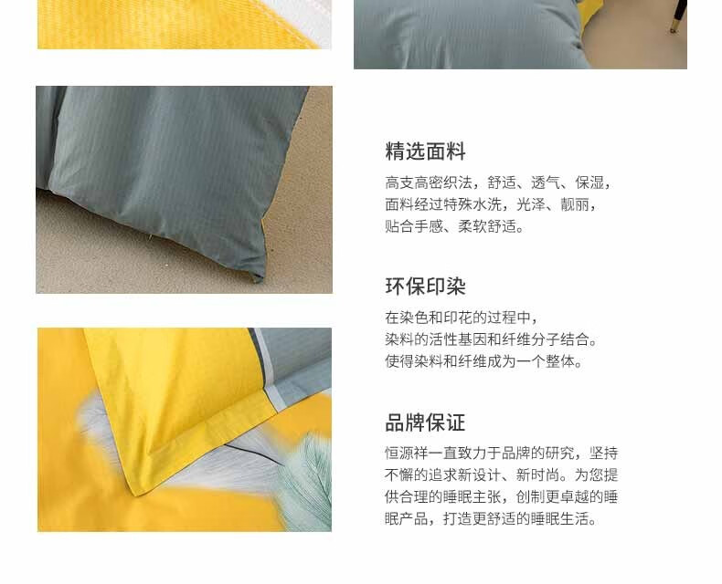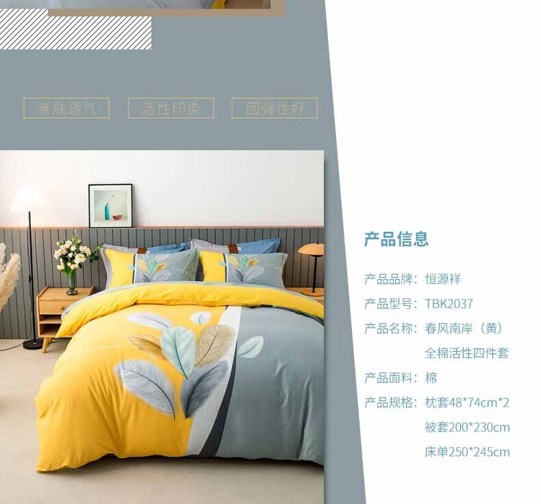 恒源祥(HYX) 恒源祥春风南岸(黄)全棉活性四件套200*230cmTBK2037 春风南岸