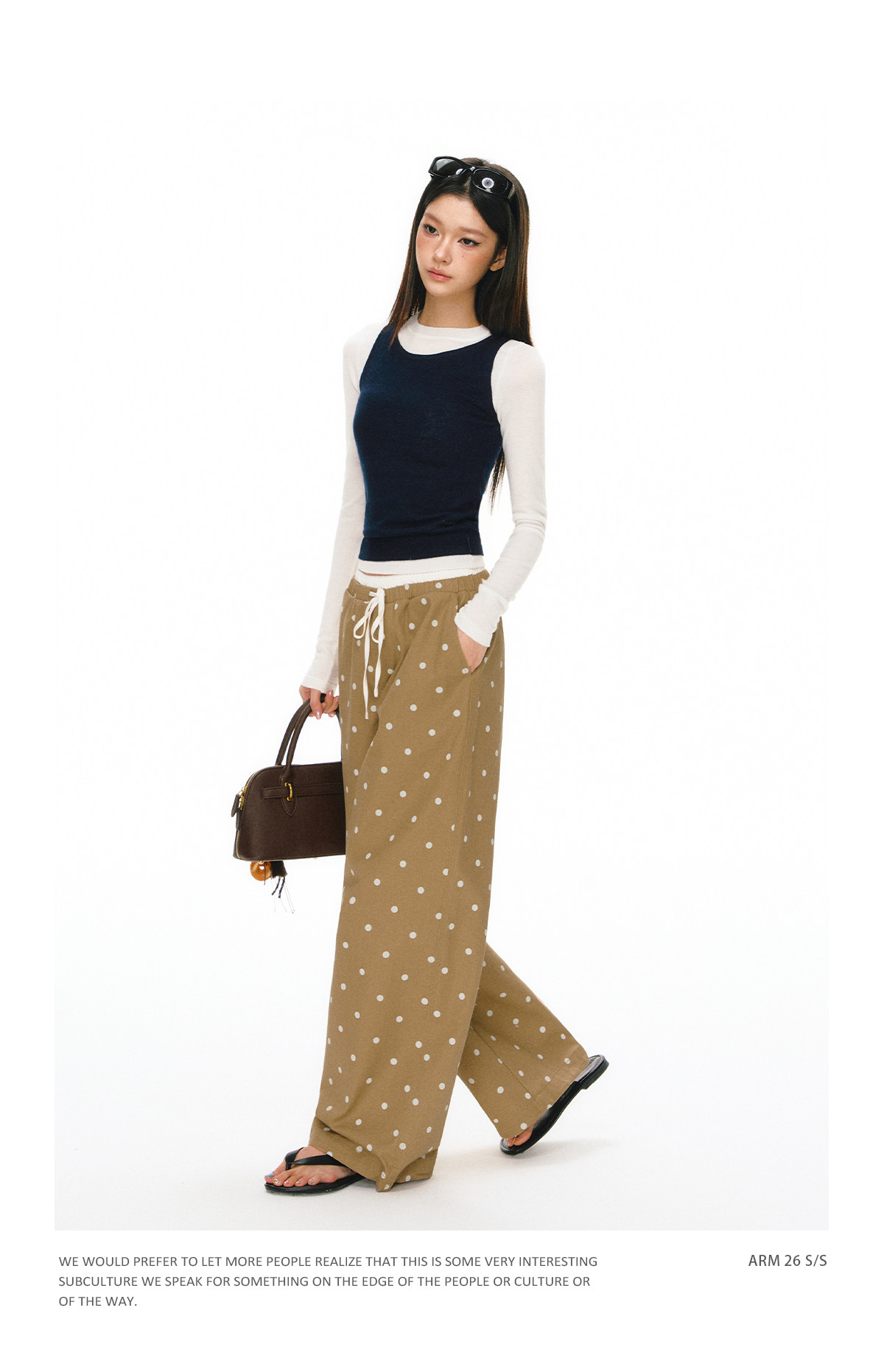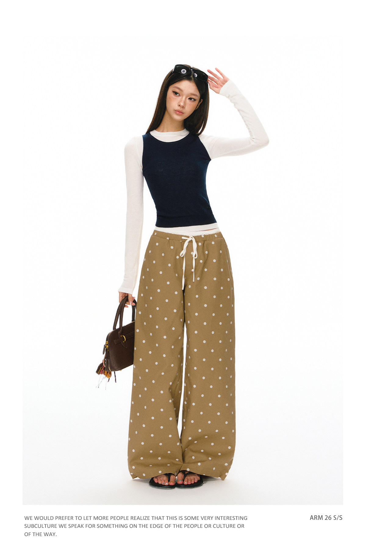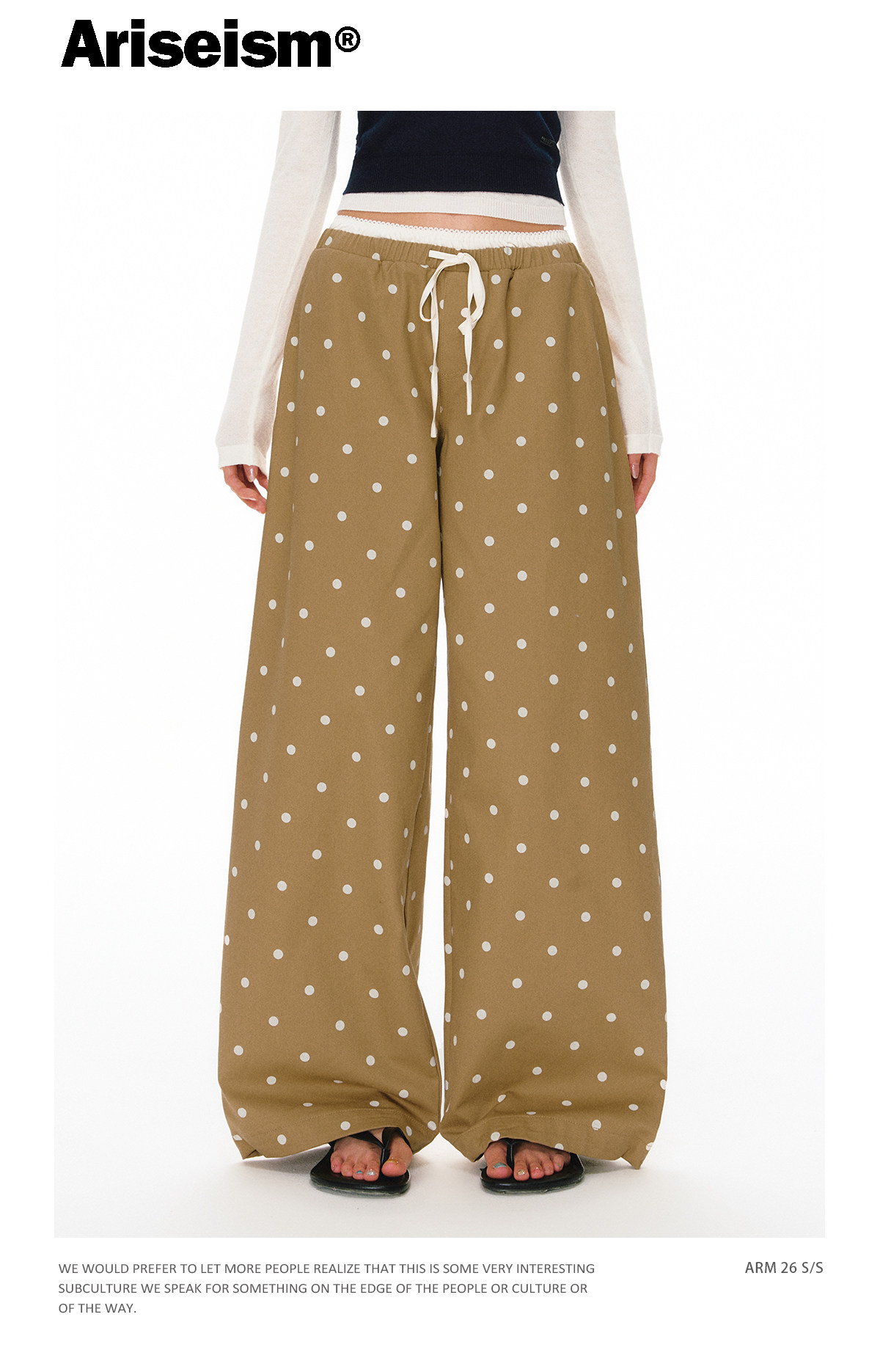 Ariseism 美式复古波点印花休闲裤女夏季新款百搭长裤