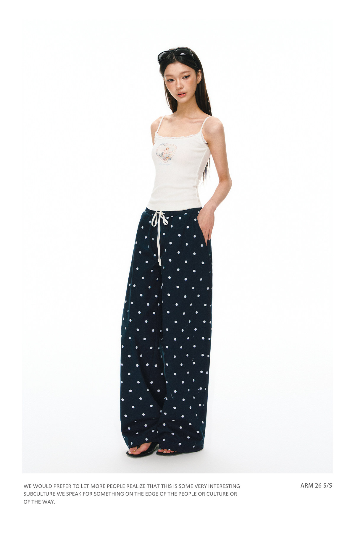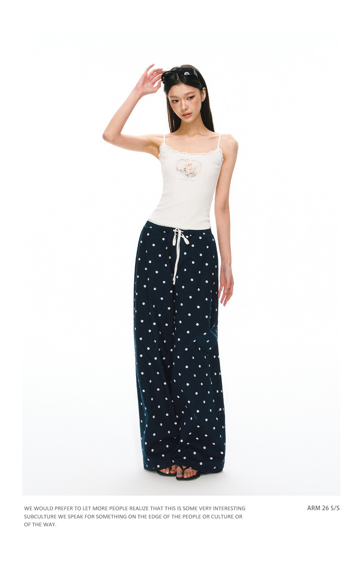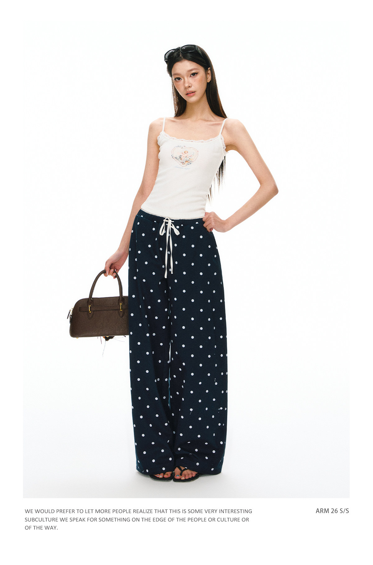 Ariseism 美式复古波点印花休闲裤女夏季新款百搭长裤